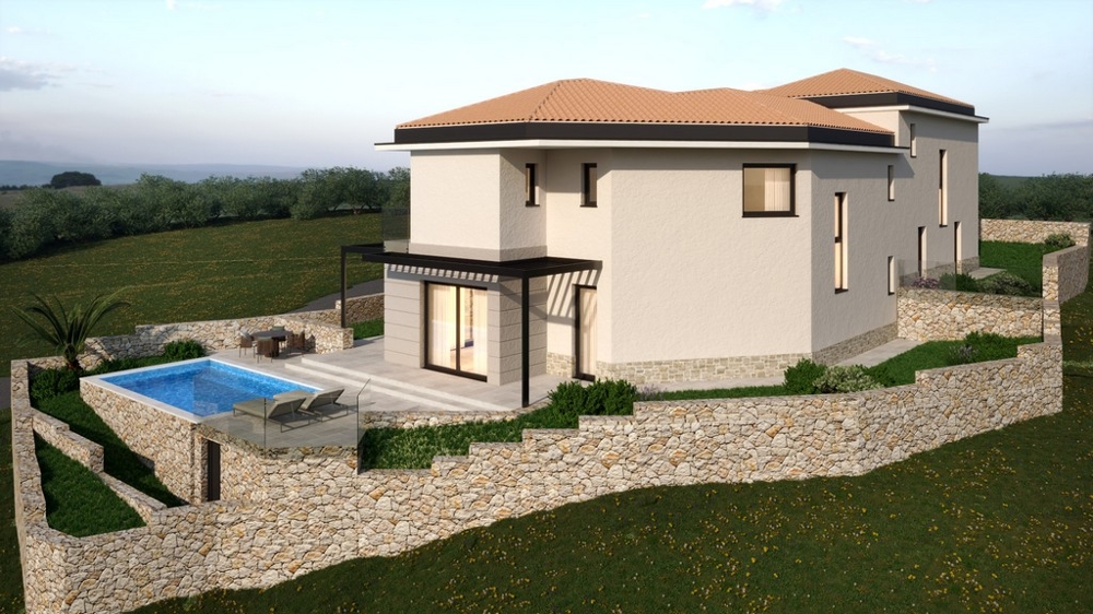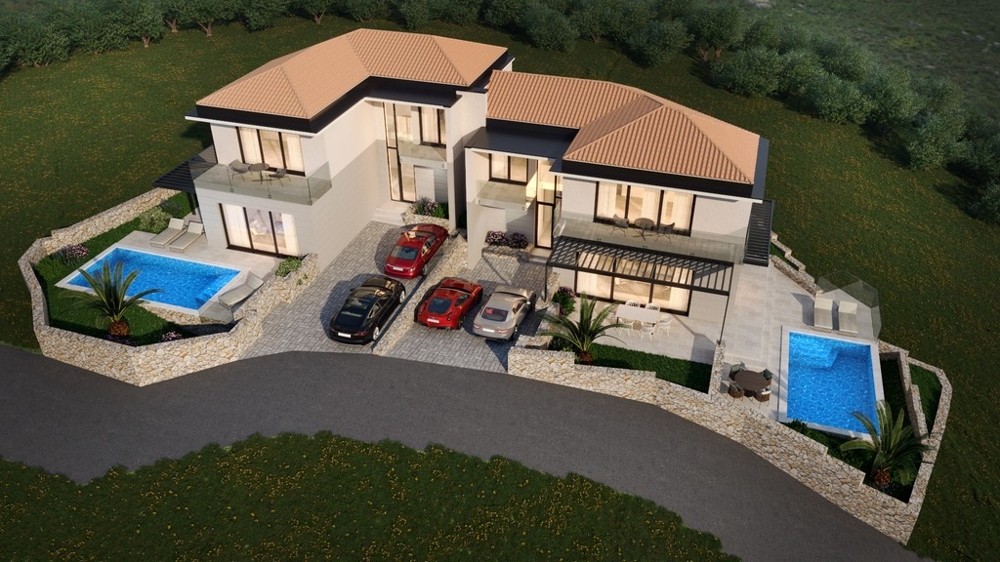 Die Villa mit einer Wohnfläche von ca. 171 m² wird auf einem 420 m² großen Grundstück mit unverbautem Blick auf das Meer erbaut.