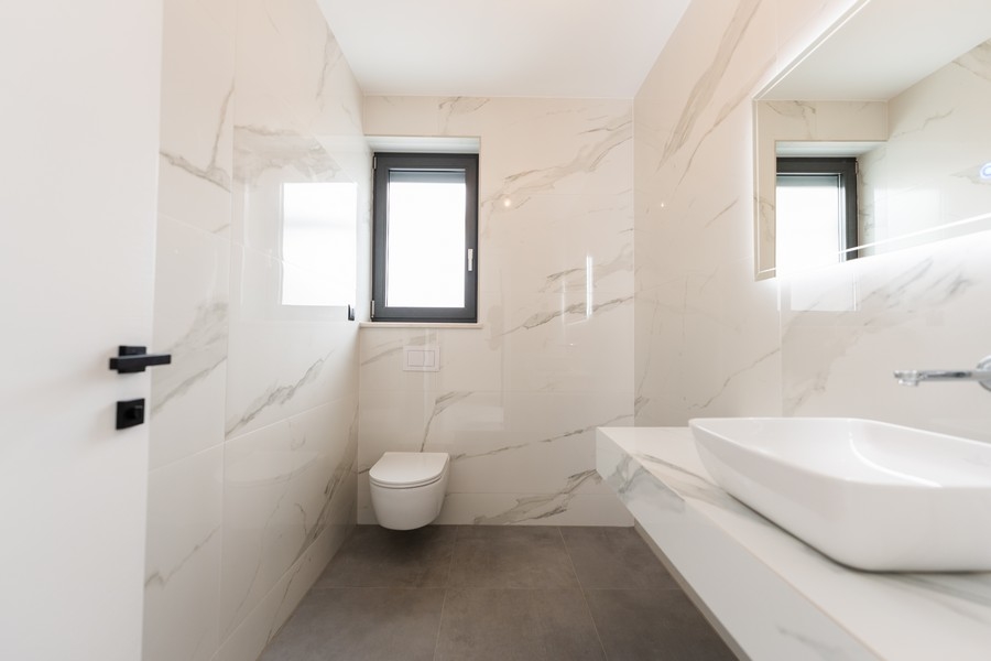 Fußbodenheizung, Wärmepumpe (Vaillant), Klimatisierung (Daikin), elektr. Rollläden, hochwertige Sanitärkeramik (Villeroy & Boch) - Armaturen von Hans Grohe, Videoüberwachung, Außenbereich mit 3 Parkplätzen
