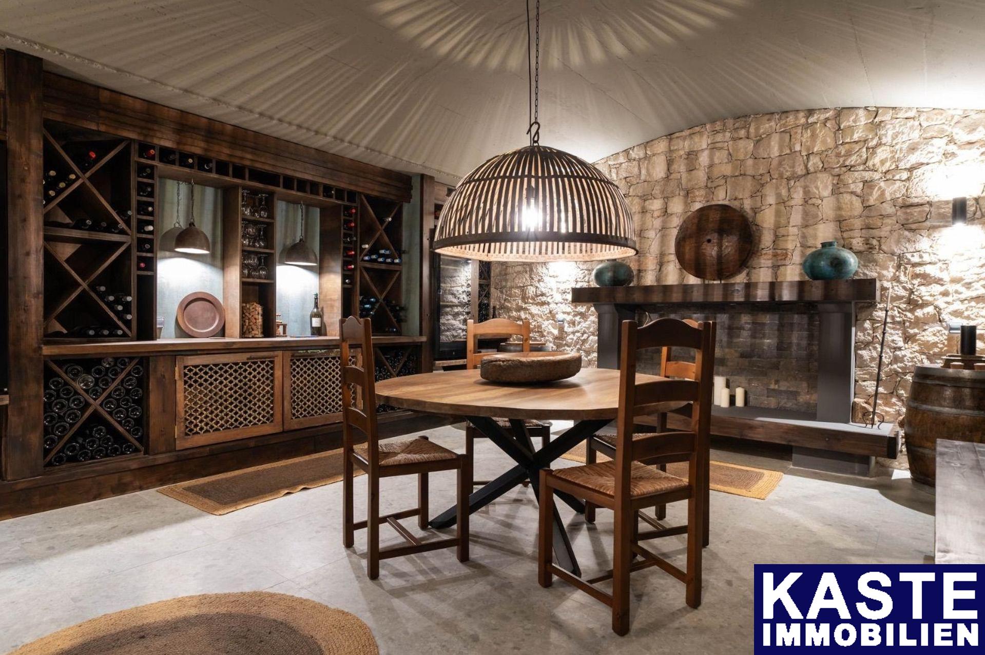 Zu den besonderen Ausstattungsmerkmalen zählt ein 30 m² großer, unterirdischer Innenweinkeller mit Platz für bis zu 600 Flaschen Wein, darunter zwei gekühlte Weinschränke. Ein zusätzlich ausgestatteter Hauswirtschaftsraum mit Waschmaschine, Stauraum und einem weiteren großen Kühlschrank mit Wasseranschlüssen bietet zusätzlichen Komfort. Die Villa verfügt ferner über einen elektrischen Samsung-Fernseher mit Soundverstärker und eine Fußbodenheizung im Wohnzimmer, in den Badezimmern und in zwei der Schlafzimmer.