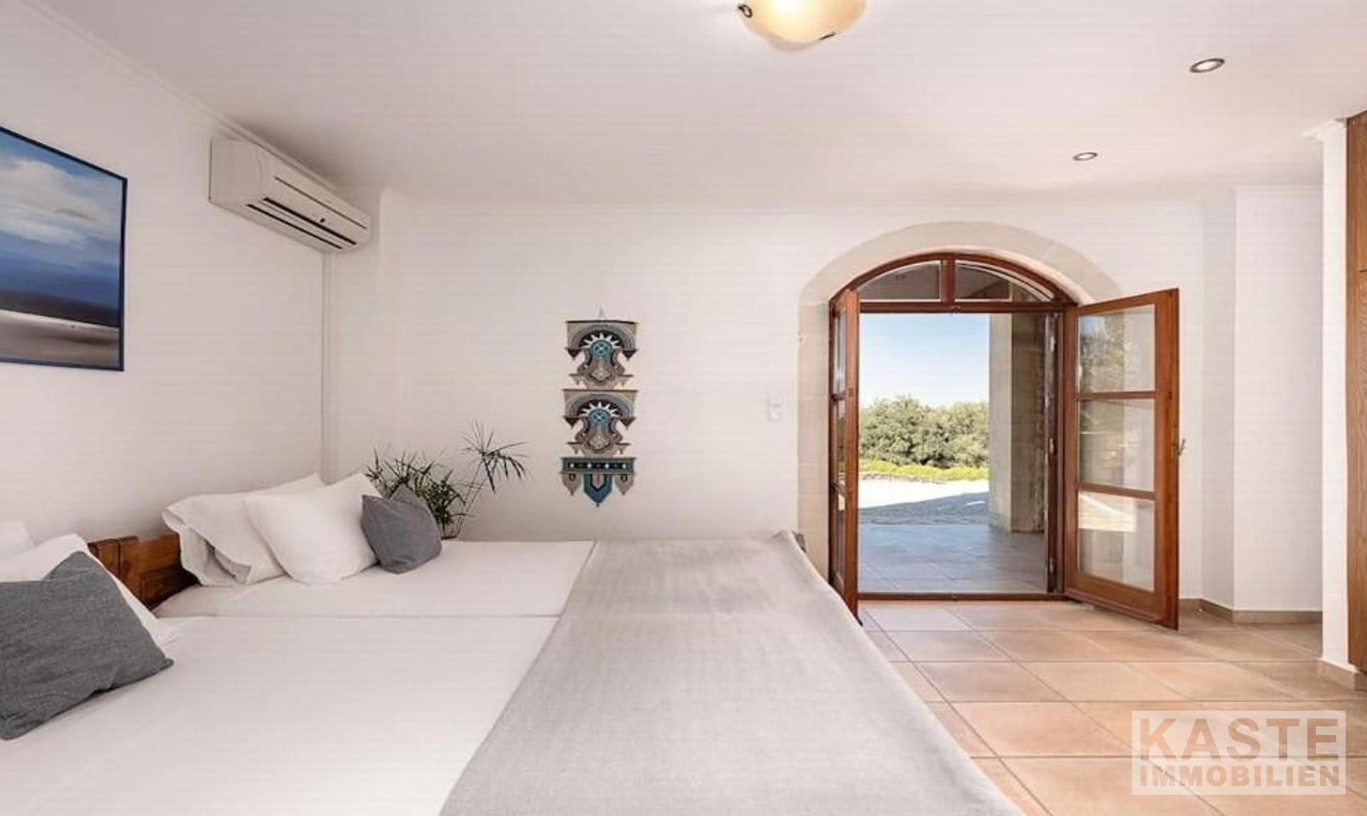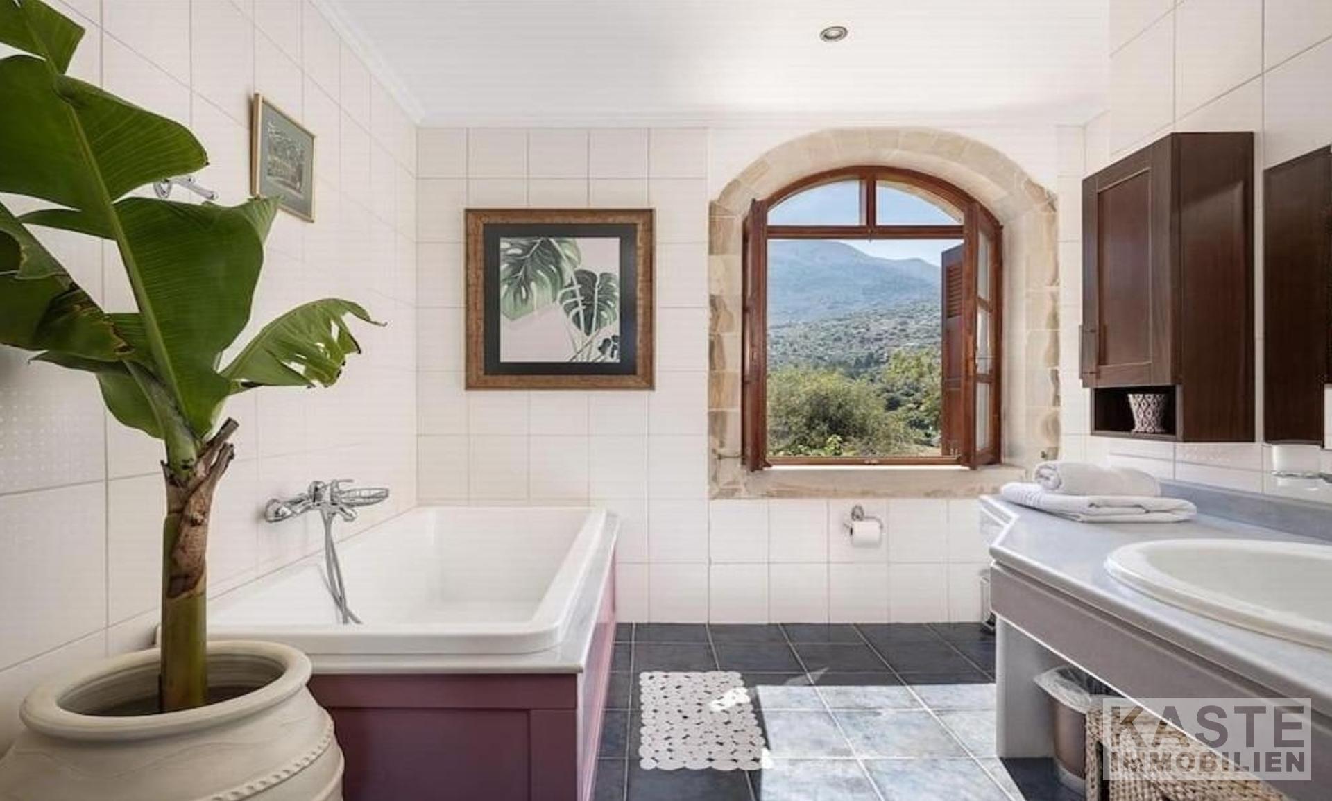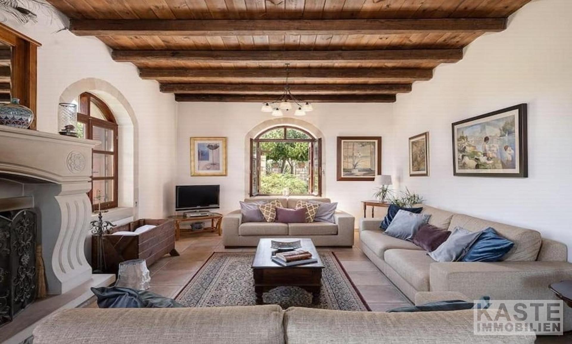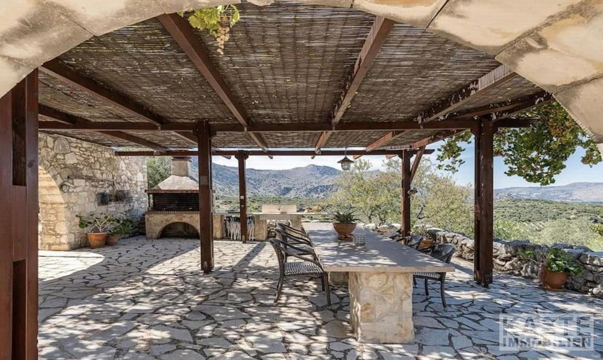 Diese exklusive Steinvilla in Kournas, Apokoronas, Kreta, vereint traditionelles kretisches Flair mit modernem Luxus und bietet Ihnen ein unvergleichliches Wohnerlebnis auf 322 m² Wohnfläche. Die über drei Ebenen gestaltete Residenz verfügt über insgesamt sechs geräumige Zimmer, darunter fünf komfortable Schlafzimmer und fünf modernen Badezimmer, die stilvolle Lebensqualität garantieren. Das Grundstück erstreckt sich auf beeindruckende 4554 m² und ist von eindrucksvollen Steinmauern sowie einem gepflegten Garten mit Oliven- und Zitrusbäumen, Jasmin und Geißblatt umgeben und bietet somit höchste Privatsphäre.