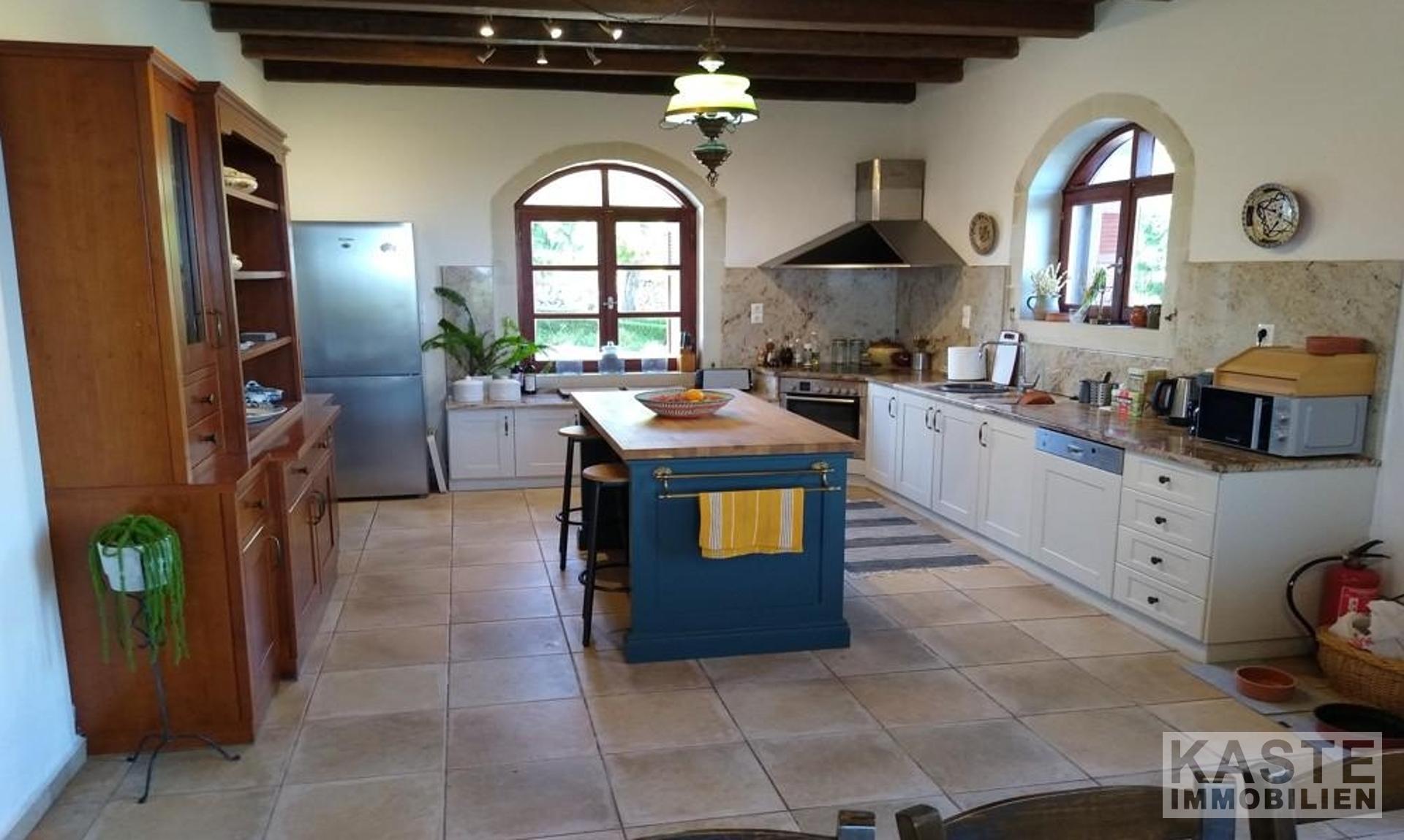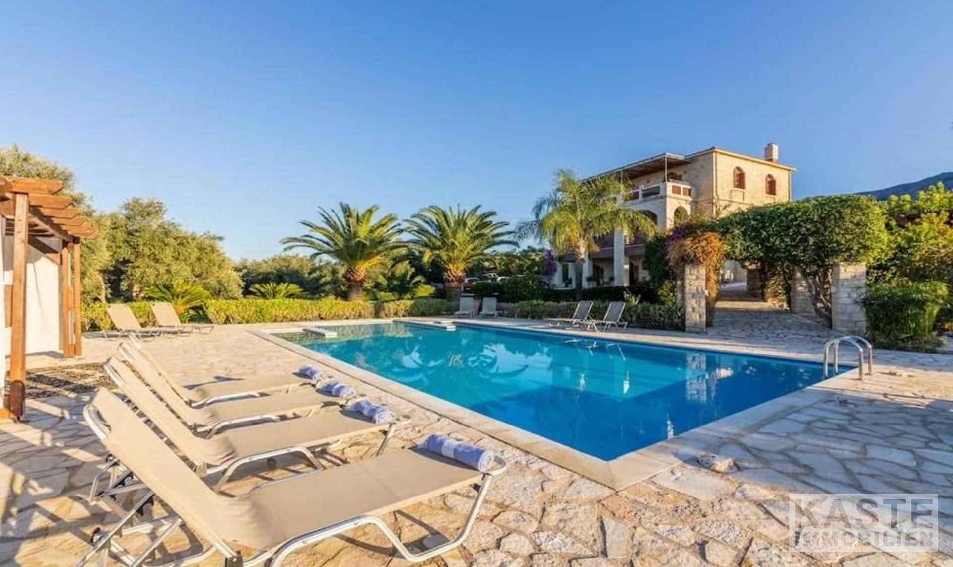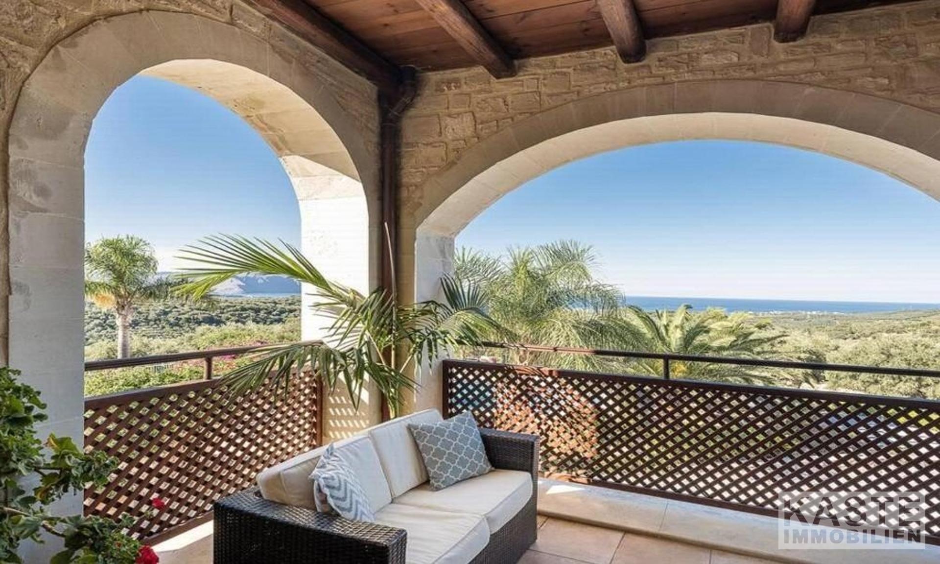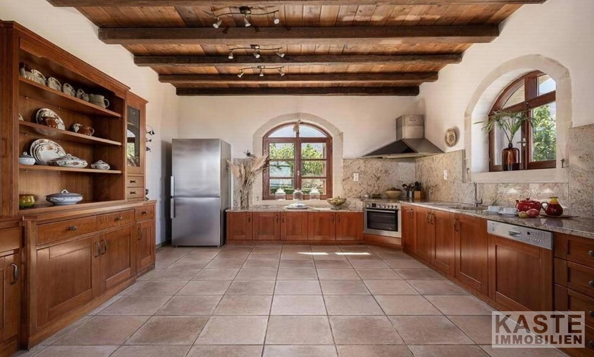 Diese exklusive Steinvilla in Kournas, Apokoronas, Kreta, vereint traditionelles kretisches Flair mit modernem Luxus und bietet Ihnen ein unvergleichliches Wohnerlebnis auf 322 m² Wohnfläche. Die über drei Ebenen gestaltete Residenz verfügt über insgesamt sechs geräumige Zimmer, darunter fünf komfortable Schlafzimmer und fünf modernen Badezimmer, die stilvolle Lebensqualität garantieren. Das Grundstück erstreckt sich auf beeindruckende 4554 m² und ist von eindrucksvollen Steinmauern sowie einem gepflegten Garten mit Oliven- und Zitrusbäumen, Jasmin und Geißblatt umgeben und bietet somit höchste Privatsphäre.