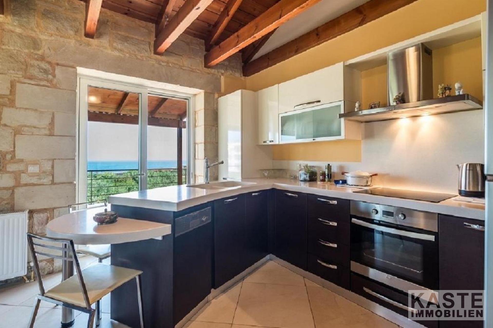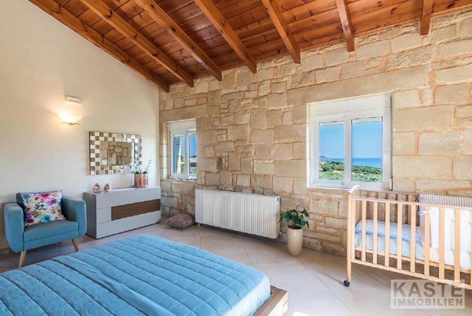 Diese exklusiv zum Verkauf stehende Steinvilla in Agia Marina, Nea Kydonia, Chania auf Kreta bietet eine gelungene Kombination aus modernem Wohnkomfort, zeitloser Eleganz und einer idyllischen Lage nahe dem Meer. Auf einem großzügigen Grundstück von 2.500 m² erstreckt sich die luxuriöse Immobilie mit 243 m² Wohnfläche, die mit hochwertigen Materialien und liebevollen Details ausgestattet wurde. Die Villa besticht besonders durch ihren unverbaubaren Blick auf das tiefblaue Meer und die majestätischen Berge sowie traumhafte Sonnenuntergänge, die Sie von der weitläufigen Gartenanlage oder vom privaten Pool aus genießen können.