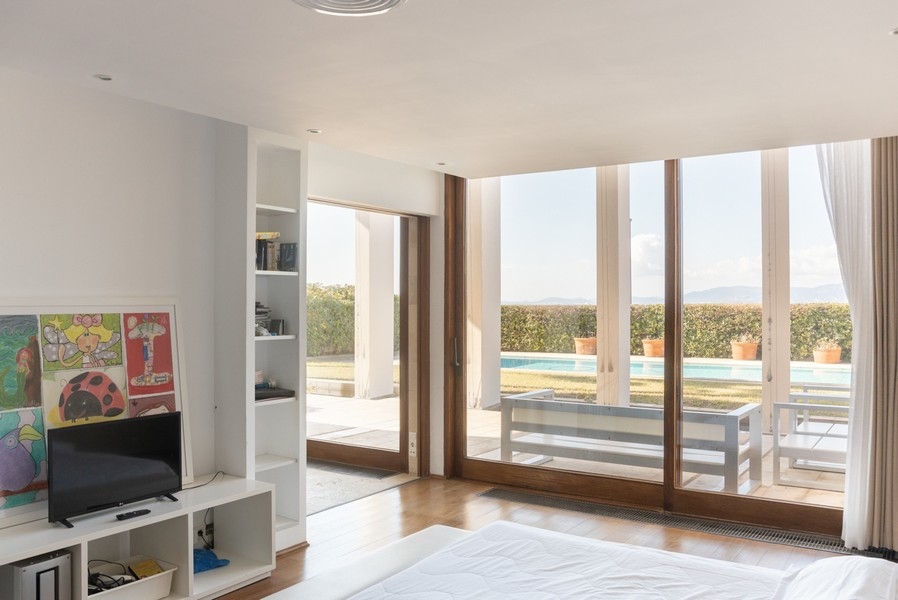 Die Villa befindet sich auf einem 906 m² großen Grundstück in der ersten Reihe zum Meeresufer und bietet eine gesamte bebaute Fläche von ca. 692 m² mit insgesamt fünf Schlafzimmern, fünf Badezimmern, Wohnzimmer (mit Kamin), Küche (mit Kochinsel), Esszimmer sowie Terrassen. Die Villa verfügt über mehrere Abstellräume und eine private Garage mit fünf Stellplätzen.