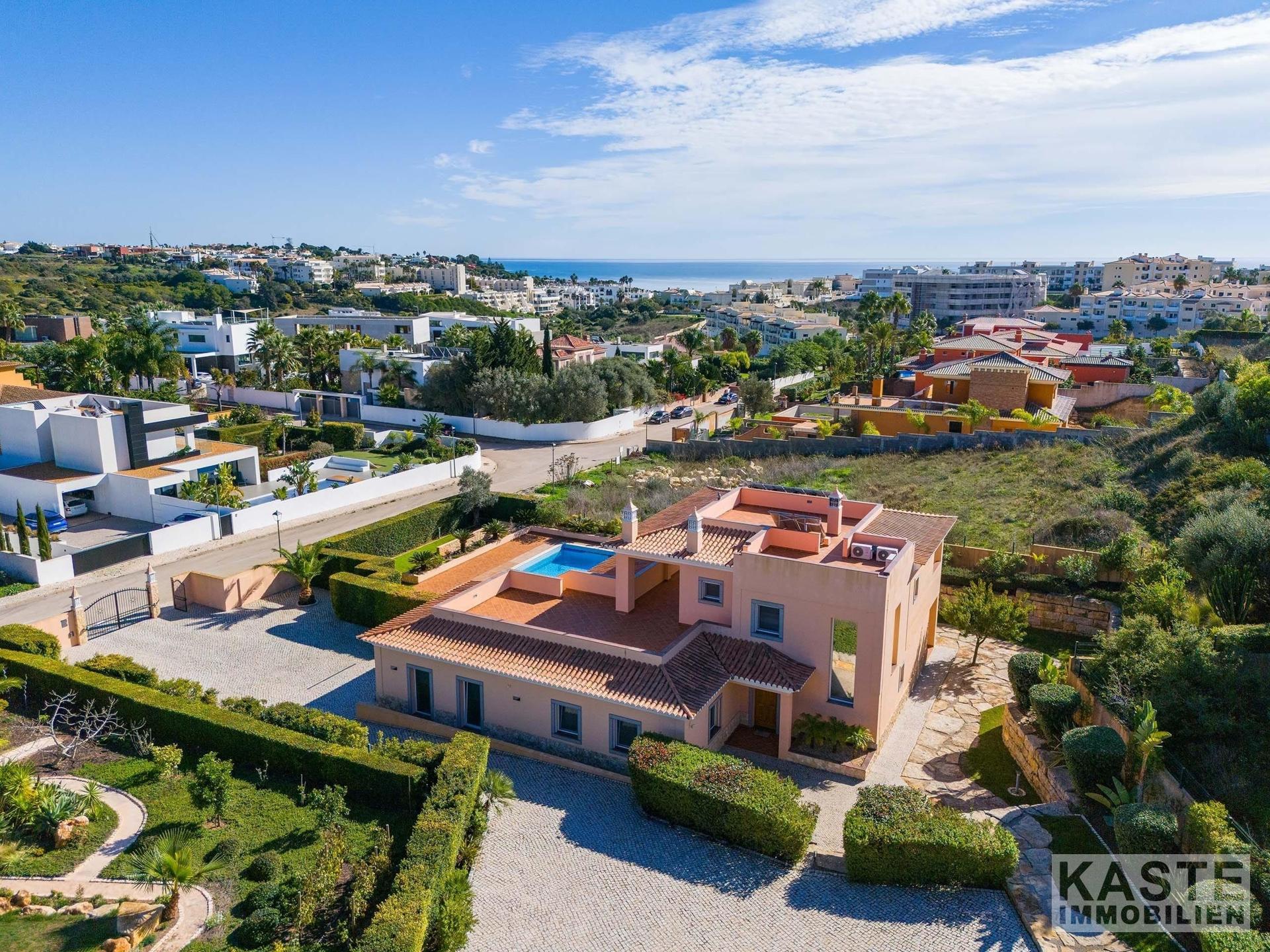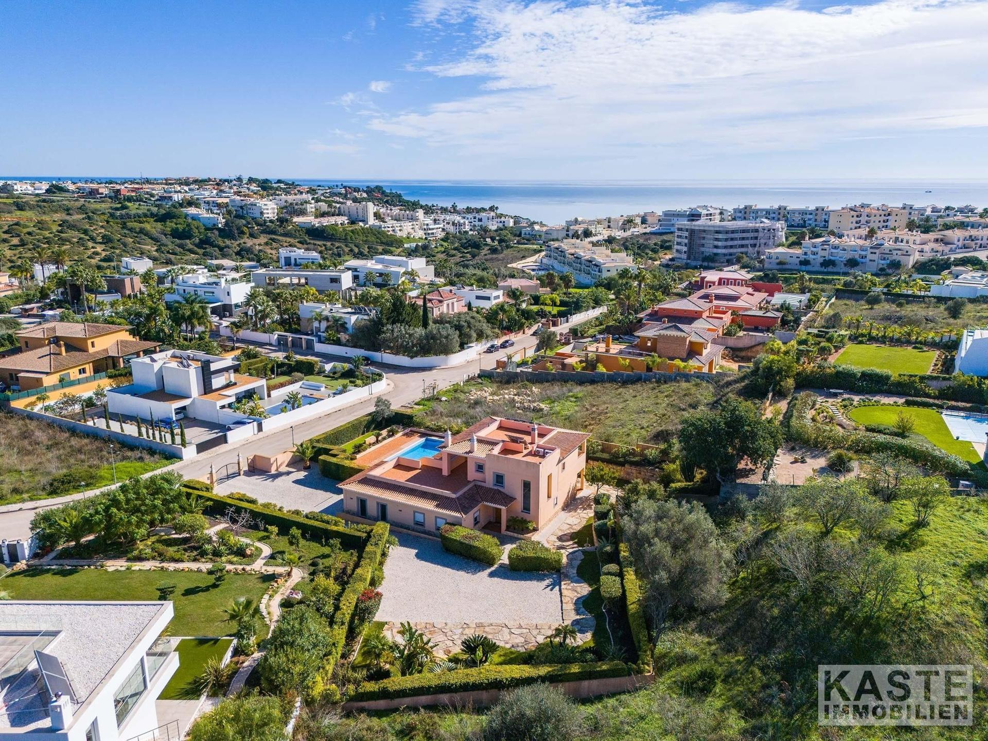 In der renommierten Wohngegend Porto do Mós in Lagos gelegen und nur wenige Gehminuten von einem der schönsten Sandstrände der Region entfernt, präsentiert sich diese geräumige Villa mit großzügigem Grundstück als ein wahrhaft prächtiges Anwesen. Sie vereint meisterhaft traditionellen Stil mit hochwertiger Handwerkskunst und sämtlichen modernen Annehmlichkeiten, die man heute schätzt.