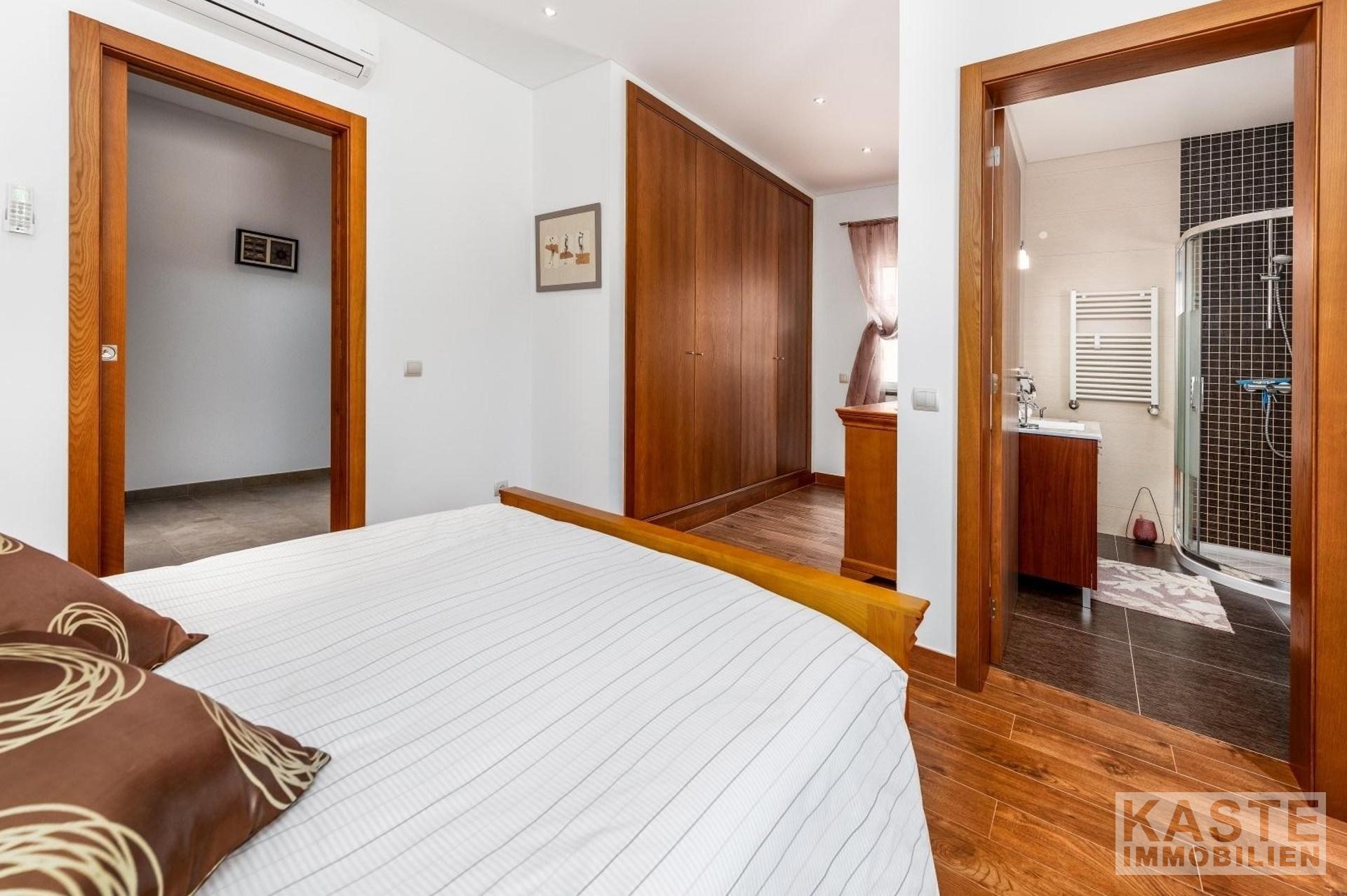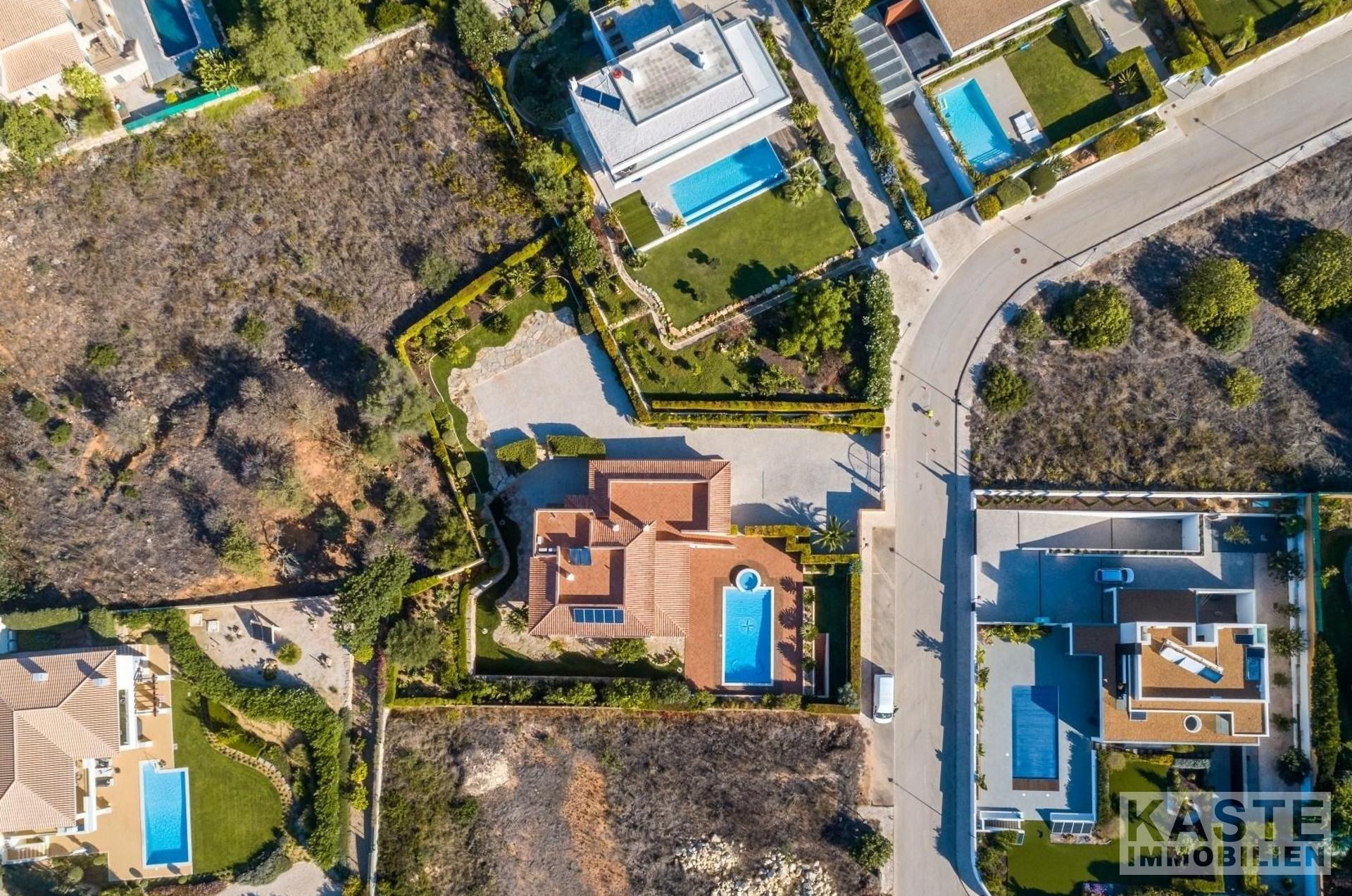 Die Villa verfügt über hochwertigen Granit als Küchenarbeitsplatten, massive Eichenholzböden in allen Schlafzimmern, zwei Alarmanlagen, Glasfaser-Internet, 5 PV-Solarkollektoren zur Warmwassererzeugung und Stromversorgung, Doppelverglasung, elektrische Rollläden, Insektenschutzgitter, individuell steuerbare Fußbodenheizung, einen 500-Liter-Wassertank im Garten für die Bewässerung, eine Pooldusche, besondere Stützmauern und alle Versorgungsleitungen.