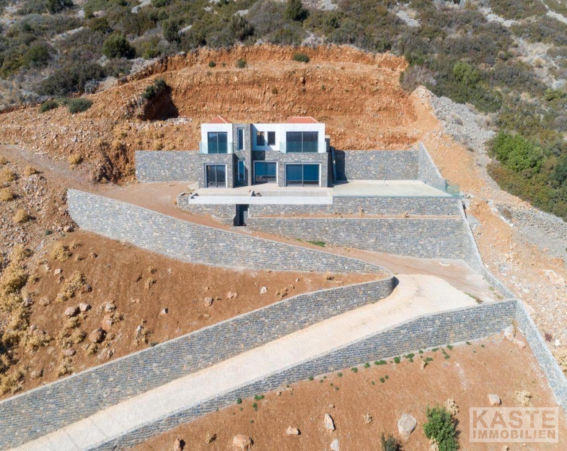 Diese exklusive Villa bietet eine einzigartige Gelegenheit, eine luxuriöse Traumresidenz mit maßgeschneiderter Fertigstellung und spektakulärem Meerblick auf die Mirabello-Bucht und die historische Insel Spinalonga zu realisieren. Auf dem großzügigen Grundstück von 11.900 m² erstreckt sich die Immobilie über drei Ebenen mit einer Wohnfläche von 236 m², die außergewöhnlichen Wohnraum, Privatsphäre und Komfort vereinen.