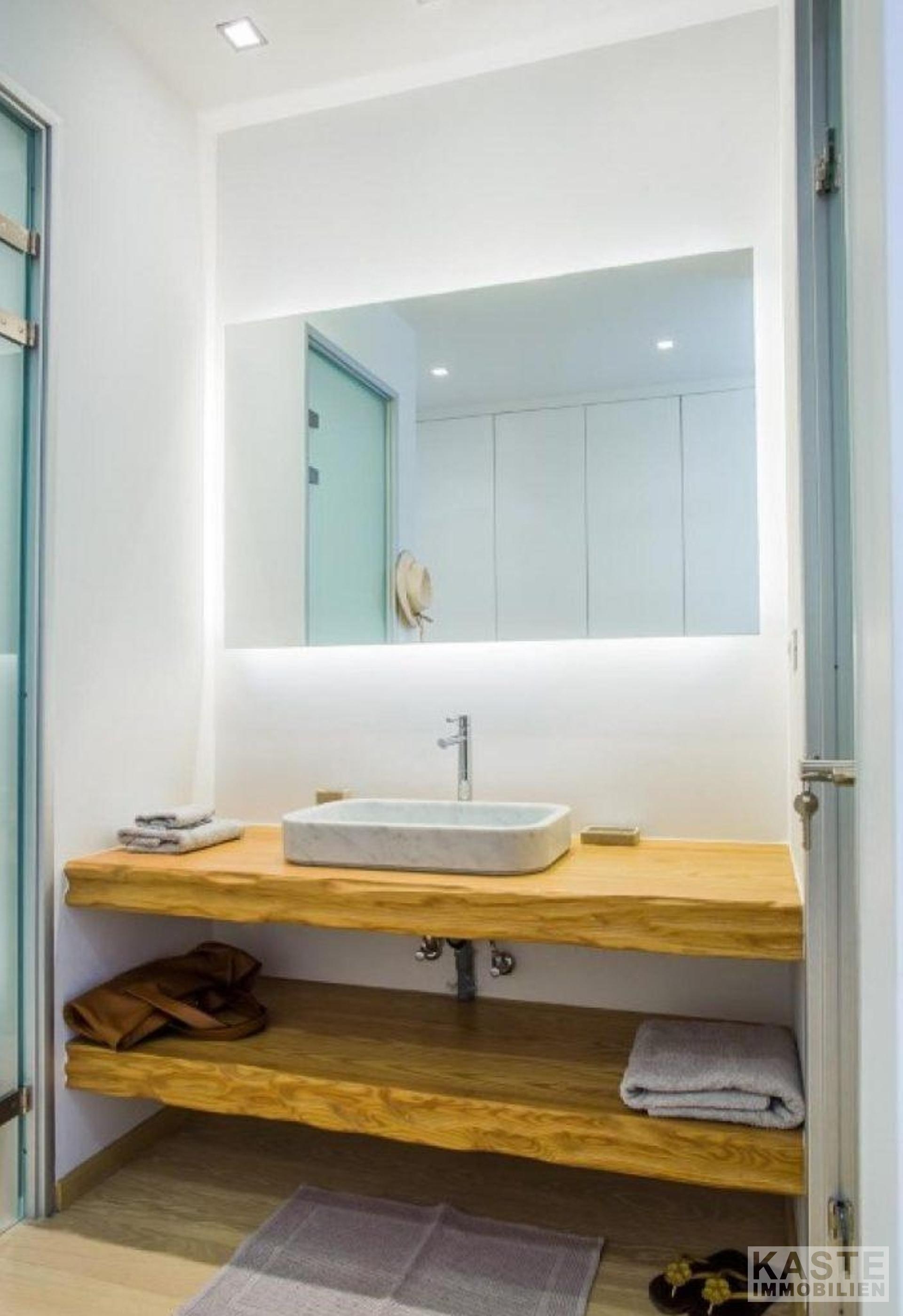 Außerdem gibt es ein geräumiges, offenes Wohnzimmer mit einer voll ausgestatteten modernen Küche und einem Essbereich, der von großen Glasfenstern umgeben ist, die eine unglaubliche Aussicht bieten.
