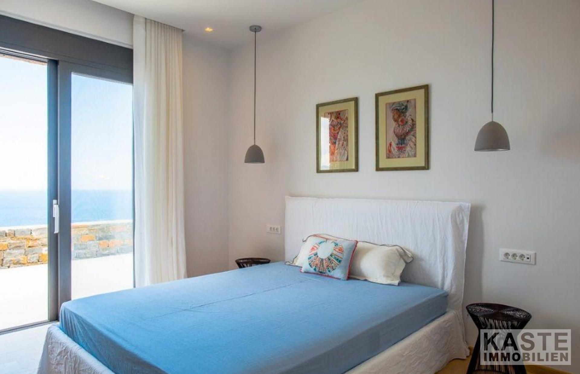 Das Anwesen hat eine dem Gelände angepasste bebaute Fläche von 420 qm und erstreckt sich über 3 Ebenen mit großzügigen Wohn- und Schlafbereichen. Die Villa kann bis zu 10 Personen beherbergen. Es gibt vier Schlafzimmer mit eigenem Bad und Panoramablick auf das Meer, durchflutet von natürlichem Licht und frischer Meeresbrise.