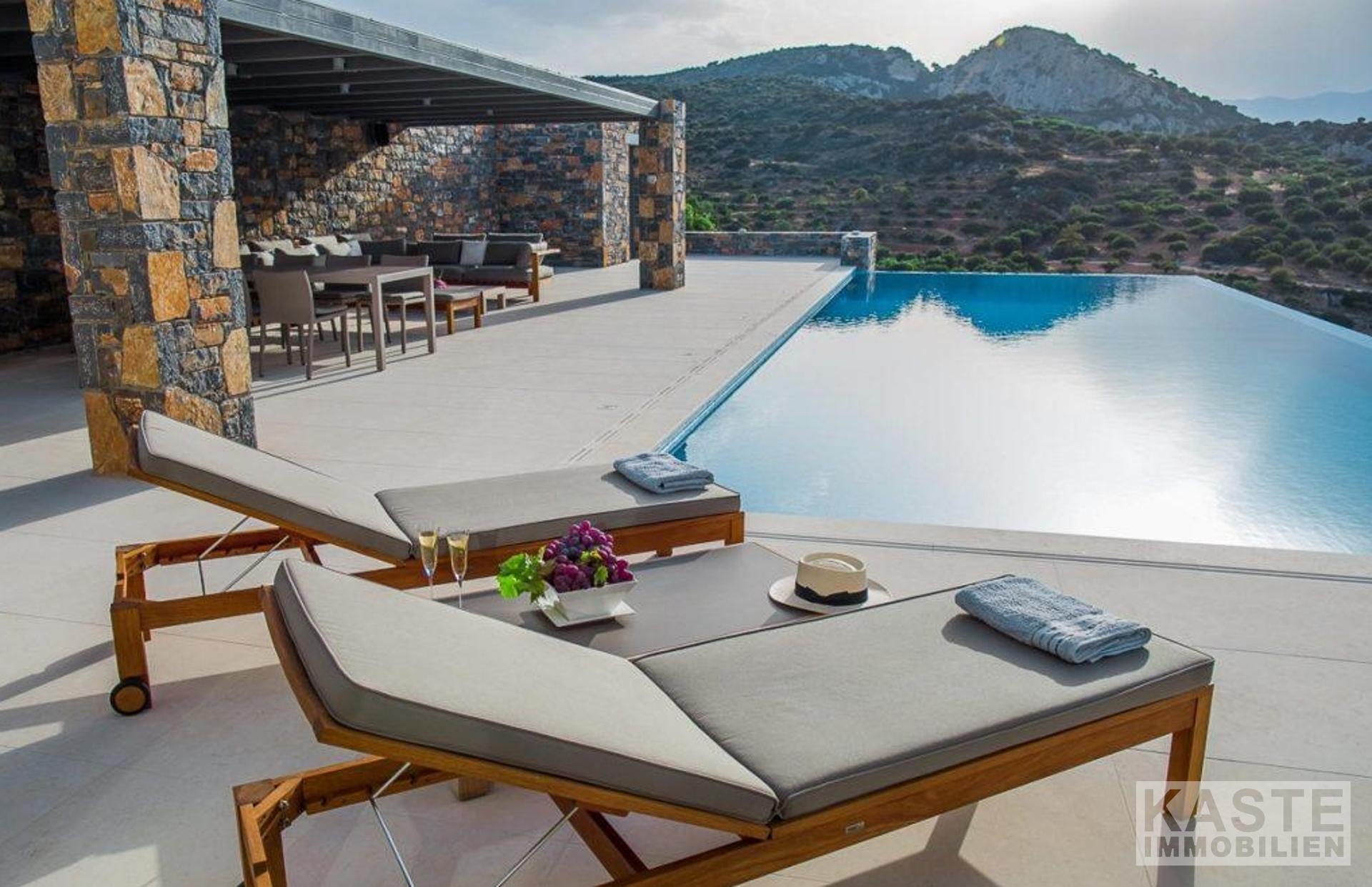 Diese Villa ist ein luxuriöses Schmuckstück mit Blick auf die Stadt Agios Nikolaos und dessen Bucht.
