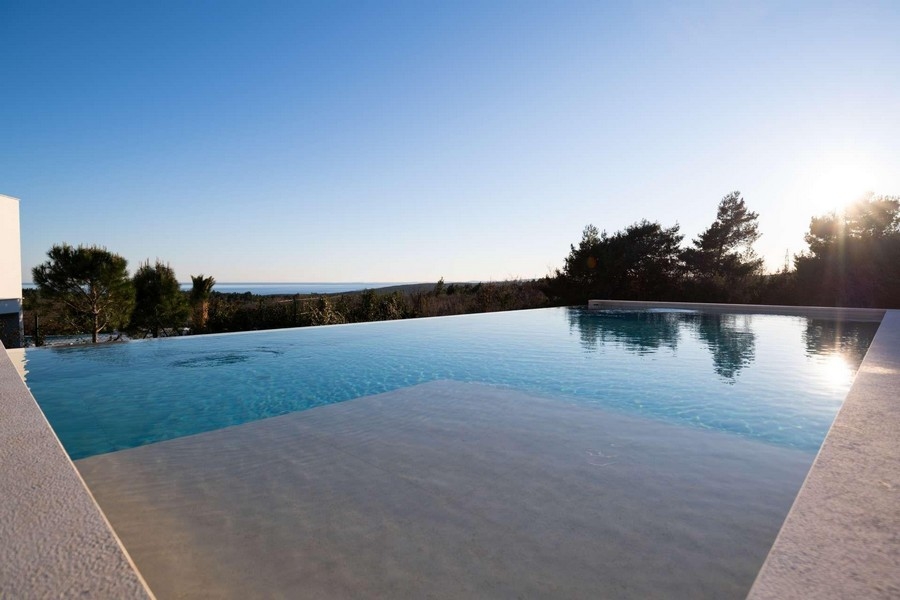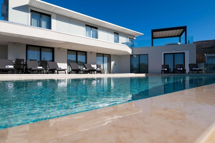 Diese exklusive Luxusvilla mit Meerblick befindet sich in einer kleinen Siedlung in der Nähe von Labin und ist nur ca. 4000 Meter vom Meer entfernt.