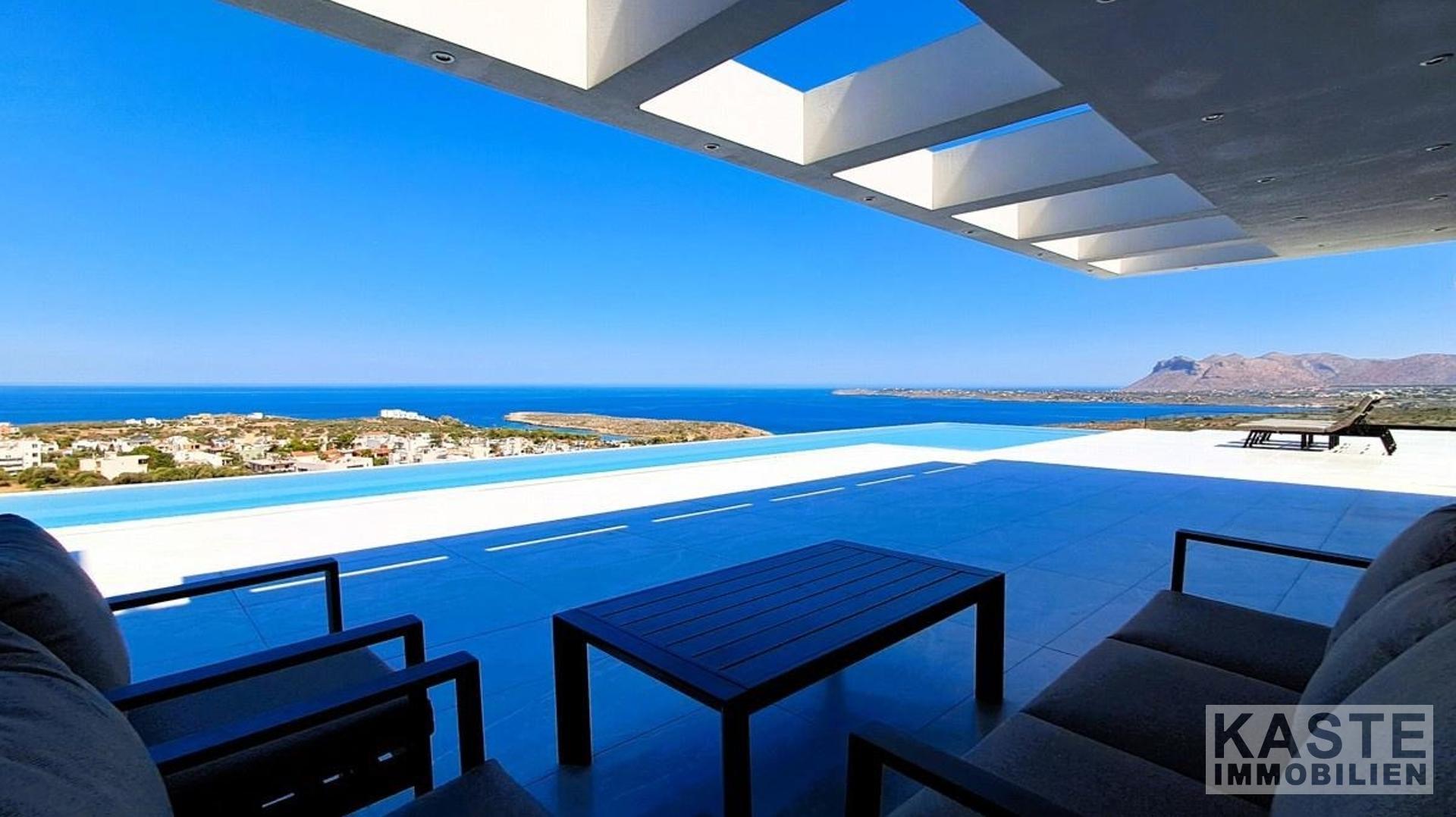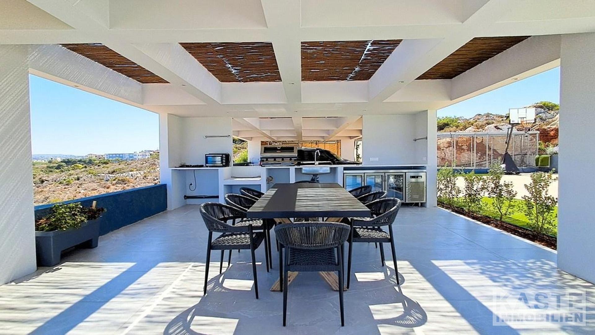 Tauchen Sie ein in ein Höchstmaß an Lebensqualität mit dieser exklusiven Villa in Agios Onoufrios, einer der begehrtesten Küstenlagen im Westen Kretas. Auf einem großzügigen 3.200 m² großen Grundstück erstreckt sich diese 401 m² große Residenz, die mit modernem Minimalismus und natürlichen Akzenten aus naturbelassenem Stein in perfekter Harmonie gestaltet wurde.