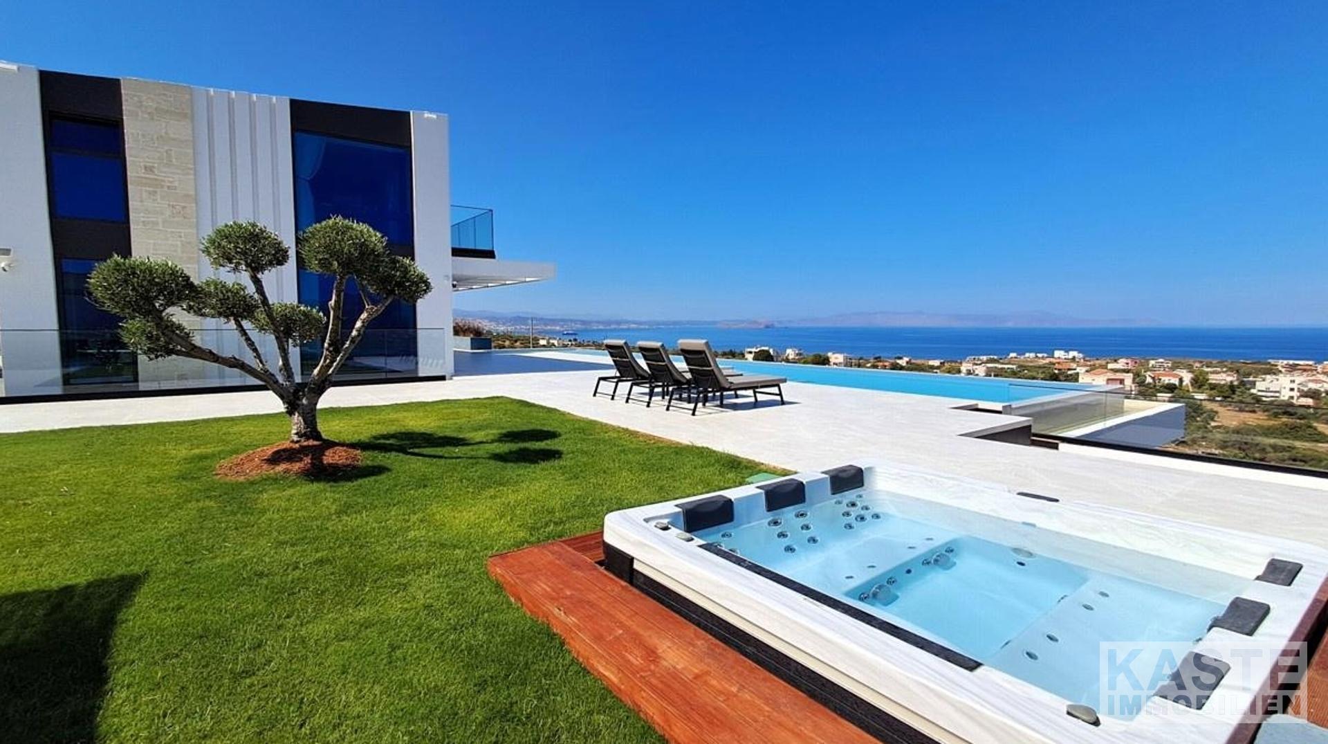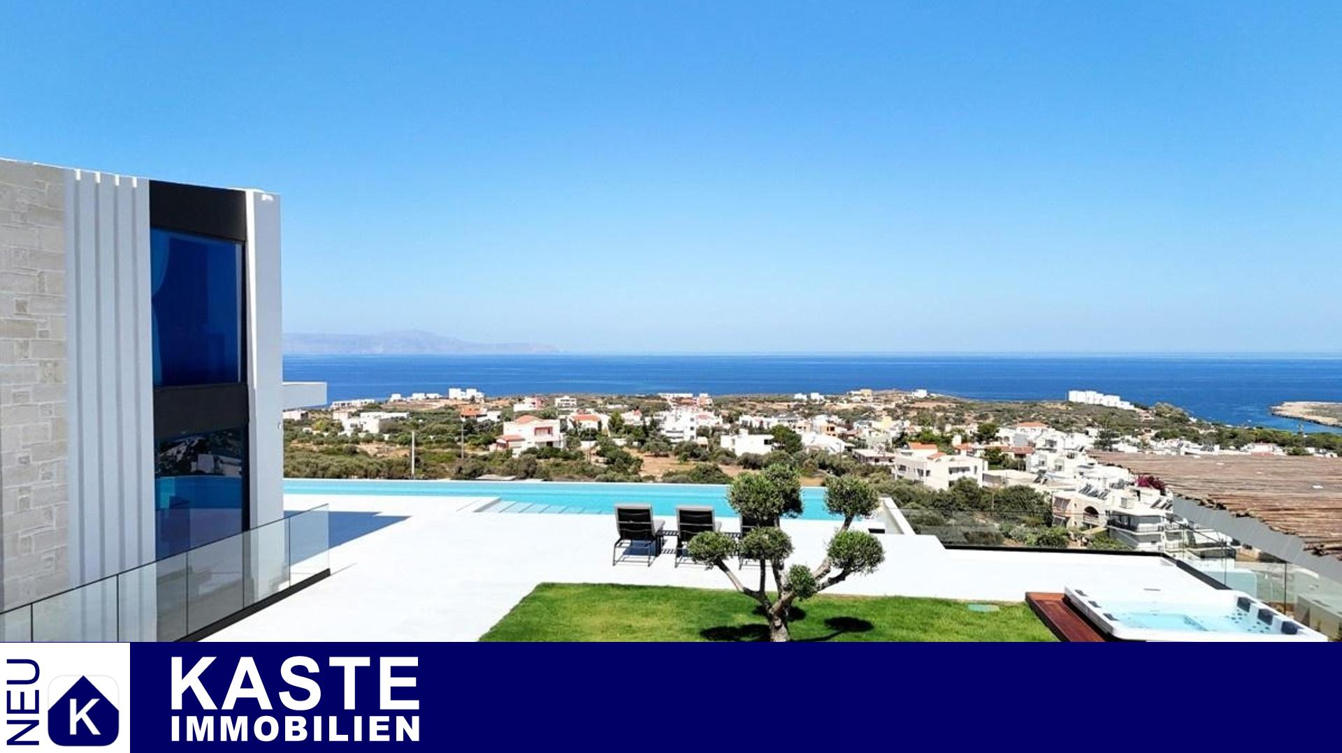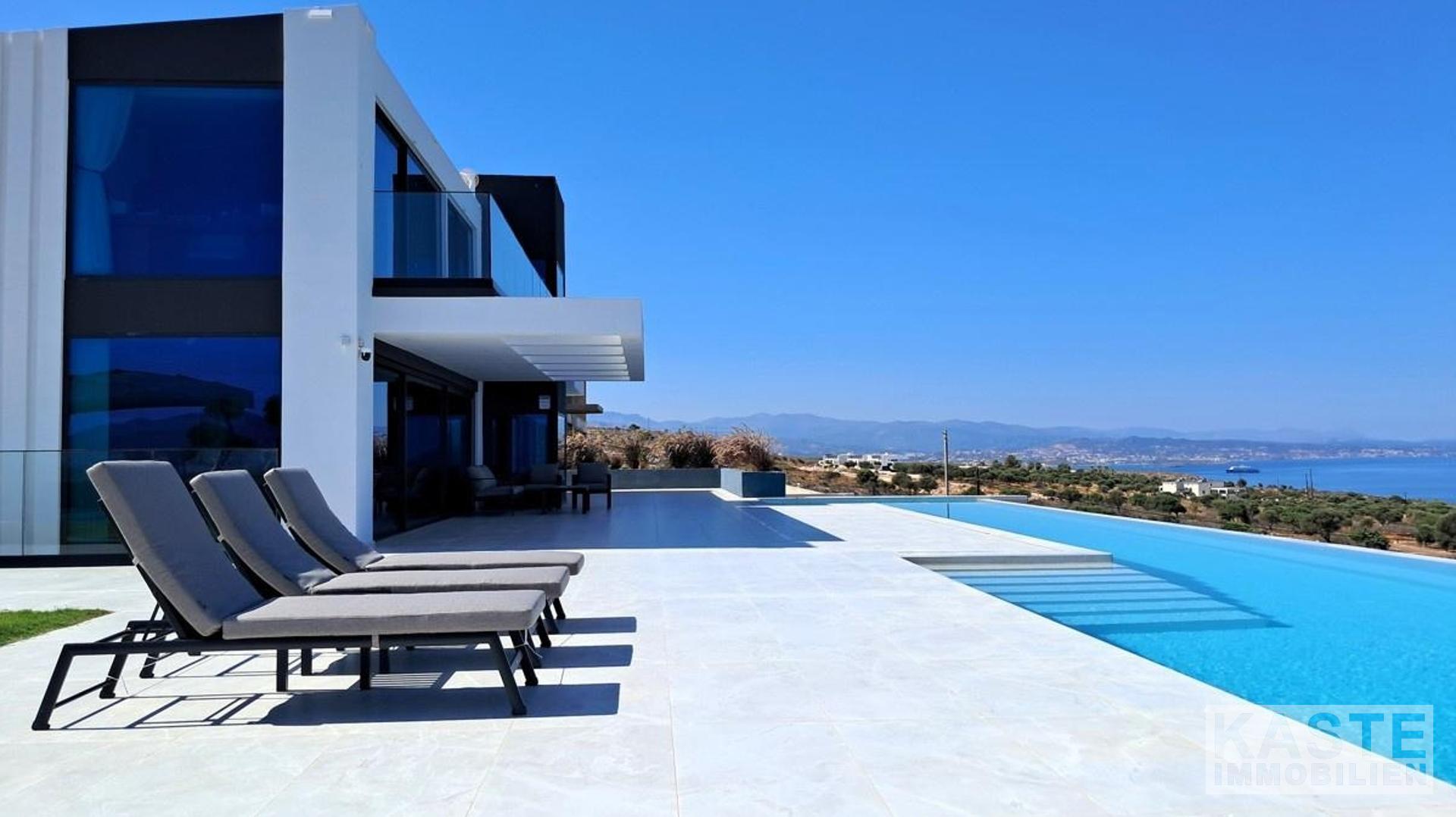 Tauchen Sie ein in ein Höchstmaß an Lebensqualität mit dieser exklusiven Villa in Agios Onoufrios, einer der begehrtesten Küstenlagen im Westen Kretas. Auf einem großzügigen 3.200 m² großen Grundstück erstreckt sich diese 401 m² große Residenz, die mit modernem Minimalismus und natürlichen Akzenten aus naturbelassenem Stein in perfekter Harmonie gestaltet wurde.