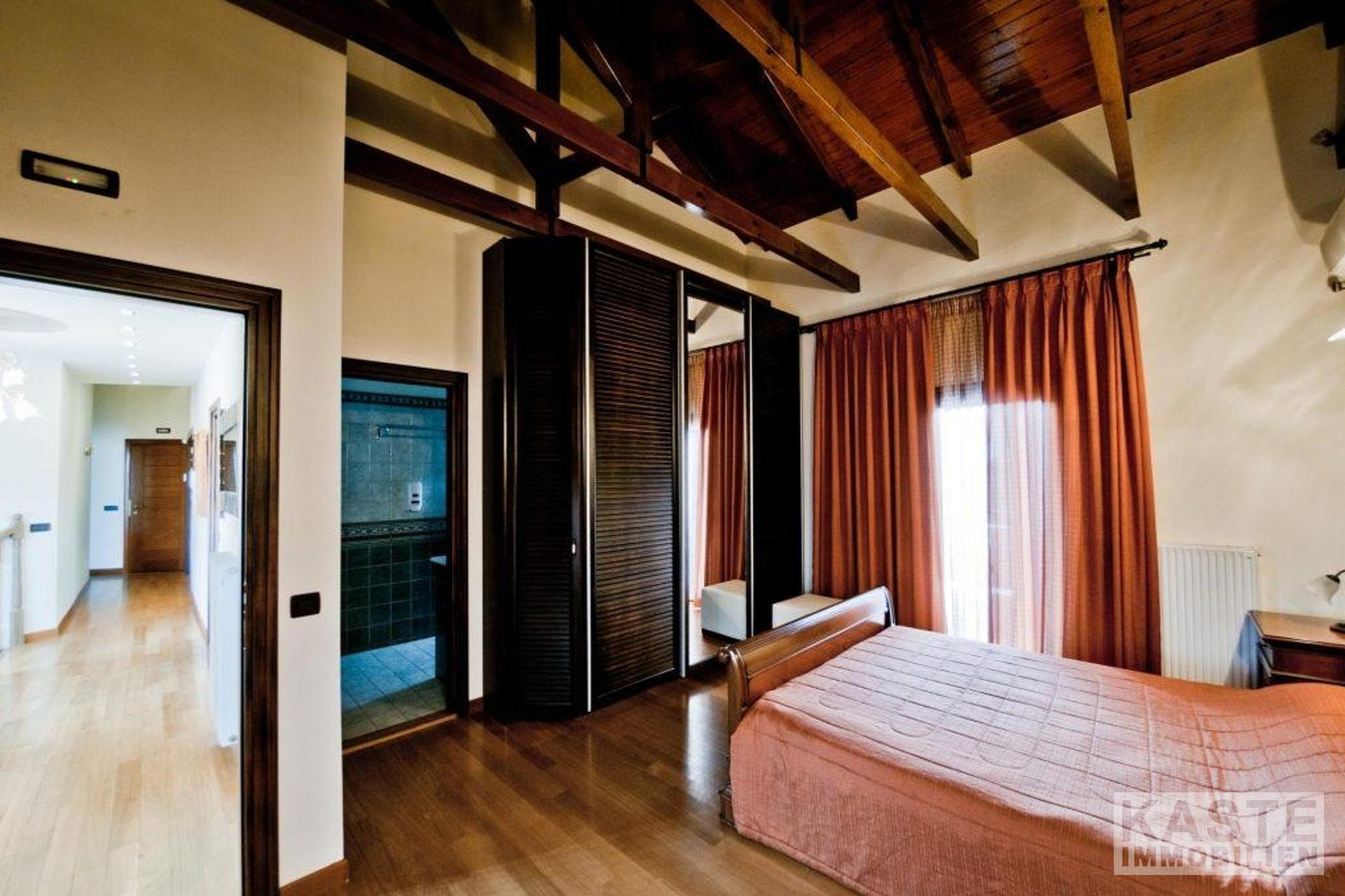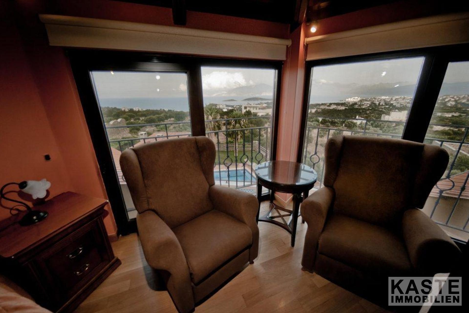 - Vermietungsservice möglich (modular anpassbar) - Online Besichtigung möglich - 4 Schlafzimmer - 4 Bäder - Möbliert - Garten - Parkplatz - Zufahrt über die Straße - Meerblick - Lagerräume - Pool mit Whirlpool - Klimaanlage - Kamin - Heimkinosystem - Dampfdusche - Badezimmer mit Whirlpool - Grill und Steinofen im Außenbereich