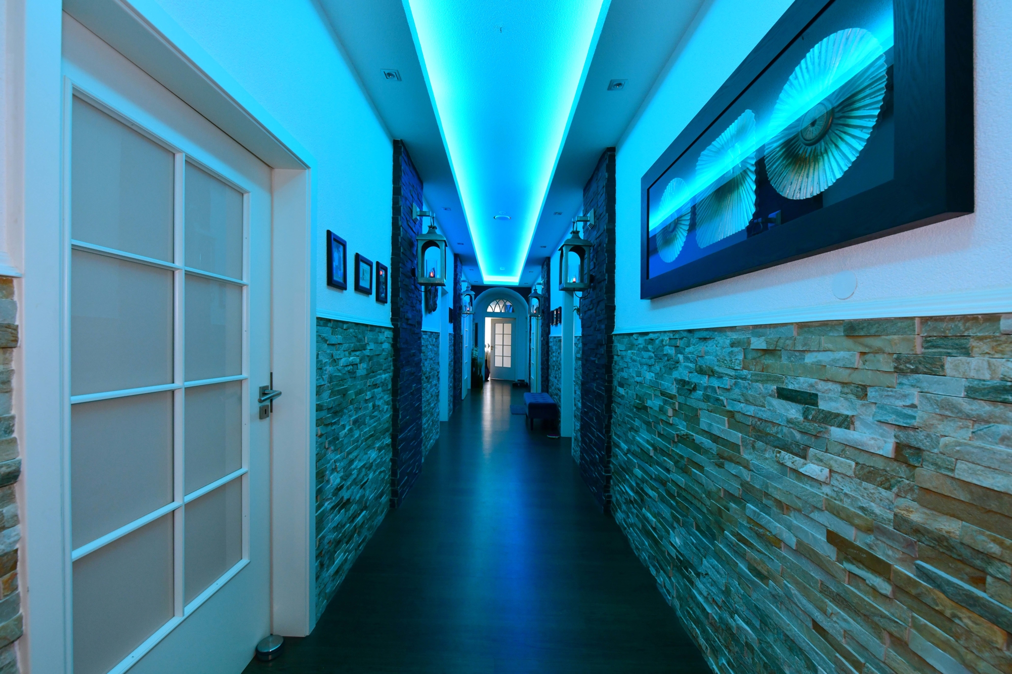 Die Wohnung wurde mit viel Liebe zum Detail und höchsten Ansprüchen an Qualität saniert. Schon beim Betreten werden Sie von edlen Natursteinwänden, stilvollen LED-Beleuchtungen und individuellen Unikat-Laternen begrüßt, die dem Flur und allen anderen Räumen einen rustikalen und gleichzeitig modernen Charme verleihen.