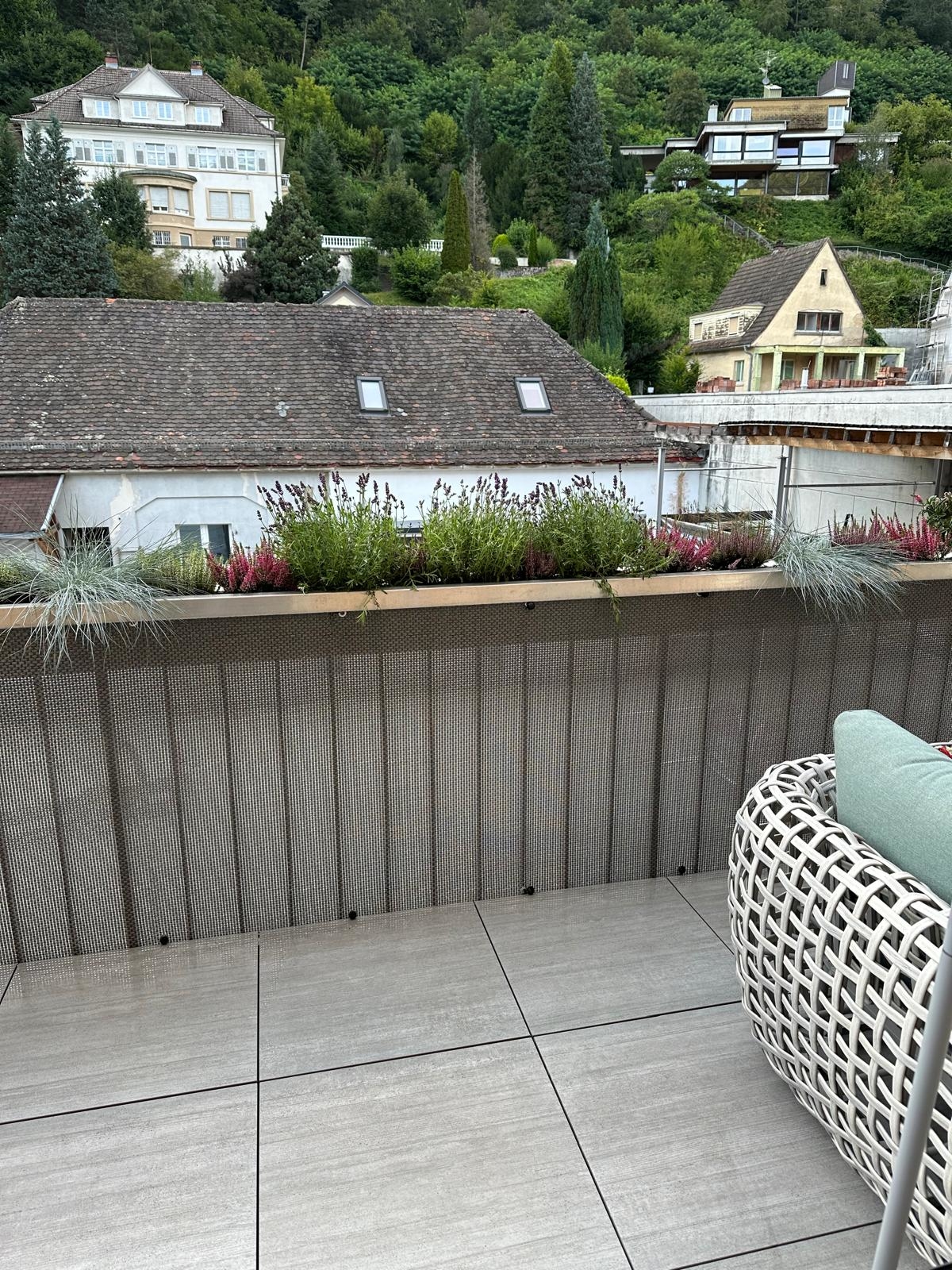 Balkon: Großer Süd-Balkon (27 m²) mit Blick in den Innenhof
