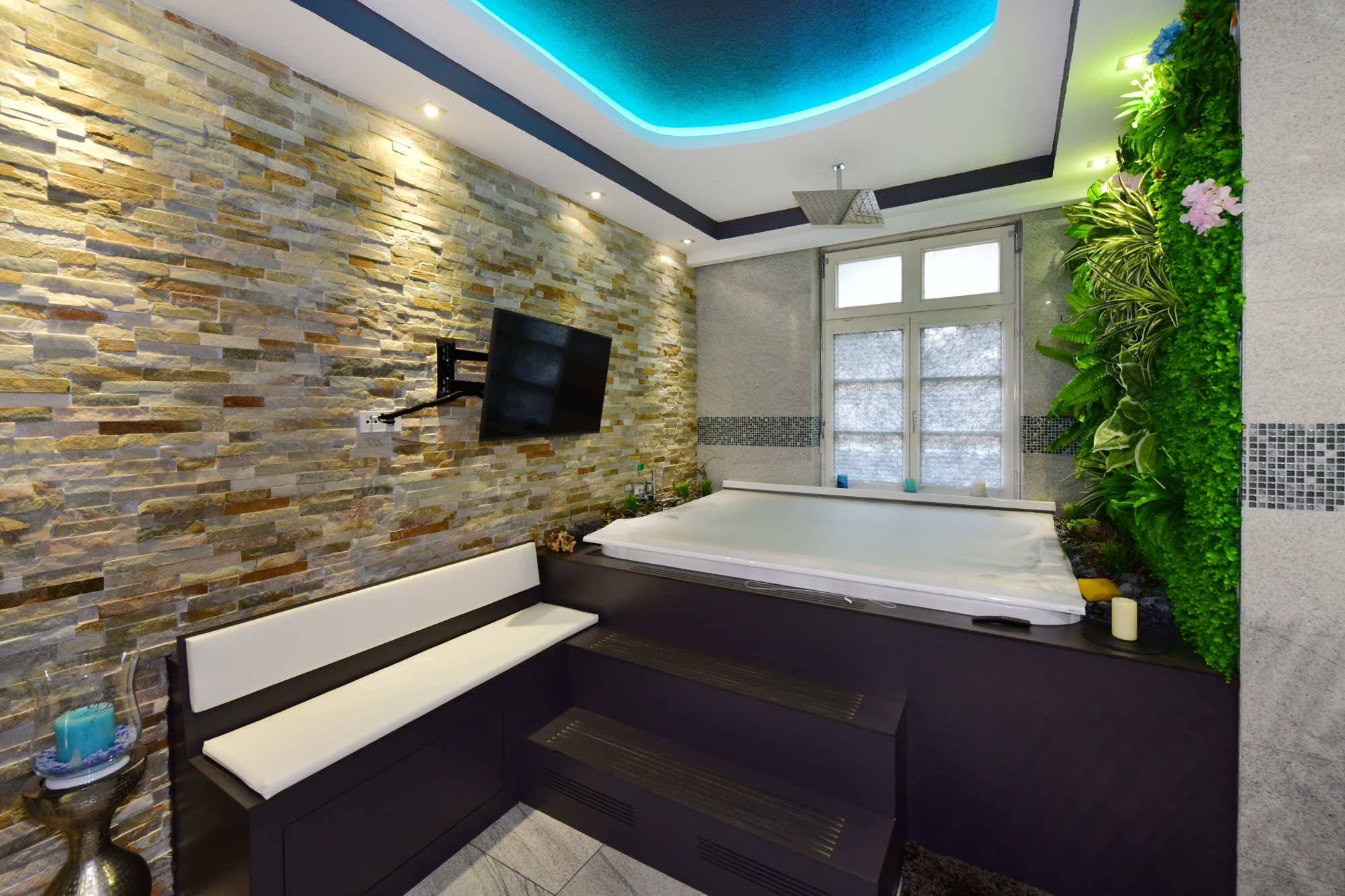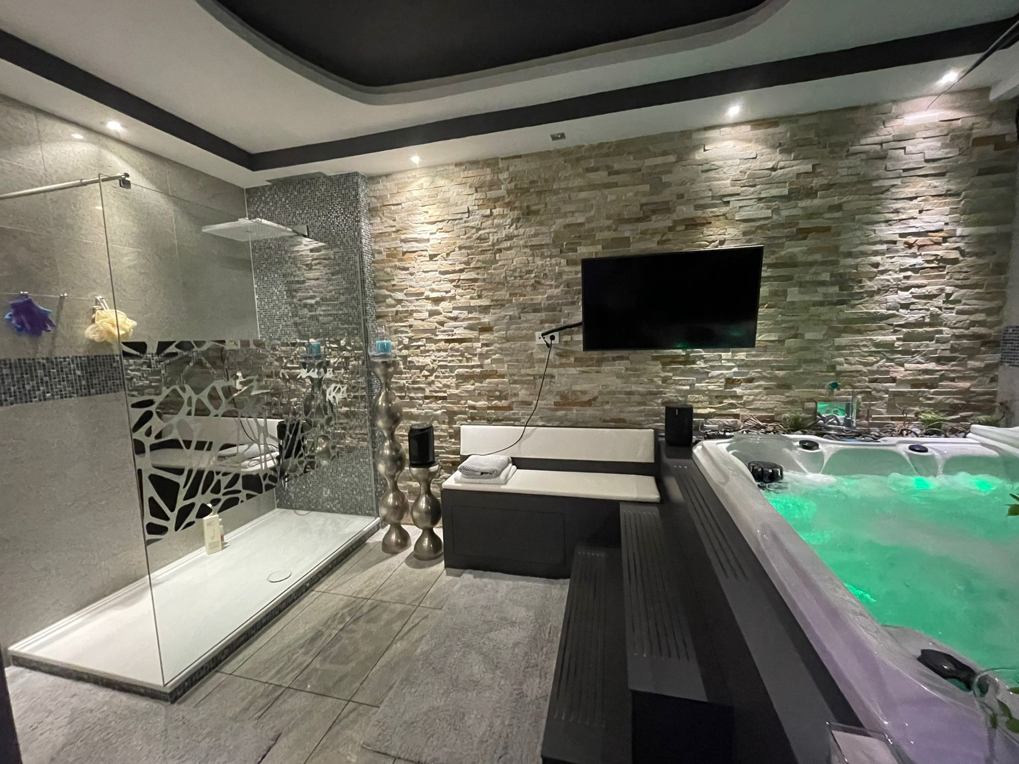 Bäder: 2 luxuriöse Badezimmer mit Whirlpool, Regen-Dusche, Granitwänden und -böden