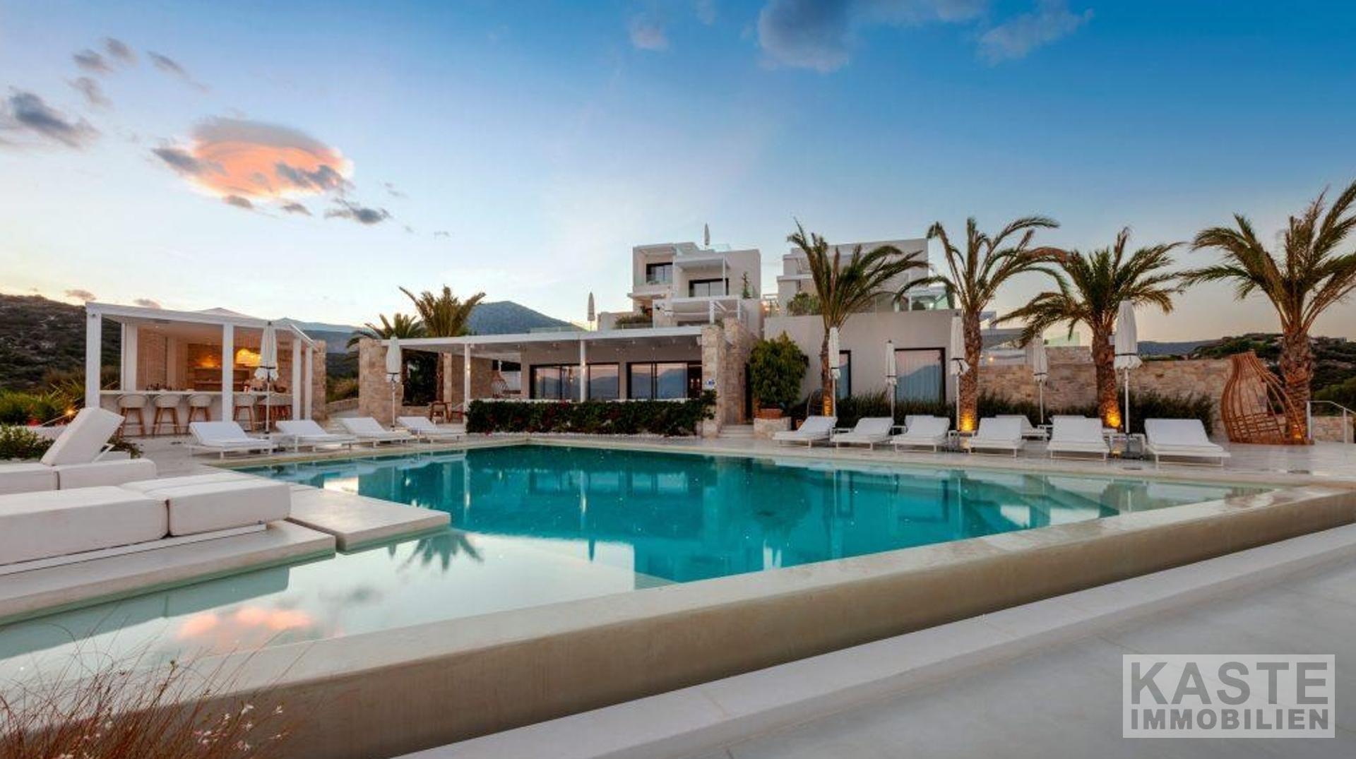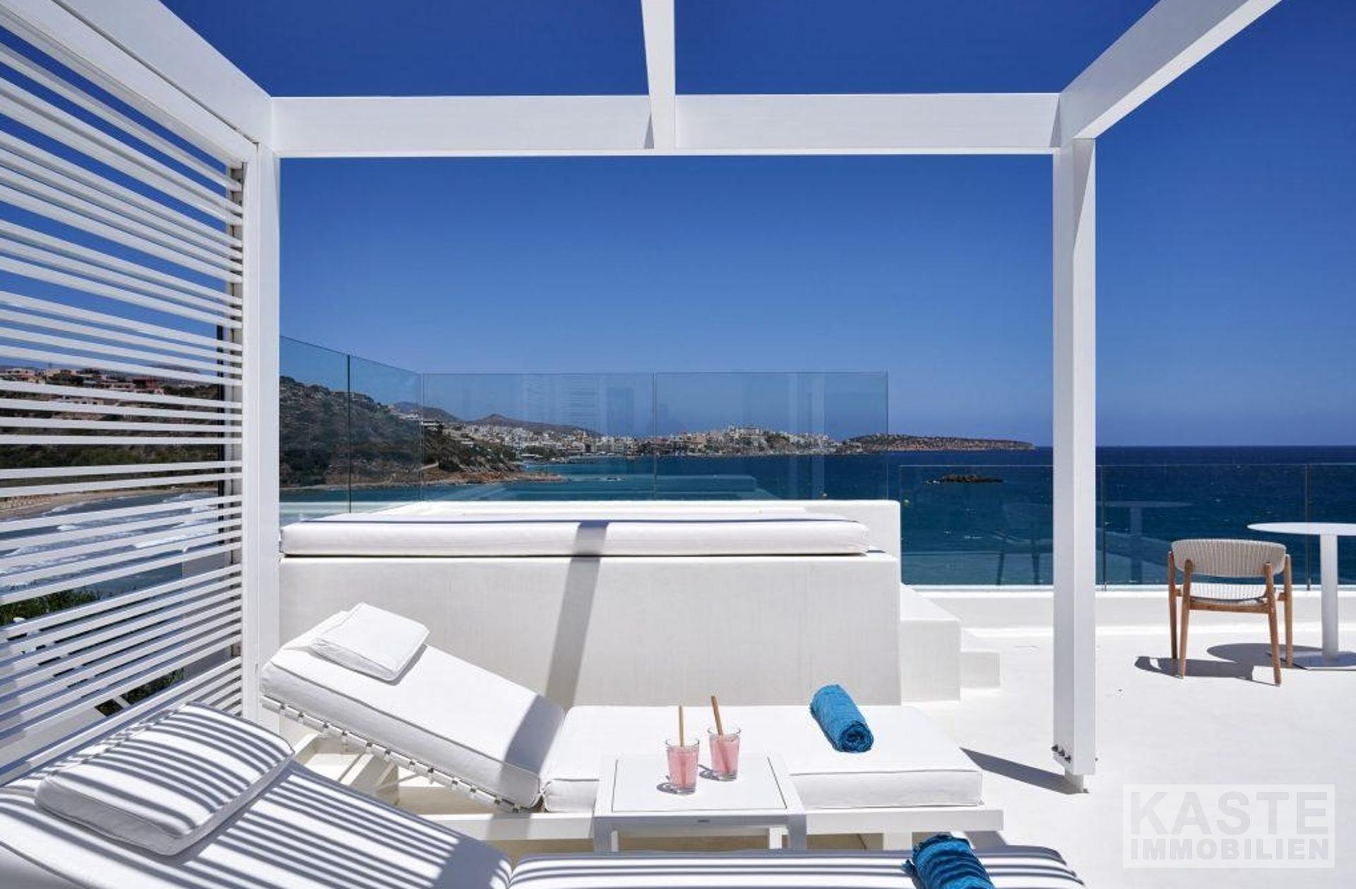 Dieses exklusive Boutique-Hotel nahe Agios Nikolaos bietet eine einzigartige Kombination aus Luxus, Eleganz und traditionellem griechischen Flair auf der traumhaften Insel Kreta. Die insgesamt 16 Suiten und Apartments erstrecken sich über 872 Quadratmeter und sind architektonisch fein auf ein minimalistisches, modernes Design abgestimmt, das gleichermaßen die Schönheit der umliegenden Natur und das typische griechische Inselambiente widerspiegelt. Jede Unterkunft überzeugt mit hochwertiger Ausstattung, privatem Pool- oder Whirlpool-Bereich, großzügigen Terrassen und faszinierendem Meerblick – so genießen Gäste pure Ruhe und unvergleichliche Privatsphäre.