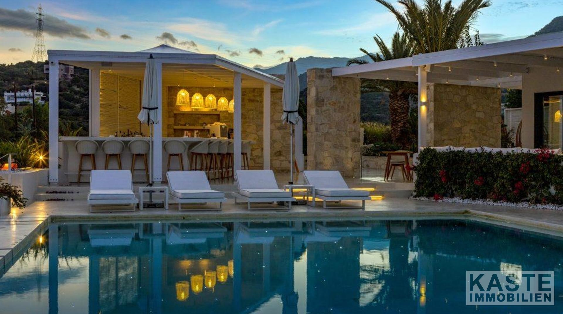 Diese Immobilie stellt ein außergewöhnliches Investment dar, das höchste Ansprüche erfüllt und gleichzeitig den einmaligen Charme Kretas in Szene setzt. Die Lage bietet neben der Ruhe der Natur auch die Nähe zur lebhaften Stadt Agios Nikolaos mit all ihren kulturellen Angeboten und Annehmlichkeiten – ideal für Urlaubsgäste und als Kapitalanlage mit großem Vermietungspotential.