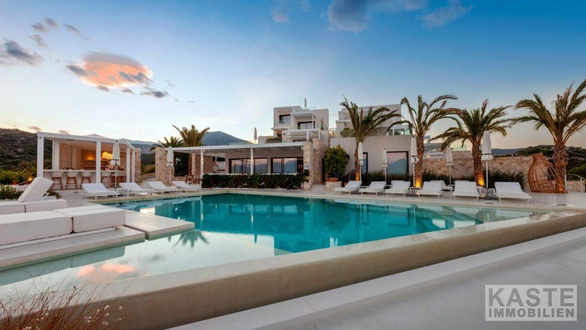 Dieses exklusive Boutique-Hotel nahe Agios Nikolaos bietet eine einzigartige Kombination aus Luxus, Eleganz und traditionellem griechischen Flair auf der traumhaften Insel Kreta. Die insgesamt 16 Suiten und Apartments erstrecken sich über 872 Quadratmeter und sind architektonisch fein auf ein minimalistisches, modernes Design abgestimmt, das gleichermaßen die Schönheit der umliegenden Natur und das typische griechische Inselambiente widerspiegelt. Jede Unterkunft überzeugt mit hochwertiger Ausstattung, privatem Pool- oder Whirlpool-Bereich, großzügigen Terrassen und faszinierendem Meerblick – so genießen Gäste pure Ruhe und unvergleichliche Privatsphäre.