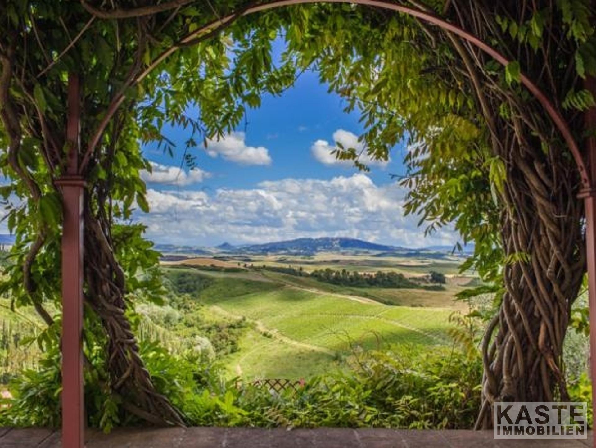 Außenbereich: Vom Erdgeschoss, das Küche und Wohnzimmer überblickt und durch zwei Bogentüren erreichbar ist, gelangt man in einen Garten mit Steinpflaster (Chiostra). Hier befindet sich eine Loggia mit Tisch und Stühlen, unter der man zu Mittag essen oder verweilen kann. In absoluter Entspannung können Sie auf bequemen Sofas unter einer Pergola, die von einer wunderschönen jahrhundertealten Glyzinie bedeckt ist, die spektakuläre Landschaft voller Weinberge und Hügel bewundern, die sich bis zur wunderschönen Stadt Volterra erstrecken.