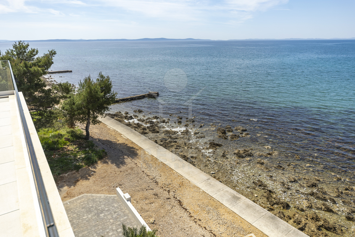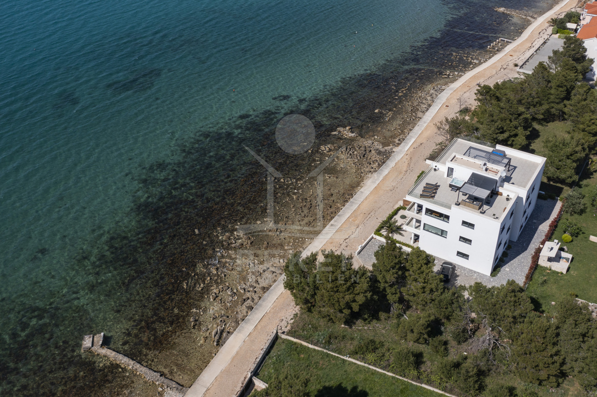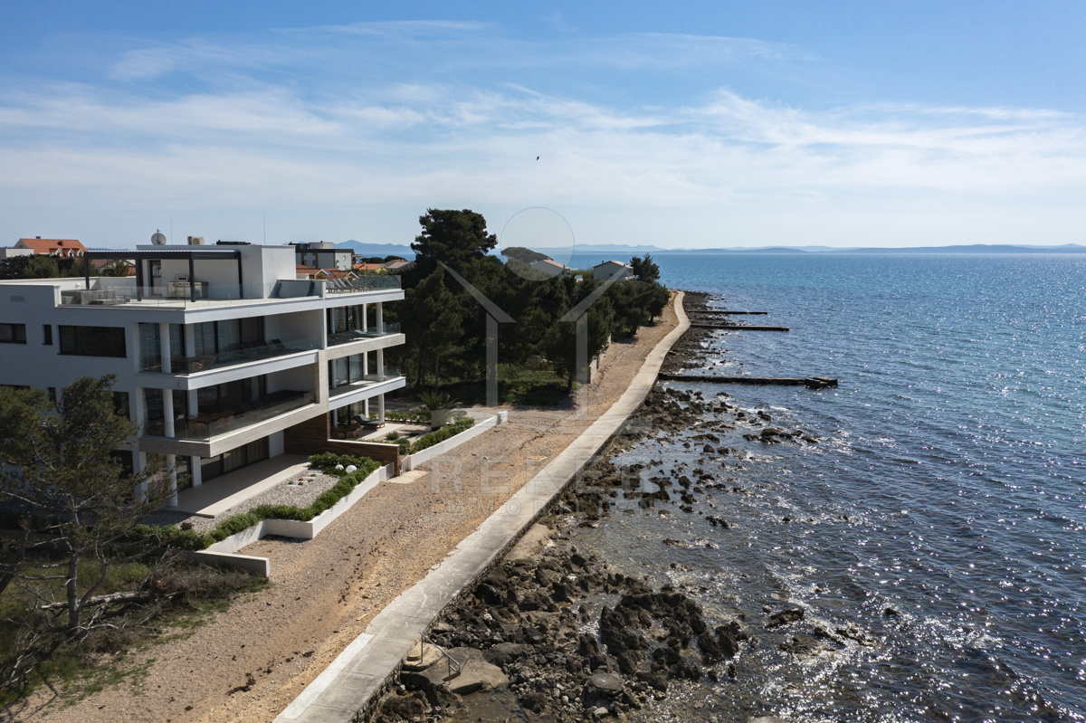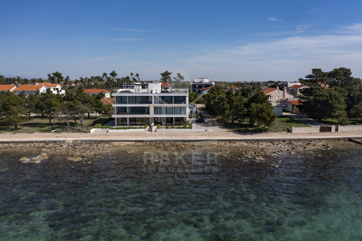 Nur fünf Meter vom Meer entfernt befindet sich dieses exklusive Penthouse in erster Reihe von Privlaka, einem der schönsten Küstenorte Norddalmatiens. Das moderne Gebäude steht direkt an der Uferpromenade, in ruhiger Umgebung, und verfügt über einen privaten Stellplatz (14,19 m²). Hier verbinden sich Meeresnähe und Wohnkomfort auf besondere Weise.