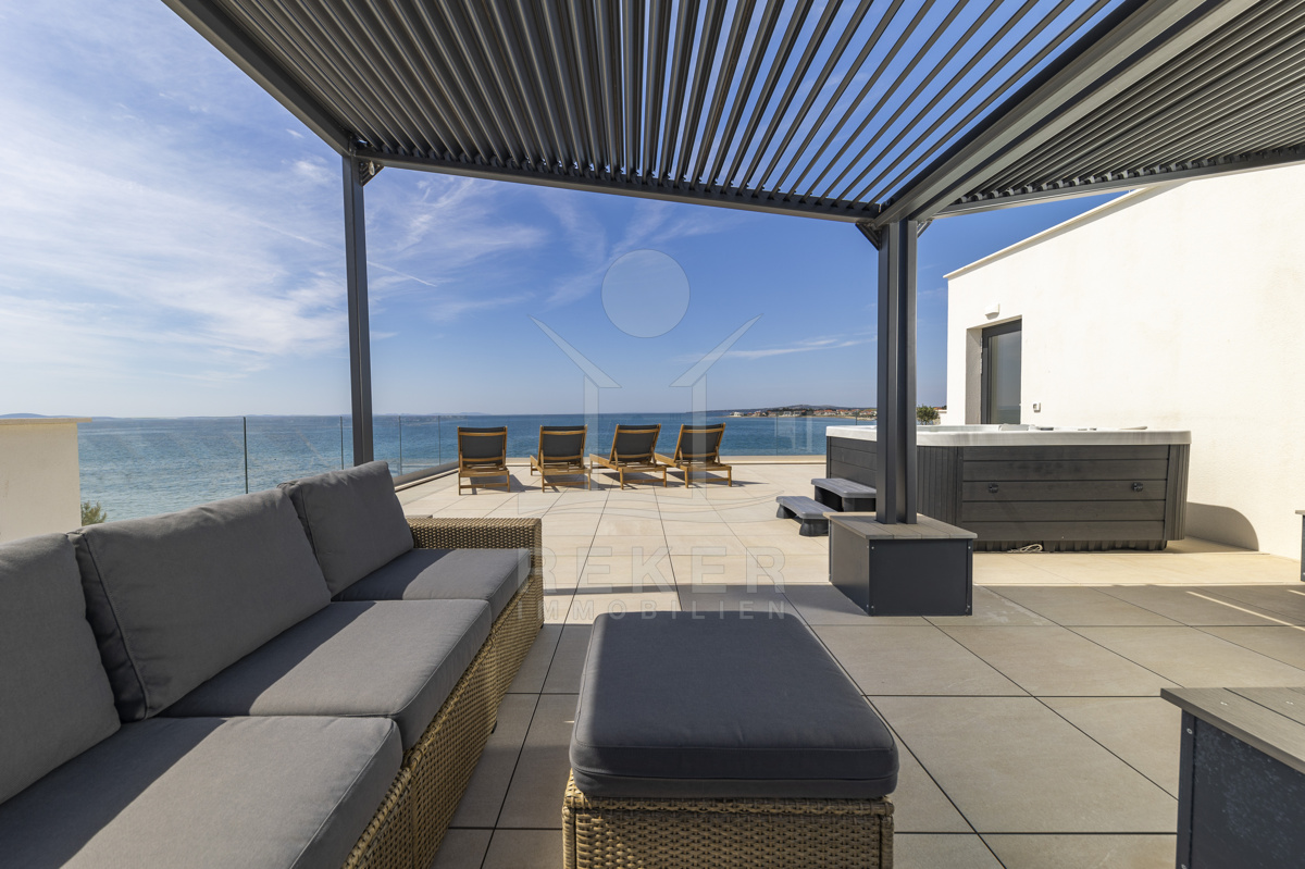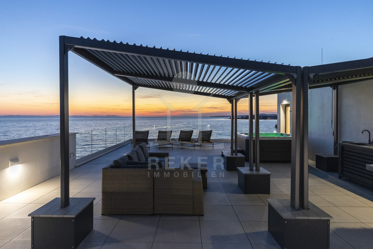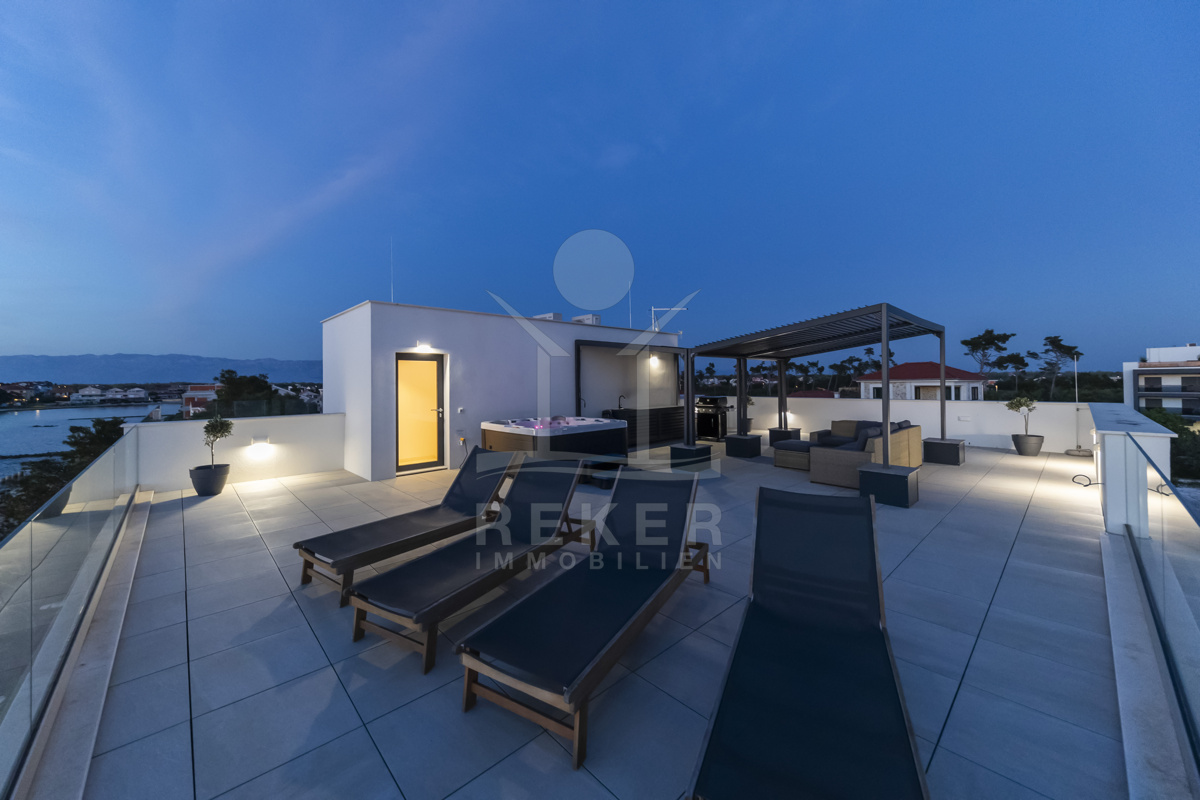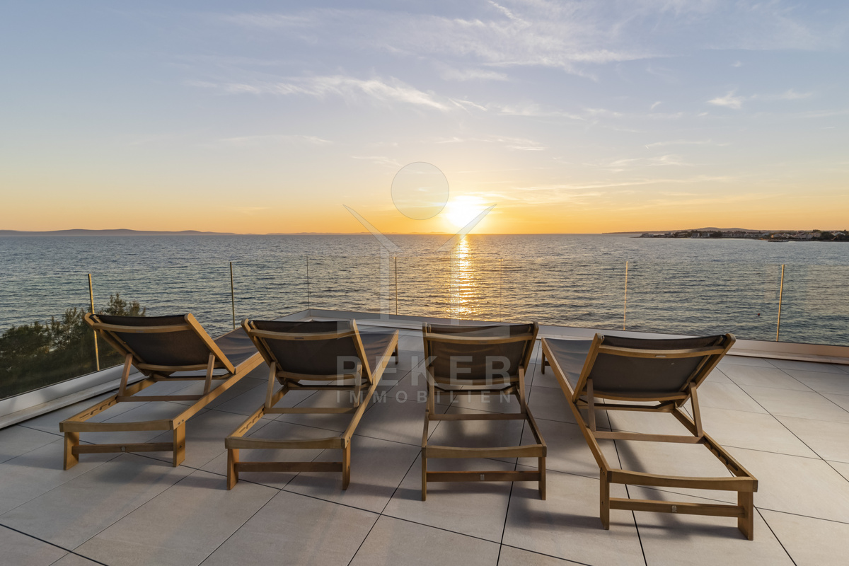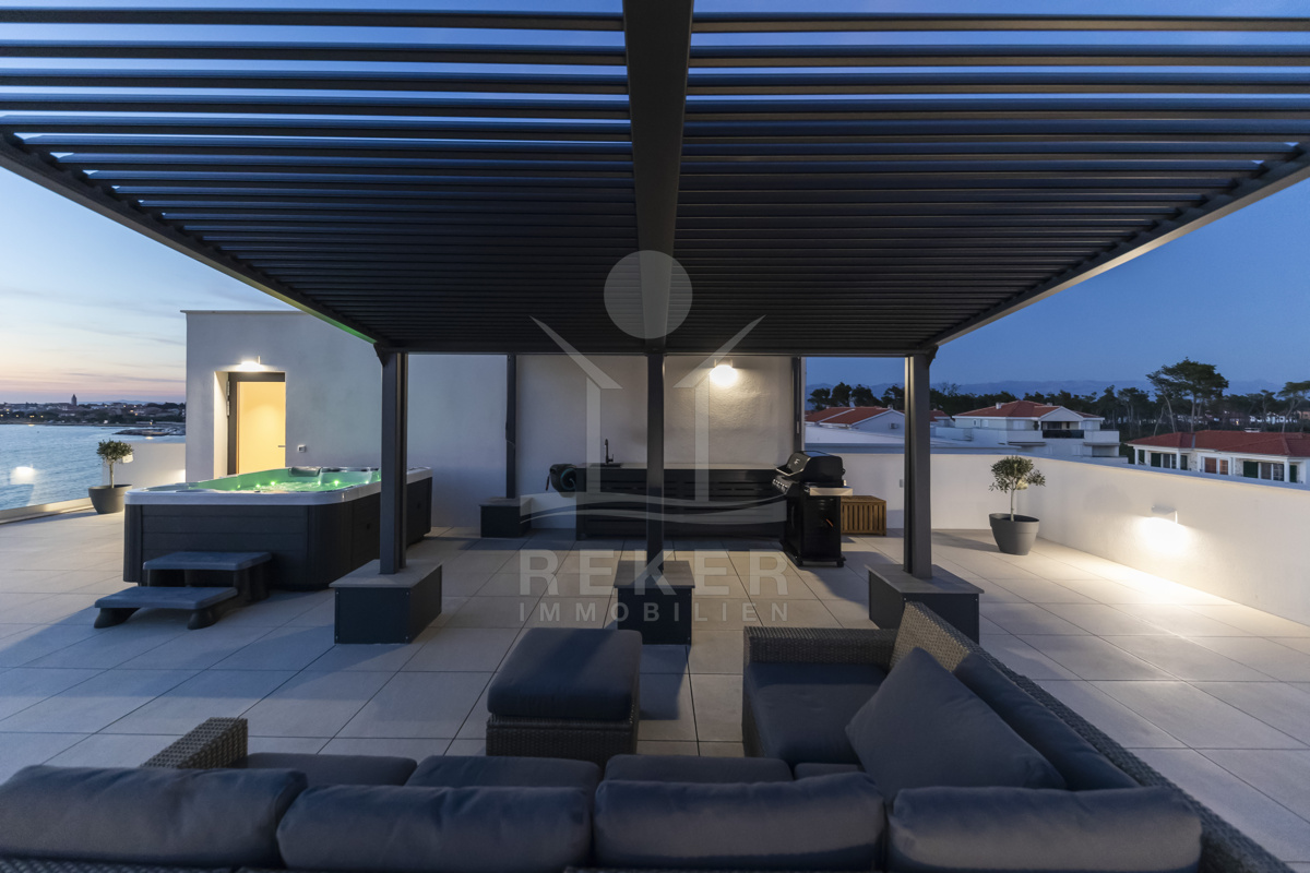 Morgens schwimmen, mittags auf der Terrasse entspannen, abends den Sonnenuntergang mit einem Glas Wein genießen … dieses Penthouse in Privlaka lässt mediterranen Lifestyle Wirklichkeit werden. Luxus, Meer und Ruhe in perfekter Balance.