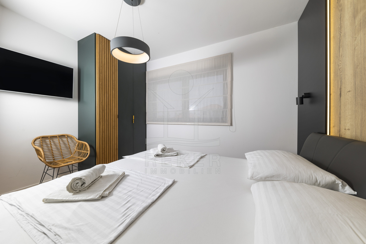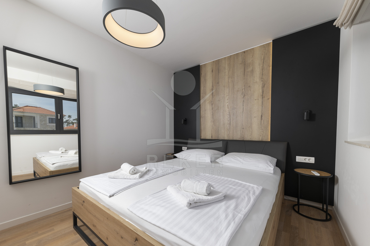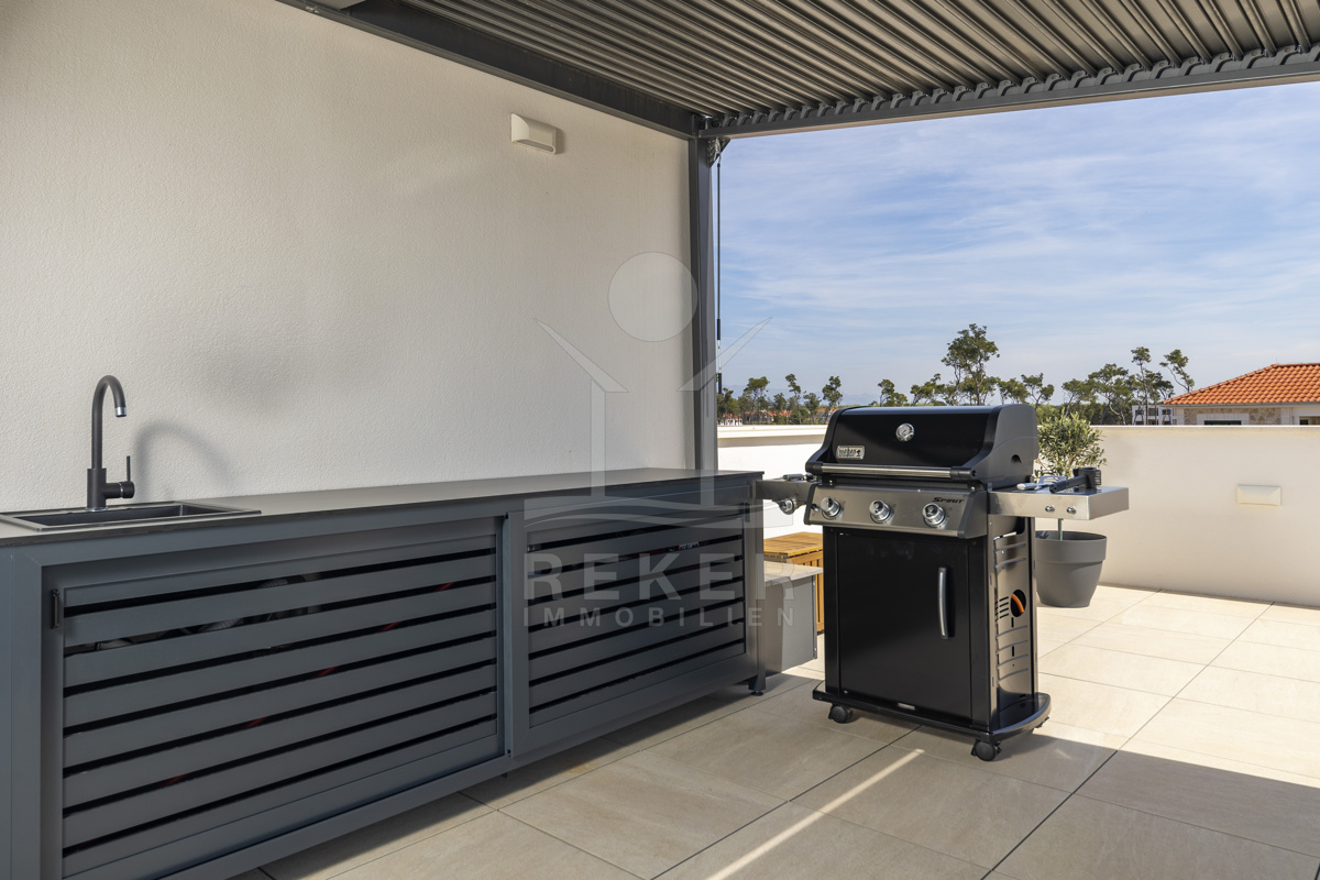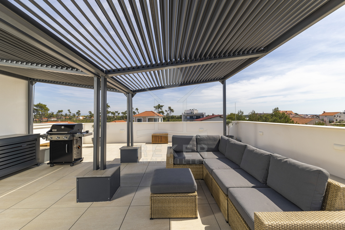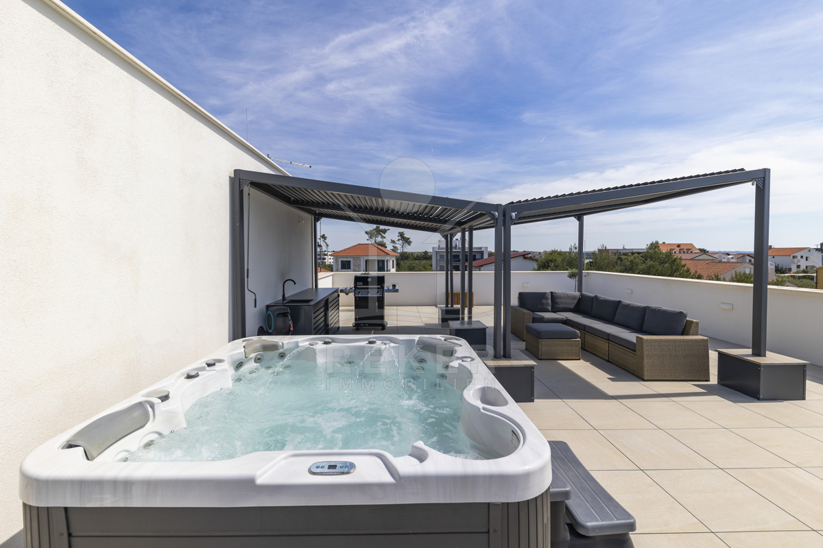 Morgens schwimmen, mittags auf der Terrasse entspannen, abends den Sonnenuntergang mit einem Glas Wein genießen … dieses Penthouse in Privlaka lässt mediterranen Lifestyle Wirklichkeit werden. Luxus, Meer und Ruhe in perfekter Balance.