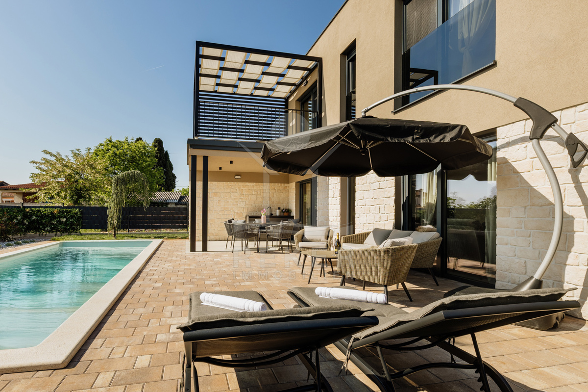 Design trifft Dolce Vita: Diese bezugsfertige Villa bietet mehr als Lage und Stil. Ein Outdoor-Paradies mit Pool und Lounge, nur Minuten vom Meer – innen edel möbliert, außen von Palmen eingerahmt. Willkommen in Ihrem Istrien-Alltag.