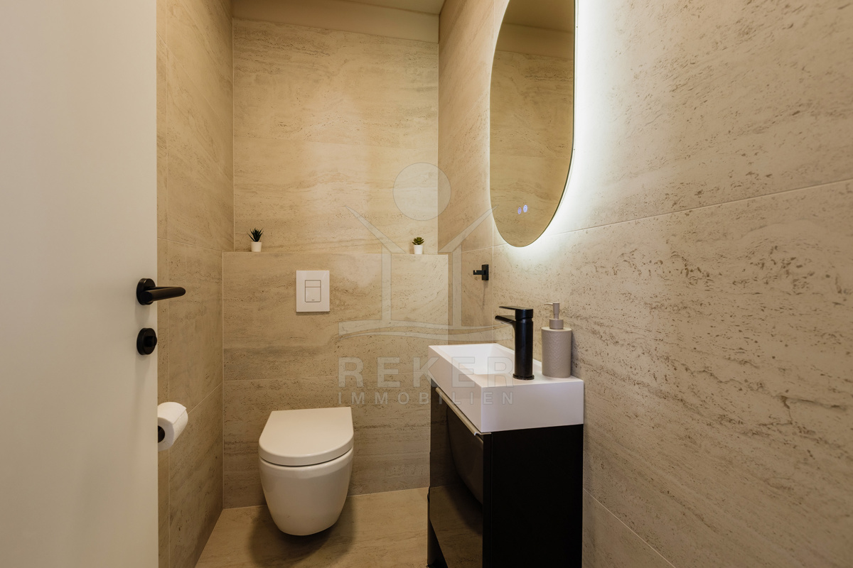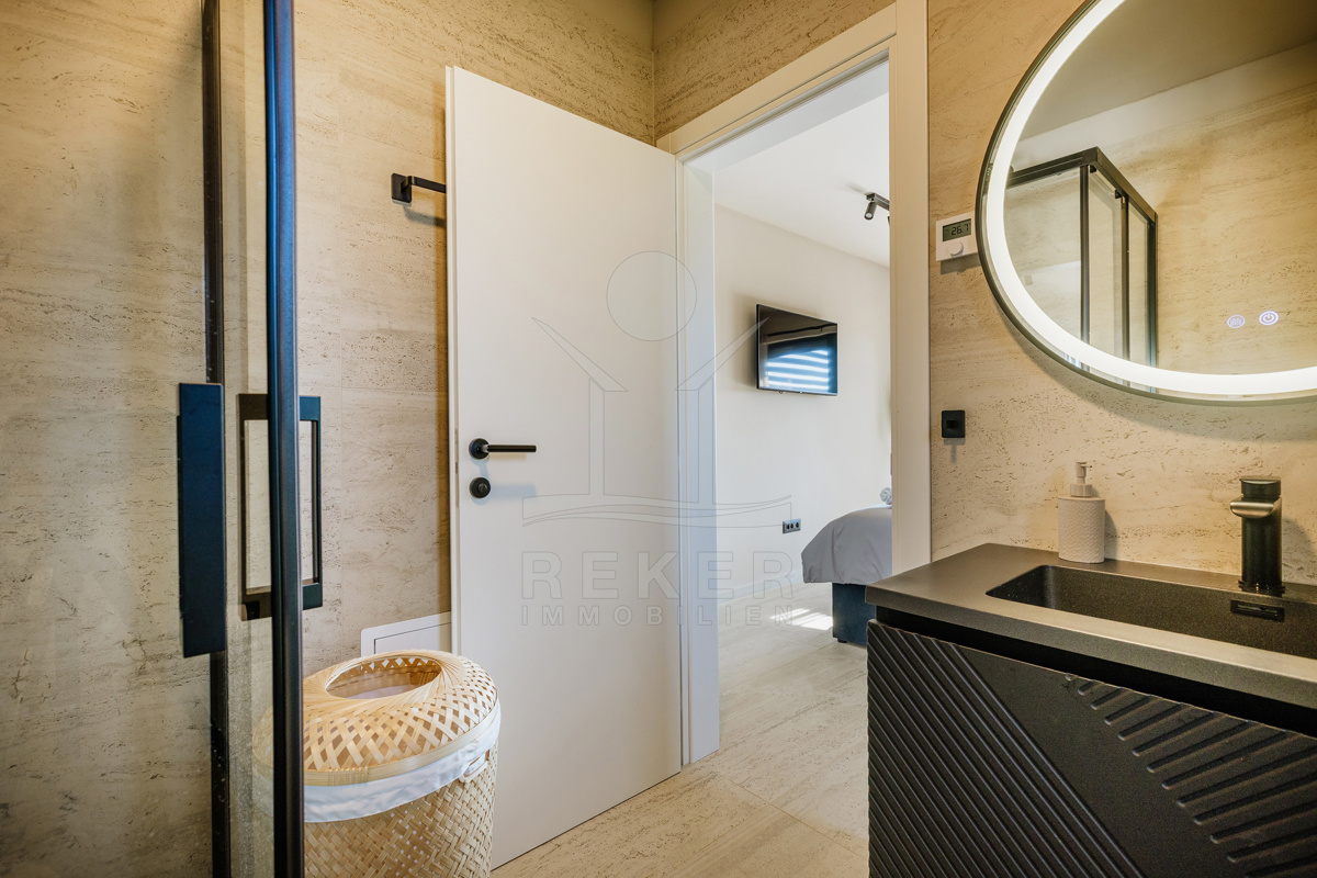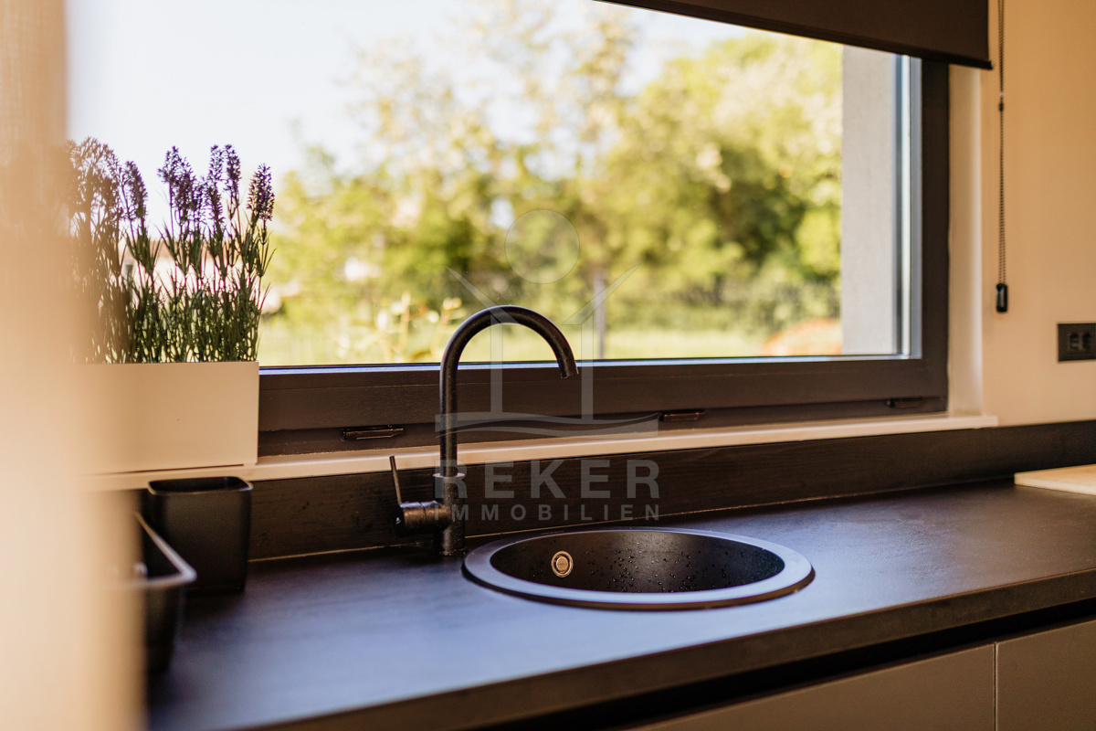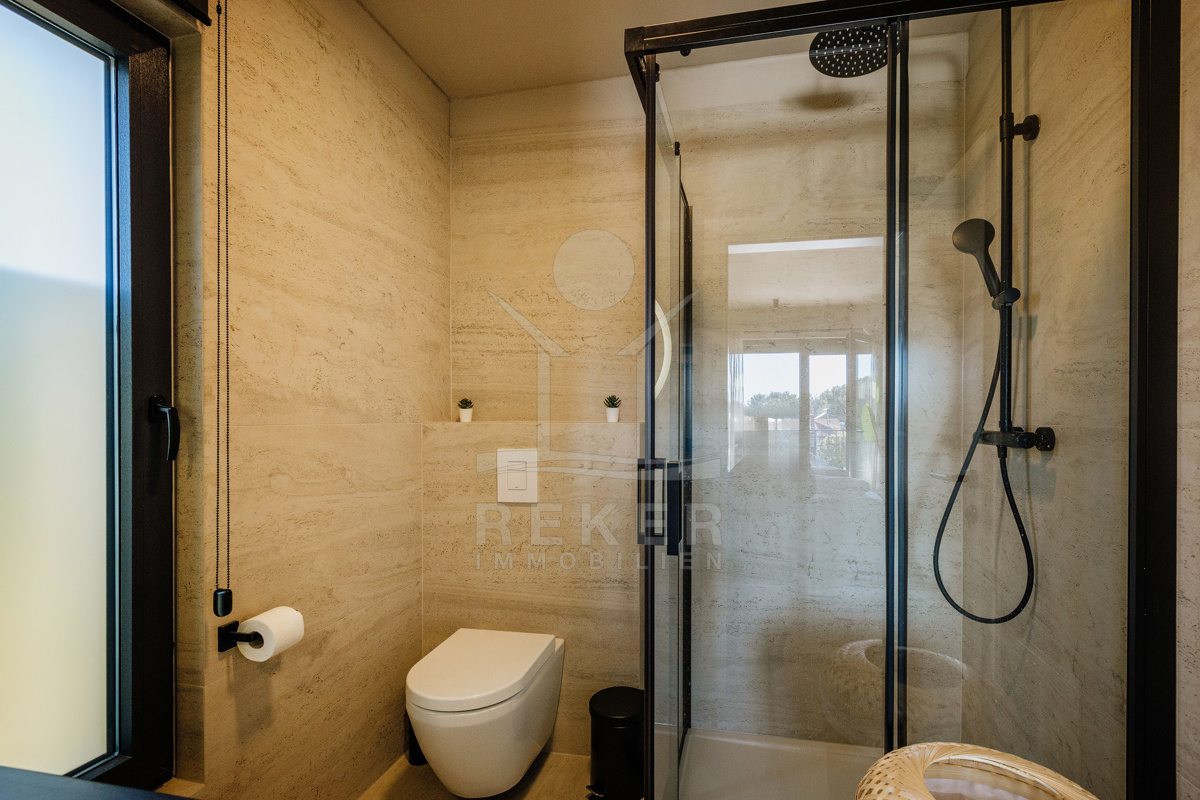 Mitten in einen charmanten Ort nahe Poreč, steht diese moderne Villa auf einem 540 m² großen Grundstück. Alles, was Sie für den Alltag brauchen, liegt direkt vor der Haustür: Restaurants, Cafés, Supermarkt, Post und vieles mehr. Und das Meer? Nur 3 Kilometer entfernt. Auch der Parkplatz befindet sich direkt auf dem eigenen Grundstück.