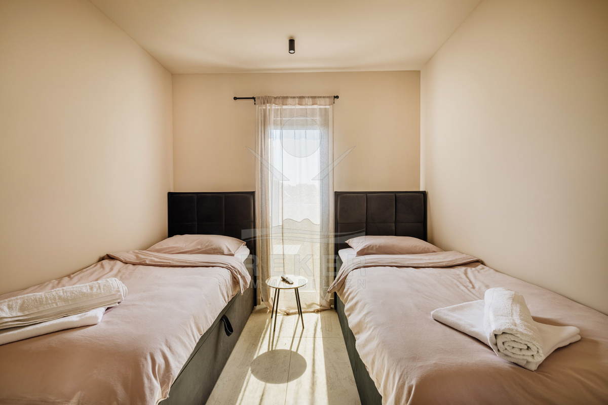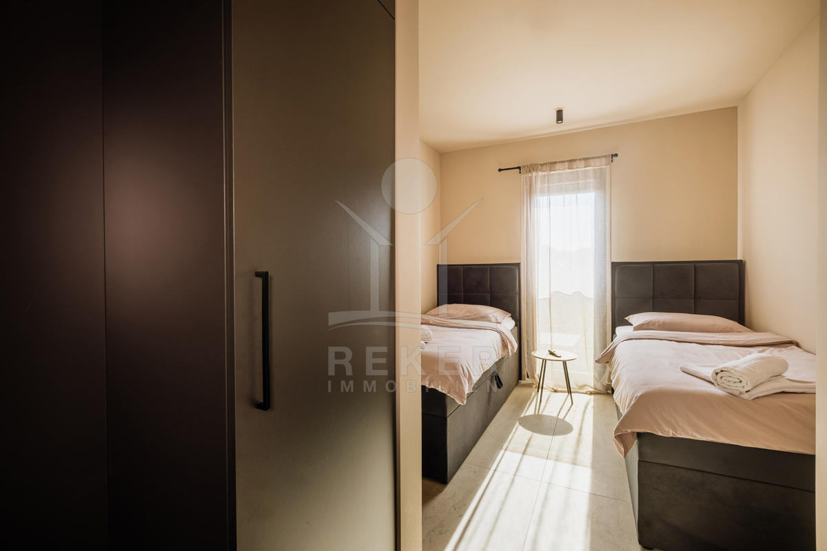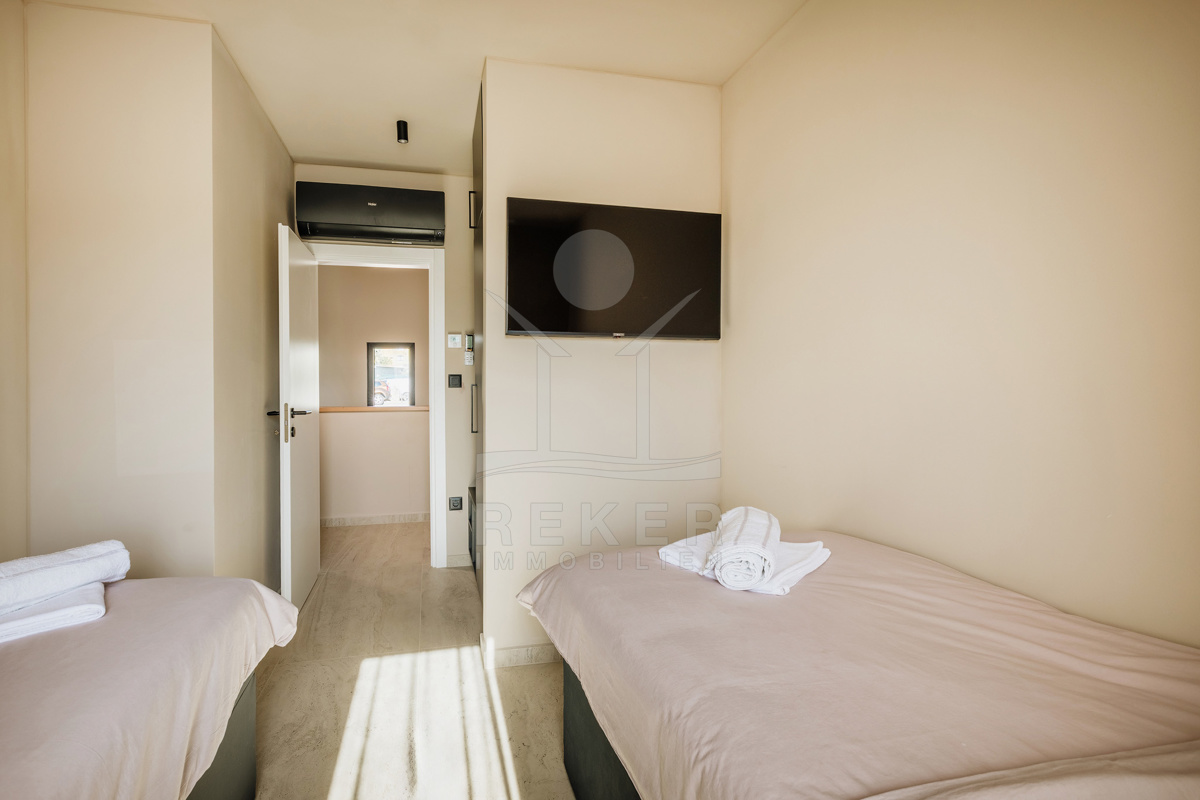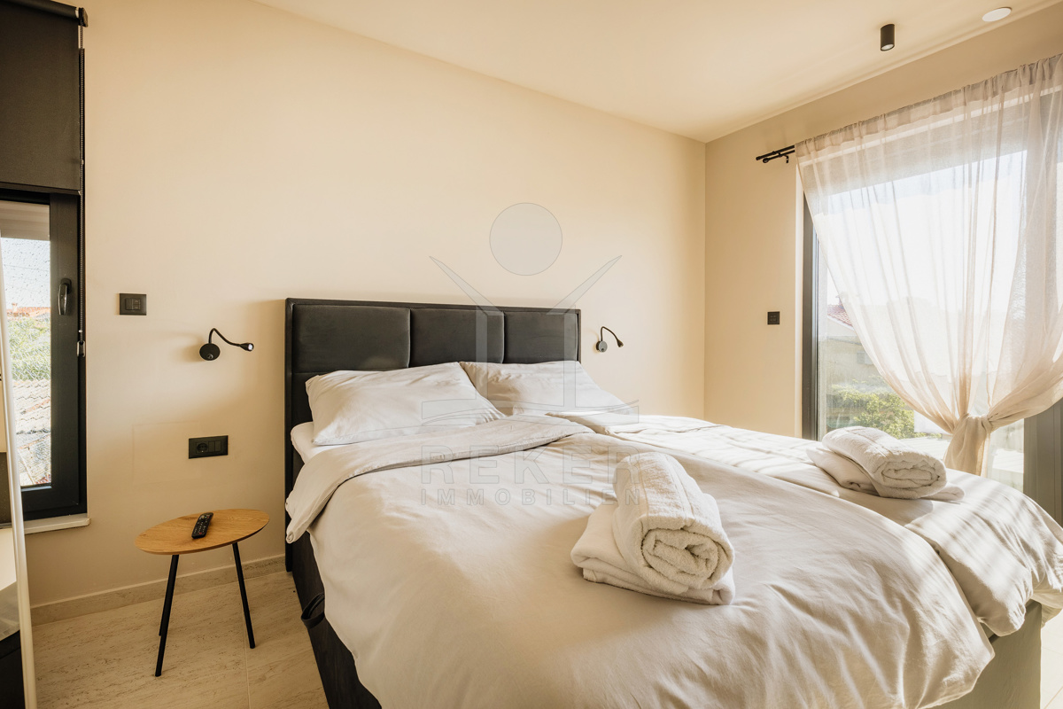 Mitten in einen charmanten Ort nahe Poreč, steht diese moderne Villa auf einem 540 m² großen Grundstück. Alles, was Sie für den Alltag brauchen, liegt direkt vor der Haustür: Restaurants, Cafés, Supermarkt, Post und vieles mehr. Und das Meer? Nur 3 Kilometer entfernt. Auch der Parkplatz befindet sich direkt auf dem eigenen Grundstück.