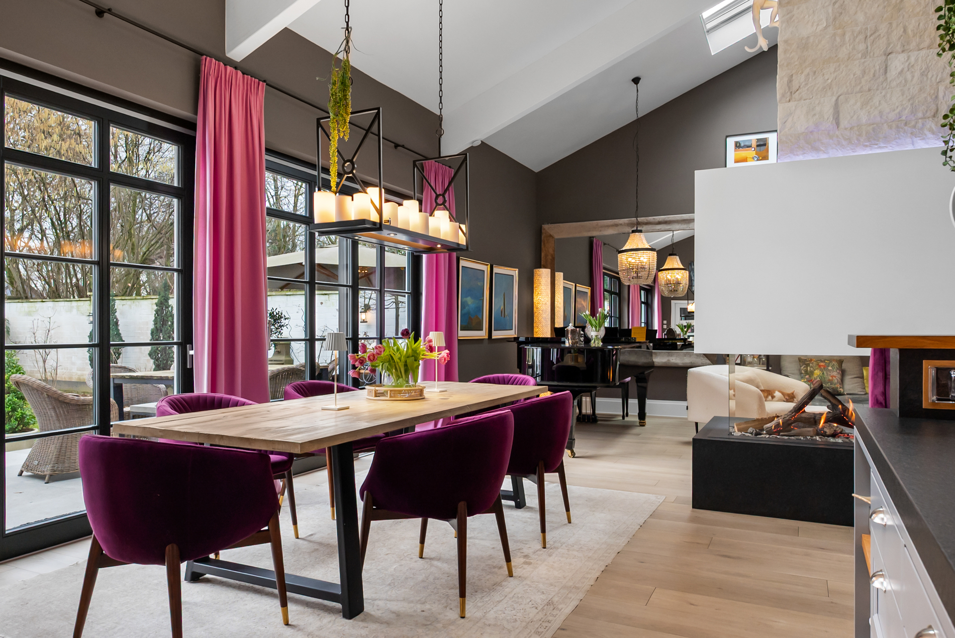 Die exklusive Einbauküche mit einem ursprünglichen Investitionsvolumen von rund 50.000 € ist mit hochwertigen Elektrogeräten ausgestattet und verfügt über eine individuell designte High-End-Abzugshaube. Zwei hochwertige Kühlschränke sowie ein separater Weinkühlschrank runden das anspruchsvolle Küchendesign ab.