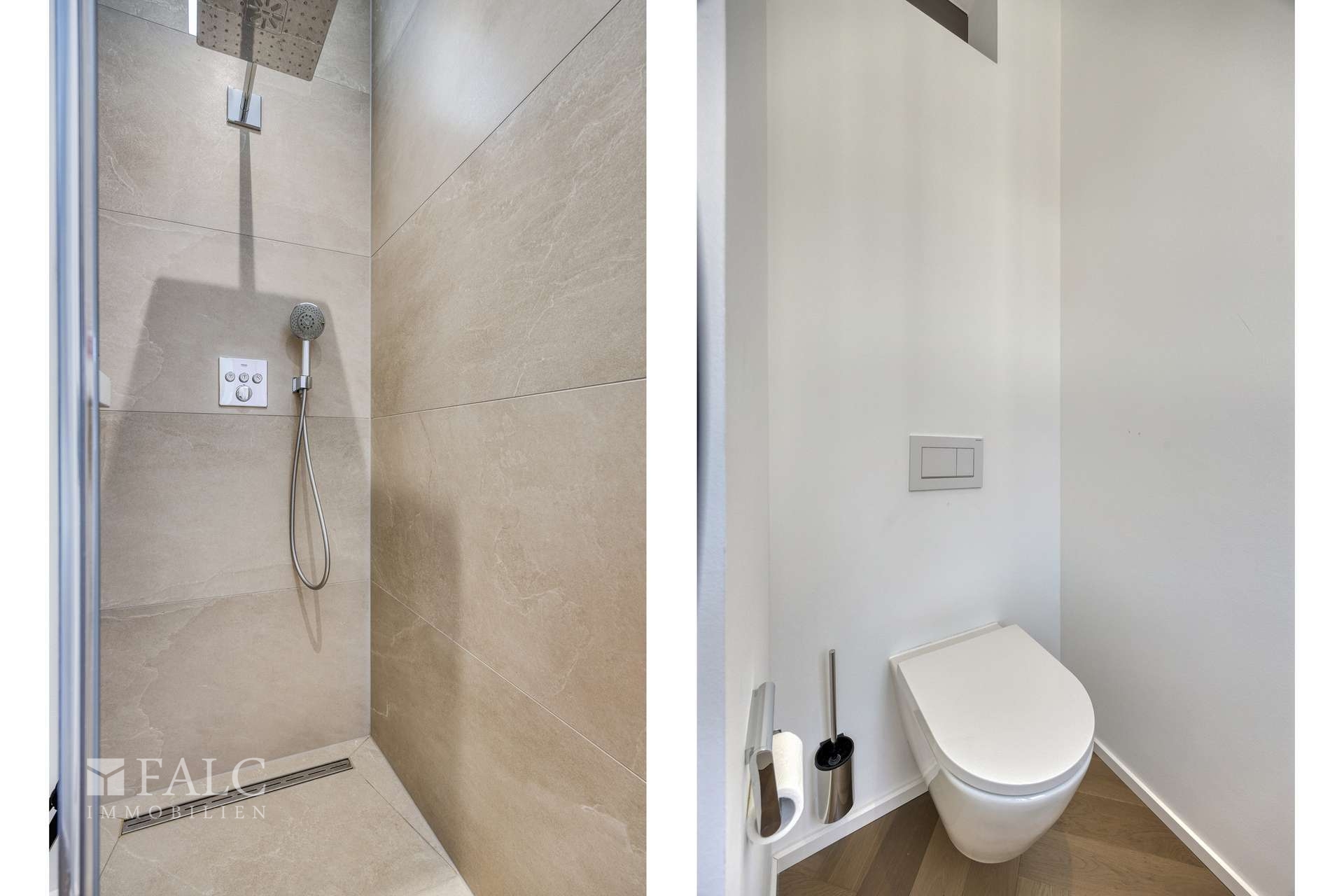 Drei luxuriöse Bäder bieten stilvollen Komfort. Das Masterbad überzeugt mit einer großzügigen Walk-in-Dusche mit „Shower Select“-System, einer freistehenden Wanne und einem direkt angrenzenden Ankleidezimmer. Alle Bäder wurden mit erlesenen Materialien ausgestattet und bieten einen Rückzugsort auf Spa-Niveau.
