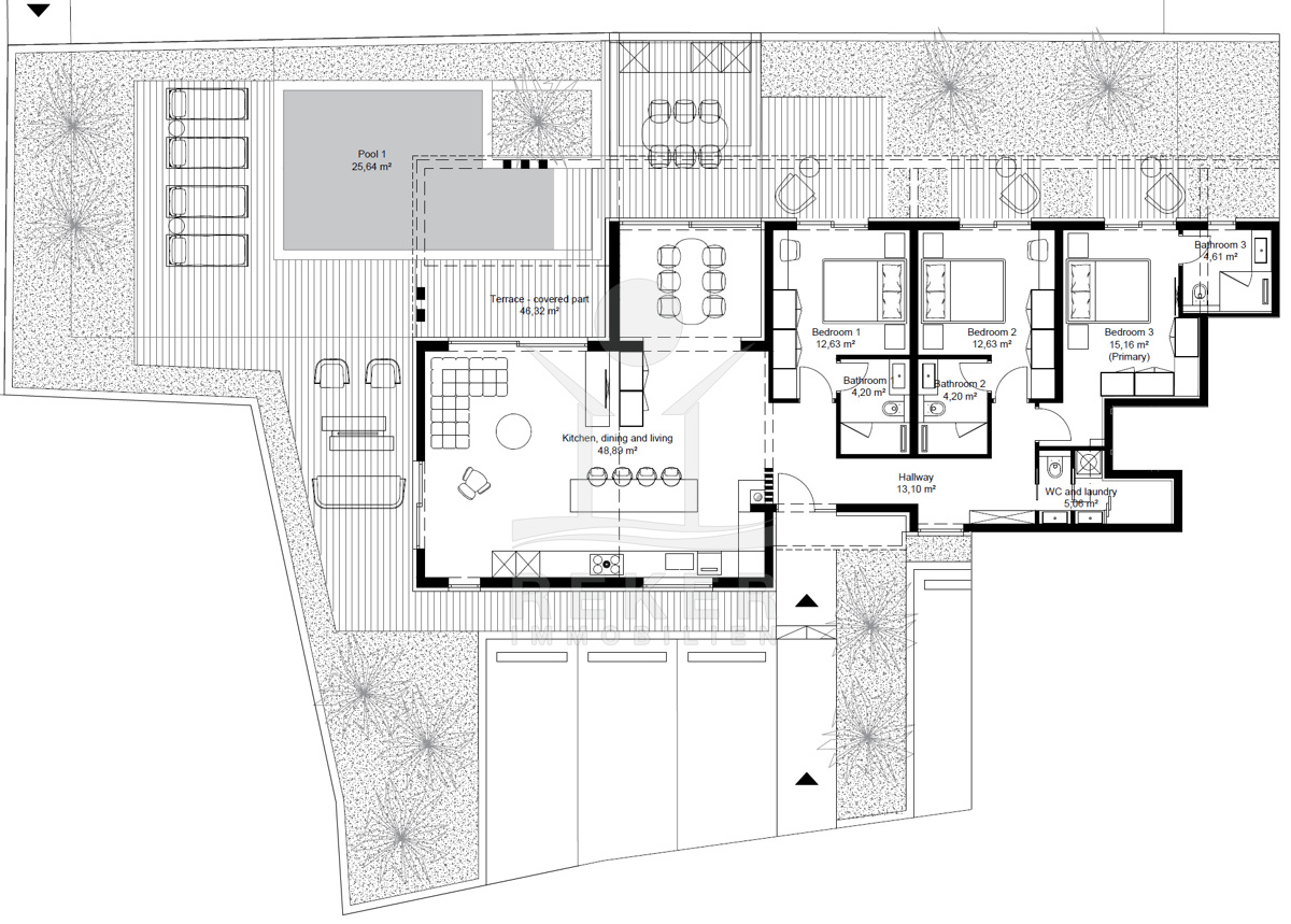Nur 50 Meter zum Meer. Kristallklares Wasser direkt vor der Tür. Entlang der Promenade reiht sich eine Handvoll eleganter Anwesen – dazwischen: dieses Projekt. Ein Rückzugsort mit Stil, in einer ruhigen, sonnigen Küstenlage bei Zadar. Das Gebäude selbst ist ein Statement. Schlichte Form, edle Materialien, klare Geometrie. Naturstein trifft auf vertikale Holzlamellen, ergänzt durch Glas und dunkle Metallakzente. Tagsüber ruhig und hell – abends stilvoll beleuchtet. Vier exklusive Wohnungen, alle mit eigenem Außenbereich. Zwei mit Garten und Pool. Zwei mit Dachterrasse und Whirlpool. Dazu: Lift, Garage, Smart-Home, Premium-Ausstattung!