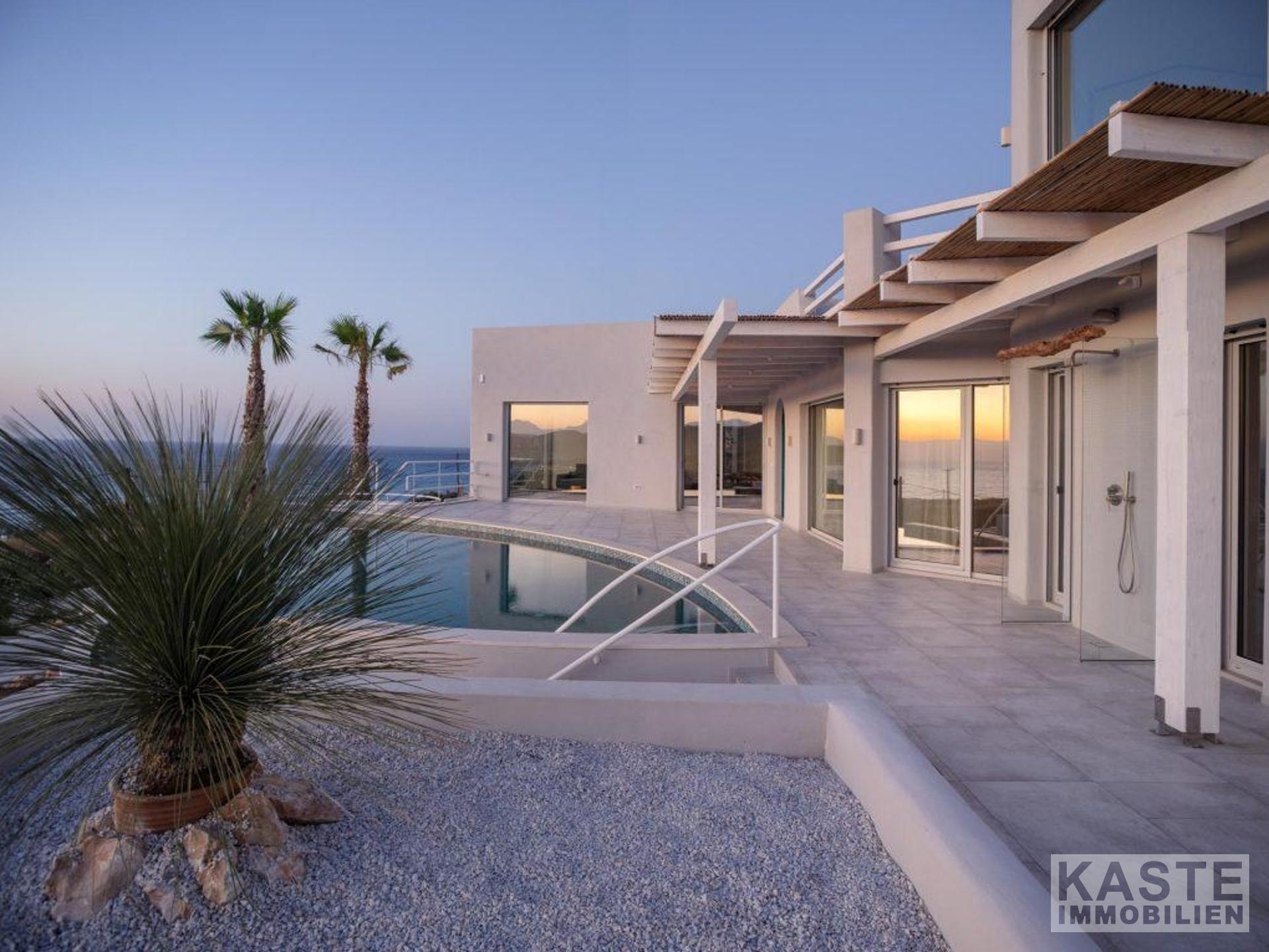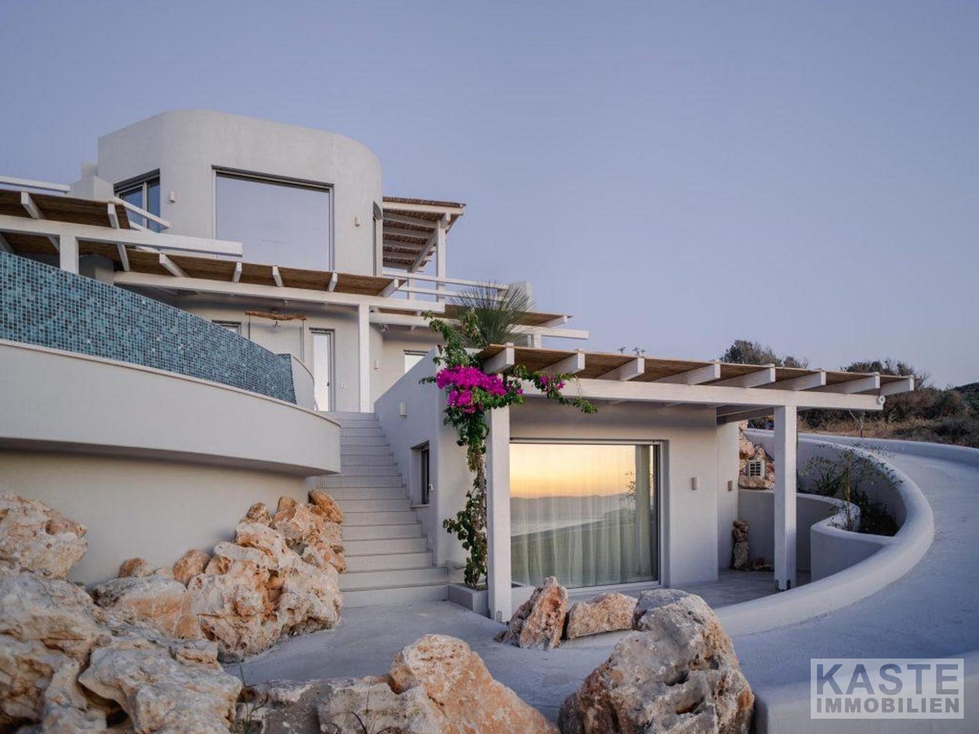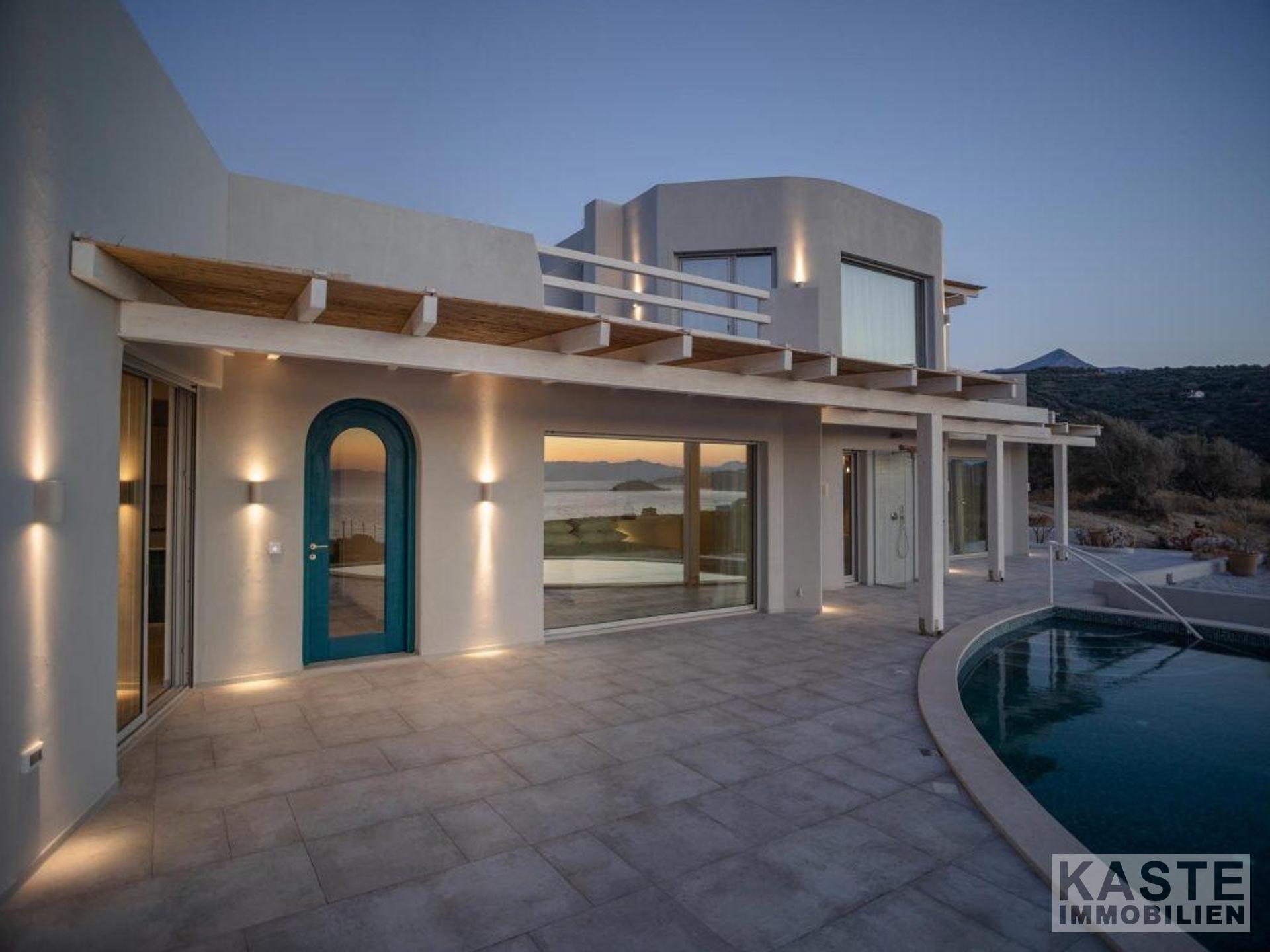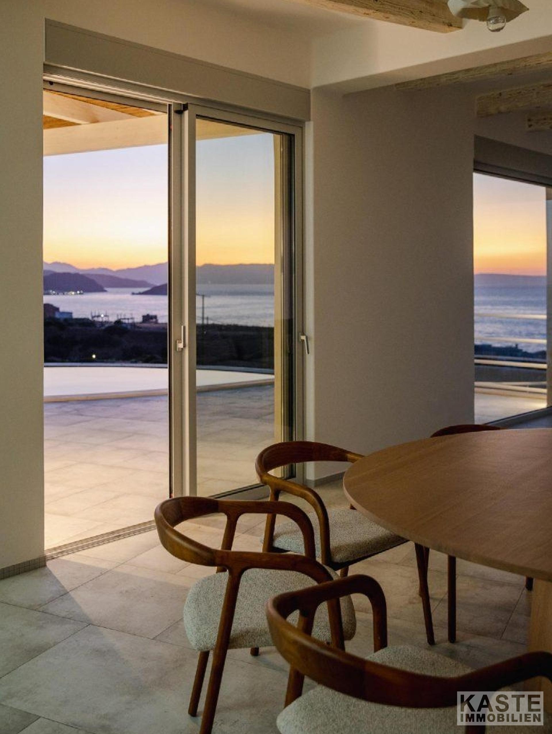 Diese einzigartige Wohnvision befindet sich im Dorf Mochlos an der Nordküste Kretas mit einem majestätischen 180°-Meerblick über die Mirabello-Bucht, die sich 50 m über dem Meeresspiegel erhebt. Die erhöhte Lage des Anwesens bietet einen Panoramablick auf die Mirabello-Bucht. Das Dorfzentrum mit Restaurants und Geschäften ist nur 5 Minuten mit dem Auto oder 20-25 Minuten zu Fuß entfernt.