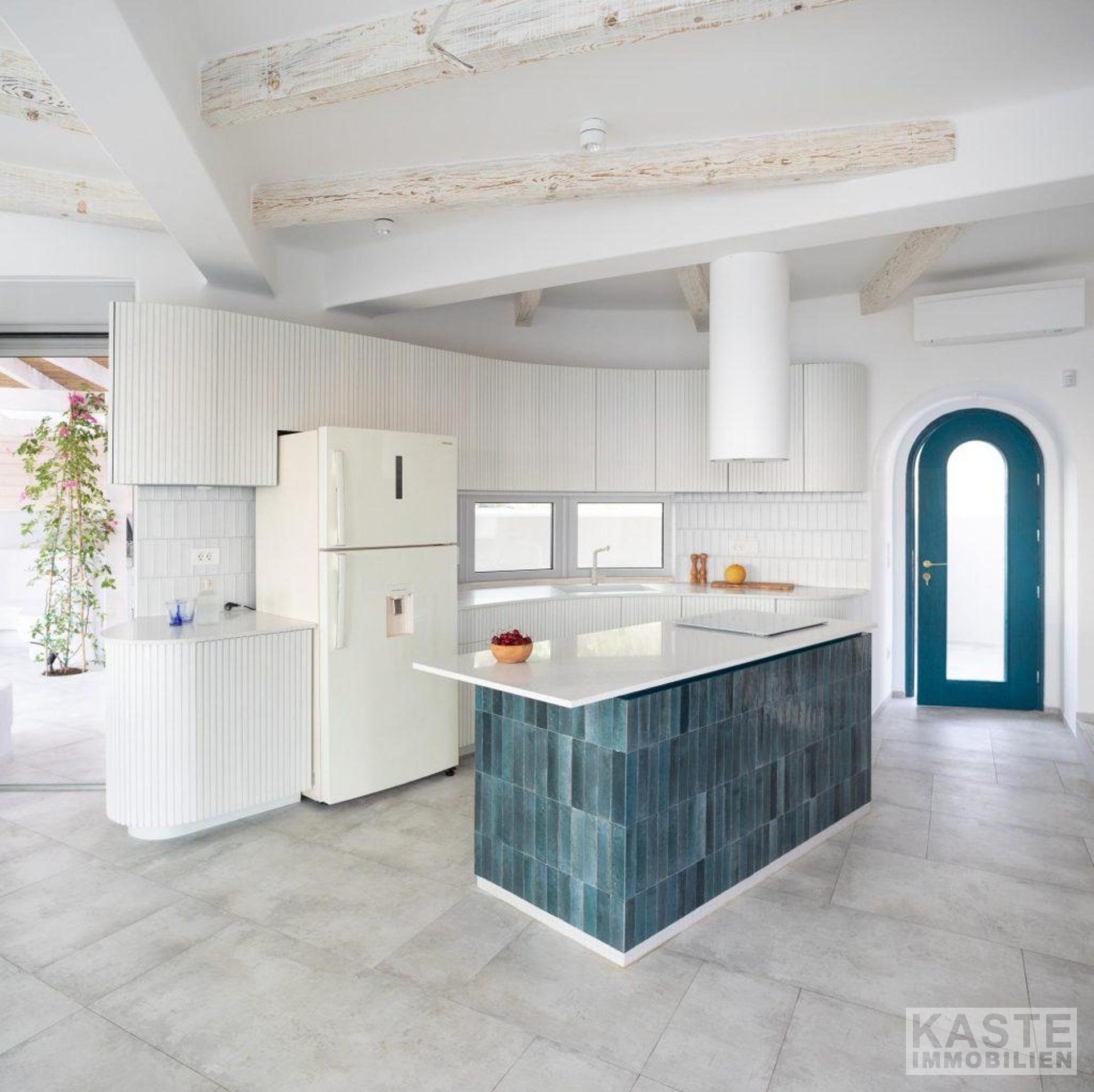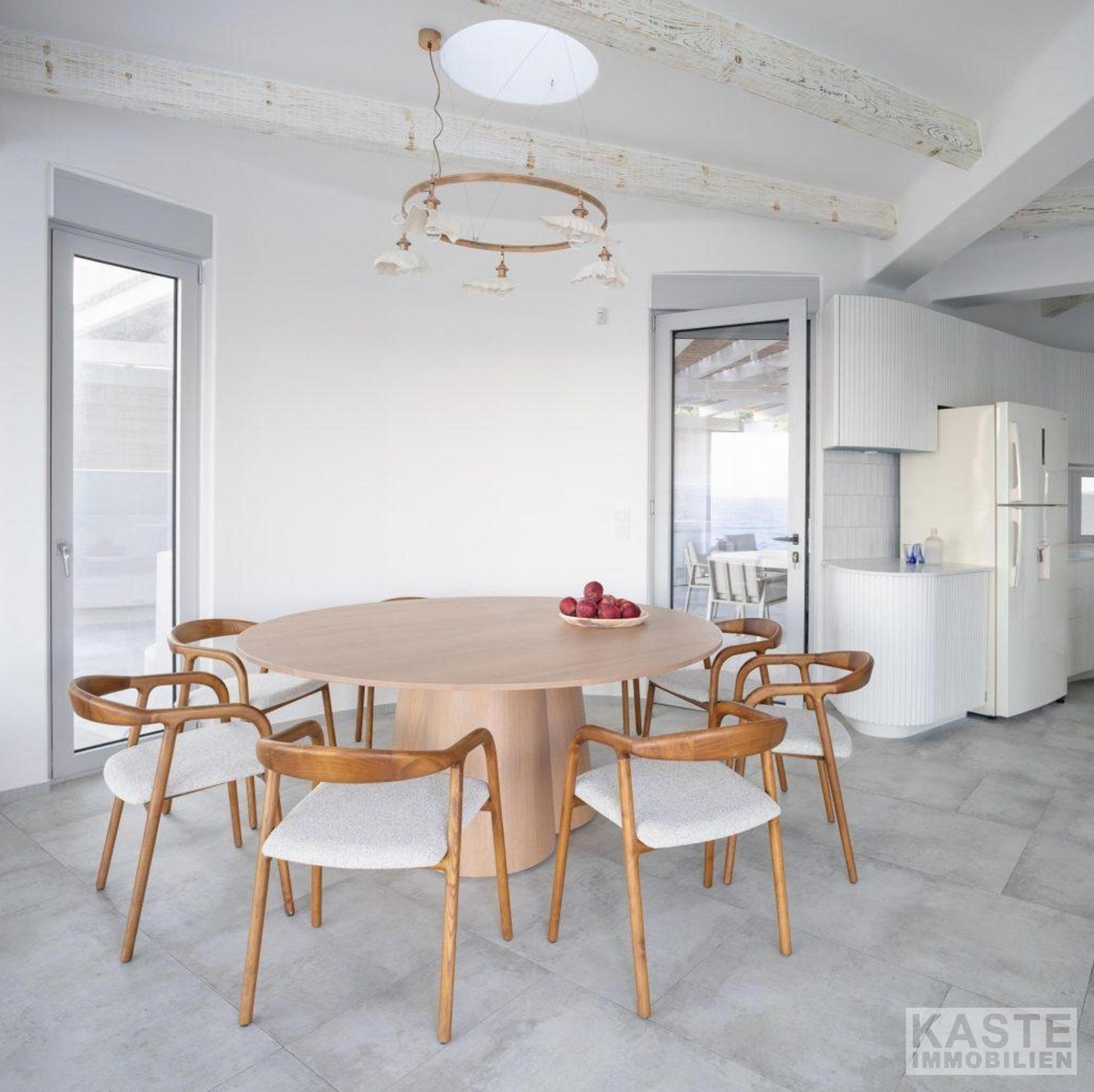 Von jedem Zimmer oder Bad der Villa aus haben Sie Meerblick. Die voll ausgestattete und eingerichtete Küche bietet Platz für 10 Personen; eine überdachte Außenlounge, die sich an die Villa anschließt und mit einem Grill ausgestattet ist, bietet erfrischende Frühstücke für die Außenküche; ein gemütliches Wohnzimmer mit Holzkamin; ein Badezimmer mit Dusche für die Gäste. Alle 4 Schlafzimmer verfügen über ein eigenes Bad mit Dusche und sind komplett eingerichtet. Große handgefertigte Betten mit bequemen Matratzen vervollständigen das Gefühl von Ruhe und Sinnesfreuden in diesem Anwesen.