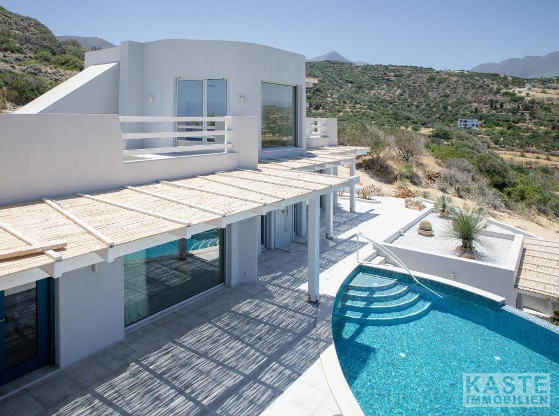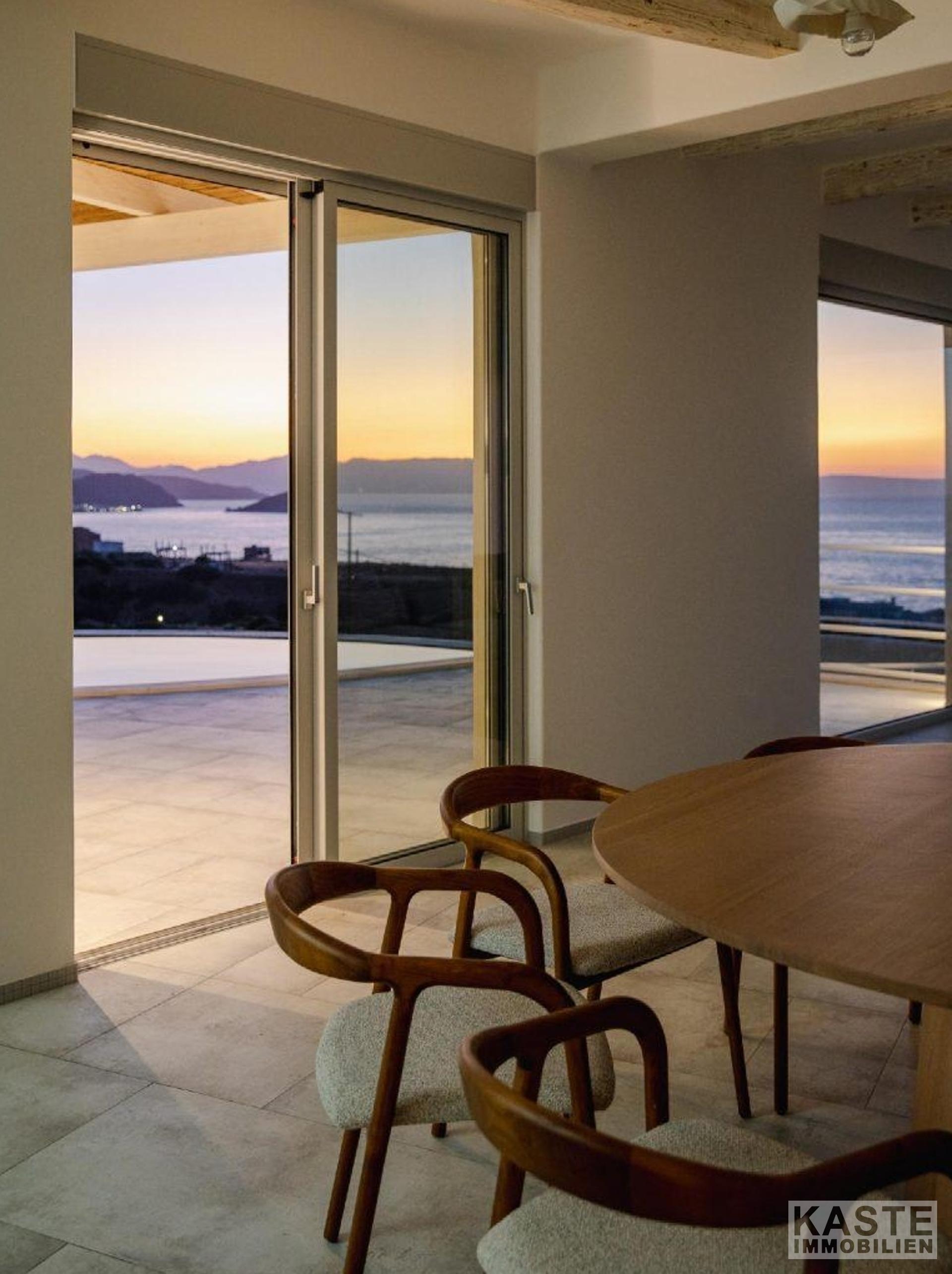 Diese einzigartige Wohnvision befindet sich im Dorf Mochlos an der Nordküste Kretas mit einem majestätischen 180°-Meerblick über die Mirabello-Bucht, die sich 50 m über dem Meeresspiegel erhebt. Die erhöhte Lage des Anwesens bietet einen Panoramablick auf die Mirabello-Bucht. Das Dorfzentrum mit Restaurants und Geschäften ist nur 5 Minuten mit dem Auto oder 20-25 Minuten zu Fuß entfernt.