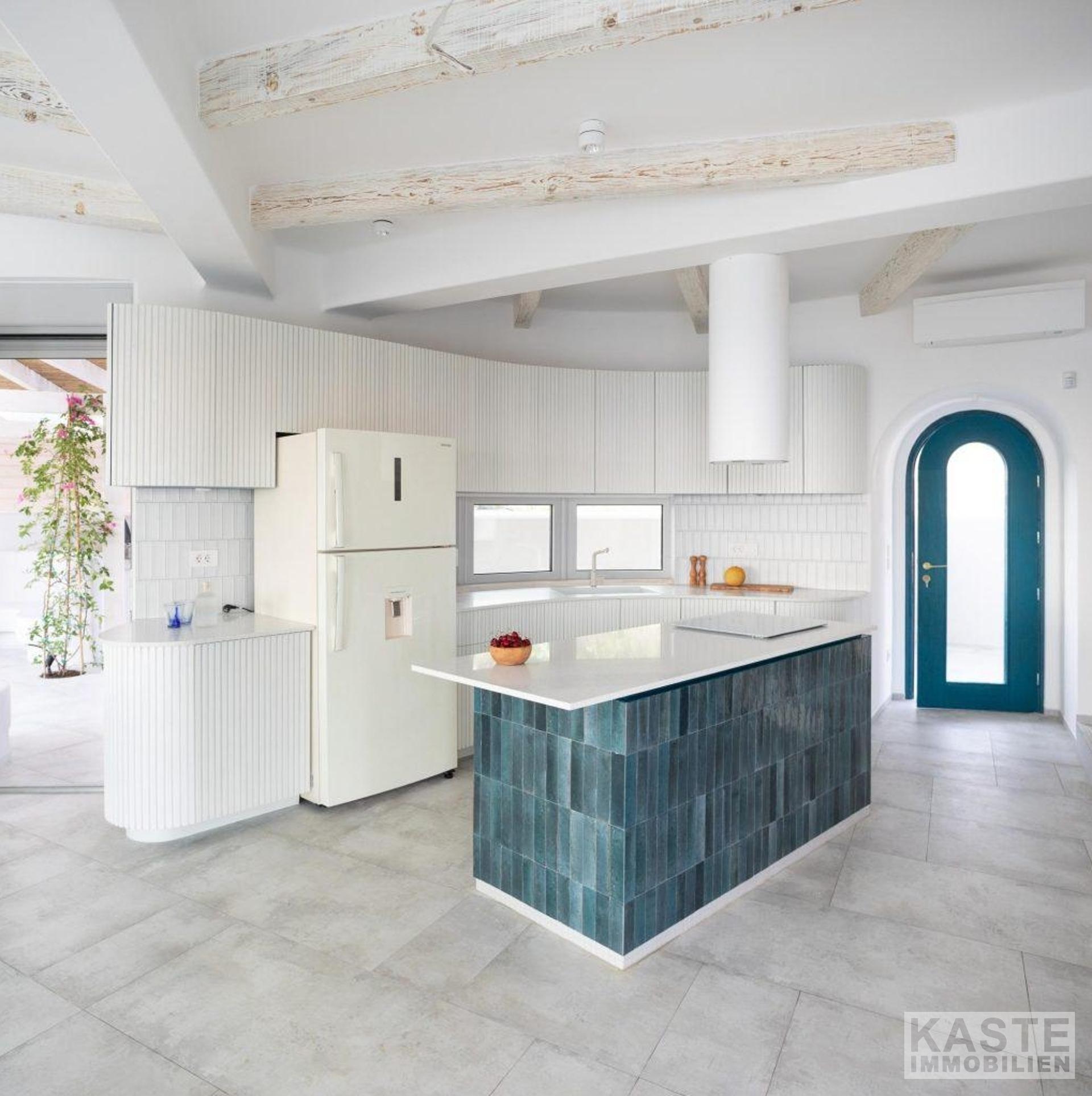 Von jedem Zimmer oder Bad der Villa aus haben Sie Meerblick. Die voll ausgestattete und eingerichtete Küche bietet Platz für 10 Personen; eine überdachte Außenlounge, die sich an die Villa anschließt und mit einem Grill ausgestattet ist, bietet erfrischende Frühstücke für die Außenküche; ein gemütliches Wohnzimmer mit Holzkamin; ein Badezimmer mit Dusche für die Gäste. Alle 4 Schlafzimmer verfügen über ein eigenes Bad mit Dusche und sind komplett eingerichtet. Große handgefertigte Betten mit bequemen Matratzen vervollständigen das Gefühl von Ruhe und Sinnesfreuden in diesem Anwesen.