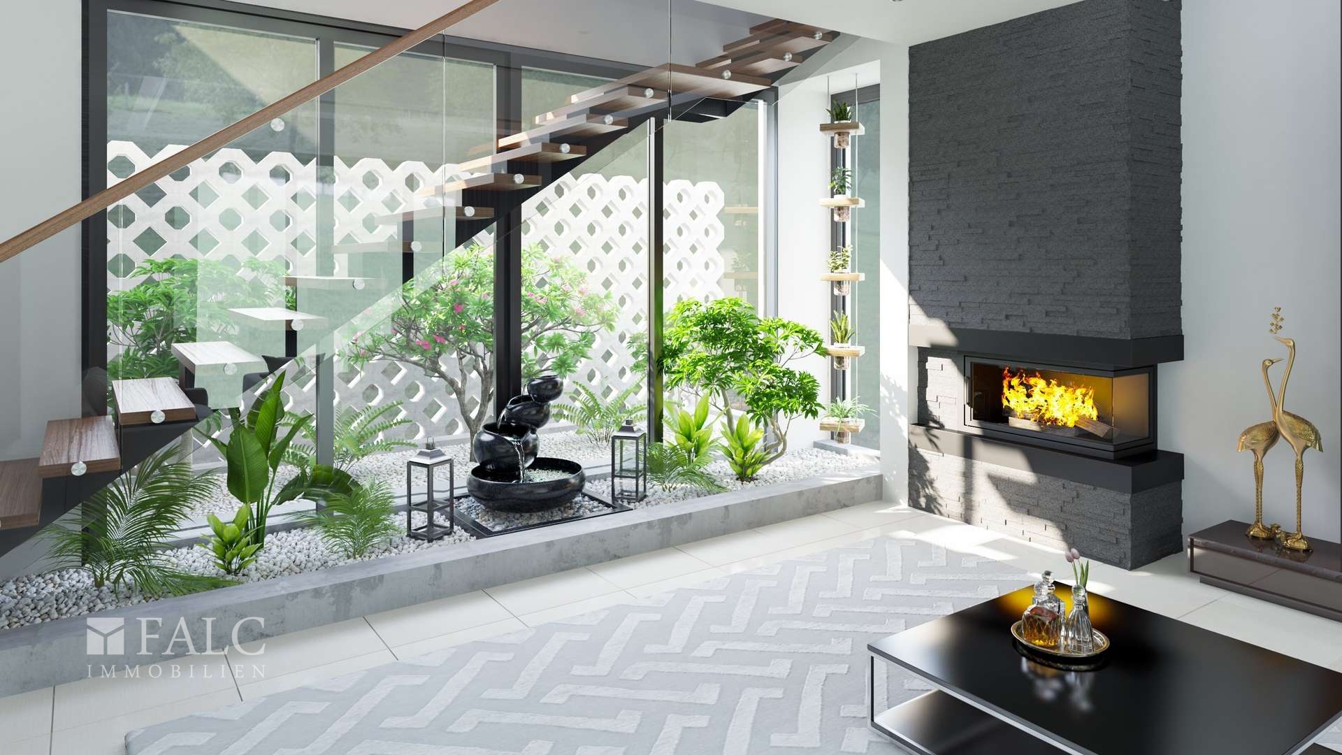 Ein besonderes Highlight ist die Stahltreppe und der Innengarten, der das Haus mit der Natur verbindet. Die Villa ist mit solarenergieverstärktem Warmwasserspeicher und VRF-Klimasystemen ausgestattet. Die Sanitärartikel von Hansgrohe reduzieren den Wasserverbrauch und es gibt einen 5-Tonnen-Wassertank mit Drucktanksystem.