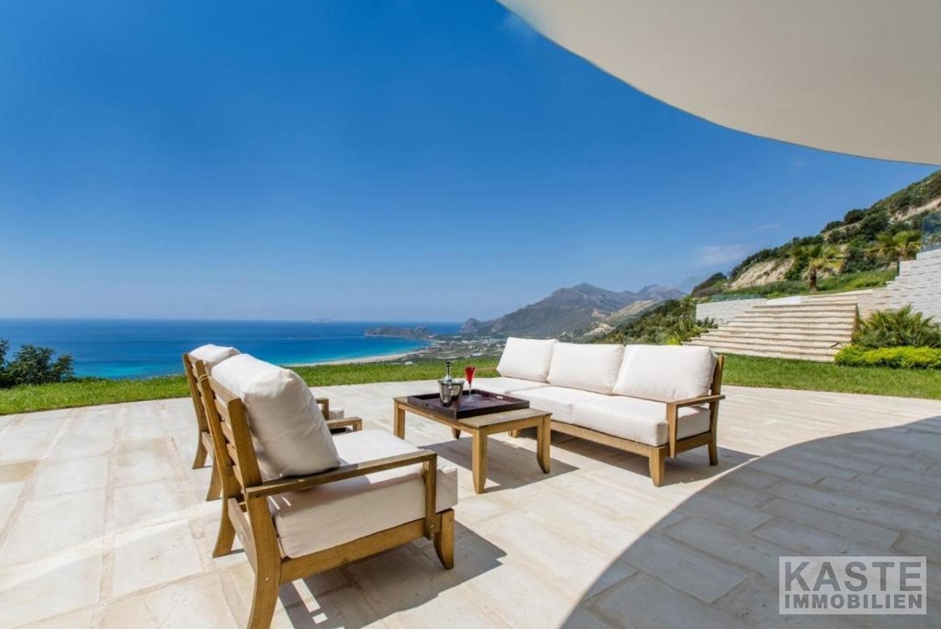 Diese exklusive Luxusvilla in Falassarna, Kissamos auf der traumhaften Insel Kreta bietet ein einzigartiges Wohnerlebnis mit atemberaubendem 180°-Panoramablick auf das tiefblaue Mittelmeer. Mit einer großzügigen Wohnfläche von 200 m² erstreckt sich das elegante Domizil über zwei Ebenen und verbindet modernen Komfort mit mediterranem Flair.