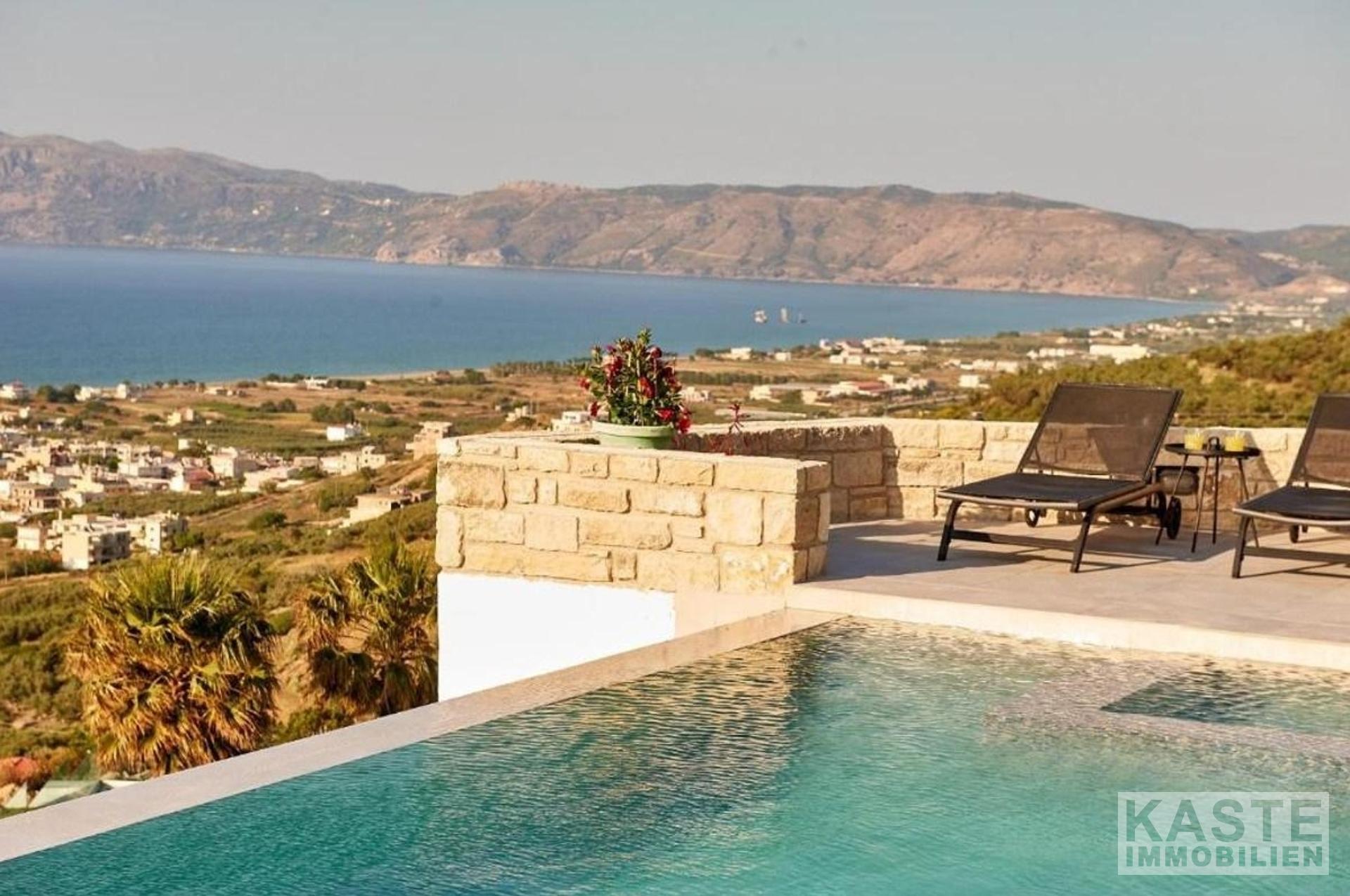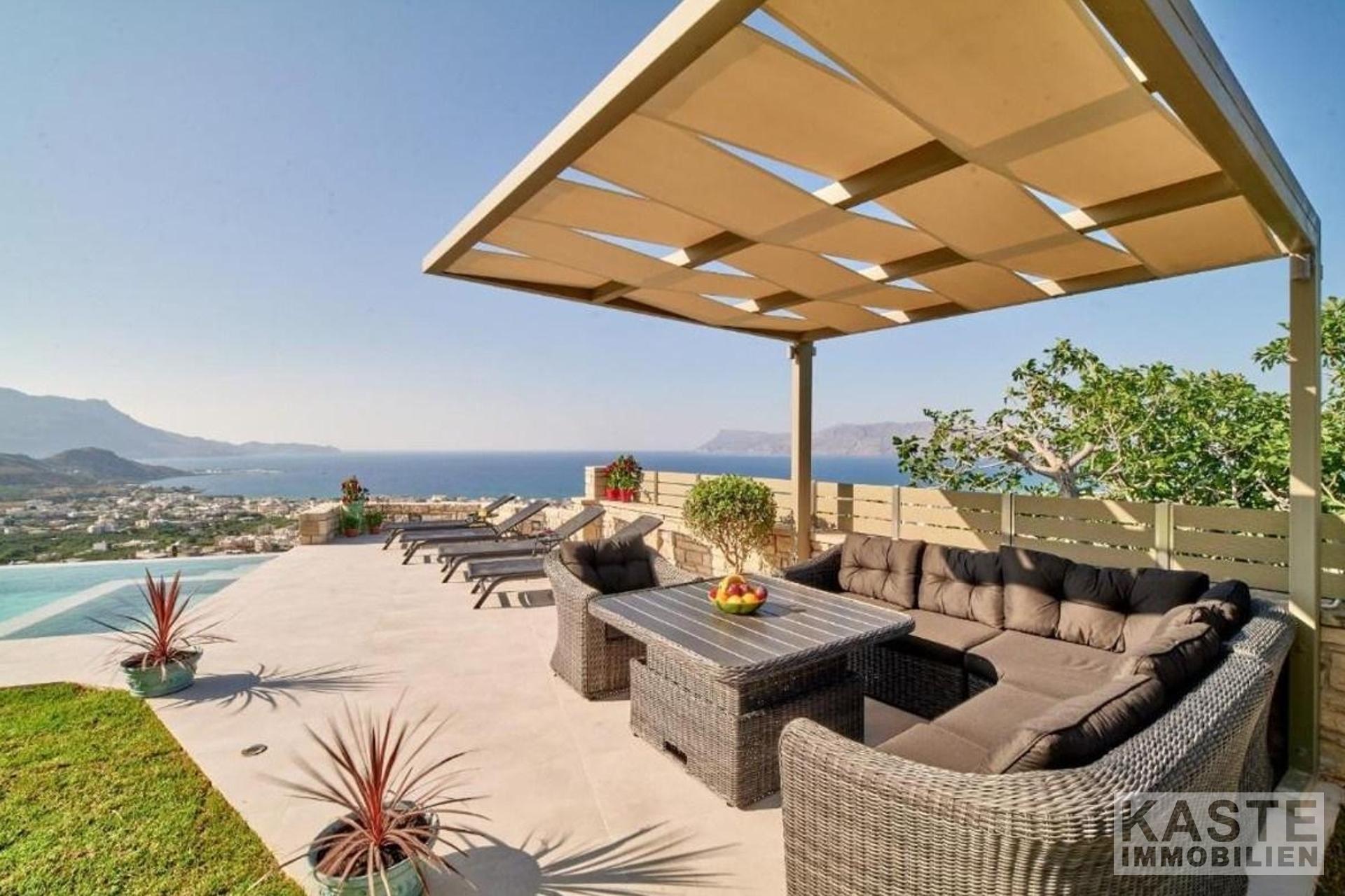 Diese wunderschöne Villa befindet sich in einer der besten Lagen in der Gemeinde Kissamos. Das Anwesen bietet einen spektakulären Blick über die umliegenden Hügel, das tiefblaue Meer und die Stadt Kissamos. Die Villa ist nur 5 Autominuten von der Stadt entfernt, in der es alle Arten von Geschäften, Dienstleistungen und Annehmlichkeiten wie Schulen, Banken, Supermärkte, Cafés, Restaurants und vieles mehr gibt.