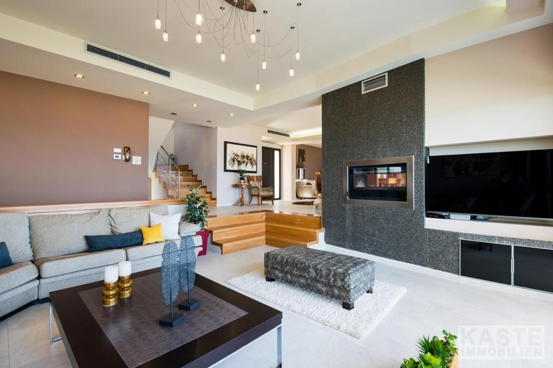 Die Villa wird mit einer neuen Wärmepumpe gekühlt und geheizt, die mit günstigem Nachtstrom arbeitet. Sie verfügt über Aluminiumrahmen mit elektrischen Rollläden, einen Energiekamin, eine Fußbodenheizung und ein zentrales Staubsaugersystem. Die Außenbereiche sind mit einem Rasengarten, großen Terrassen und Steinmauern angelegt. Es gibt auch reichlich Platz für einen Swimmingpool.