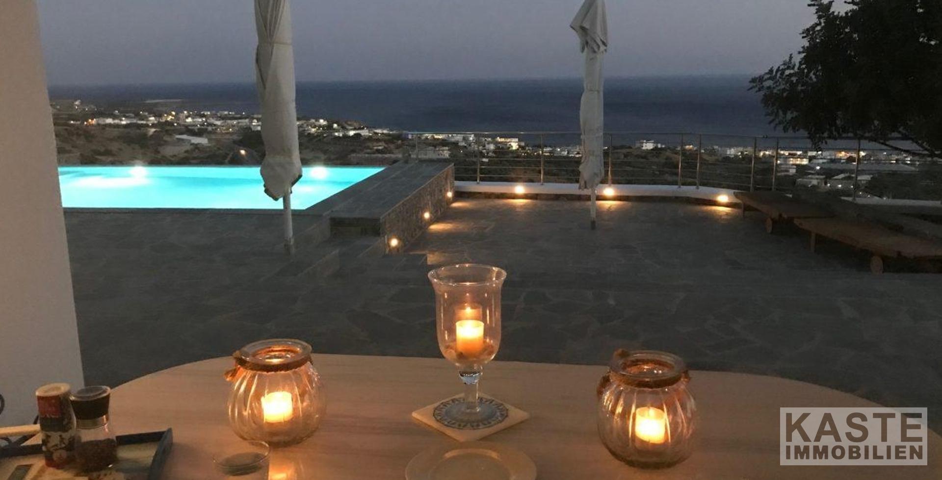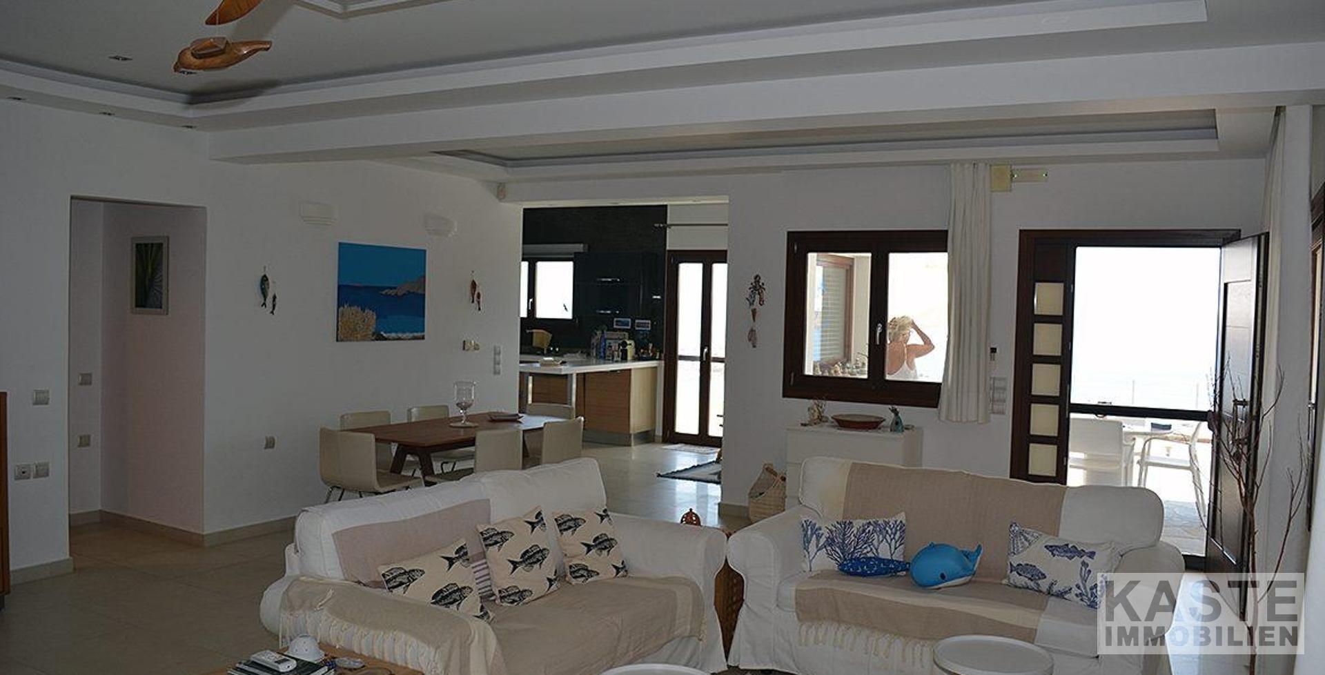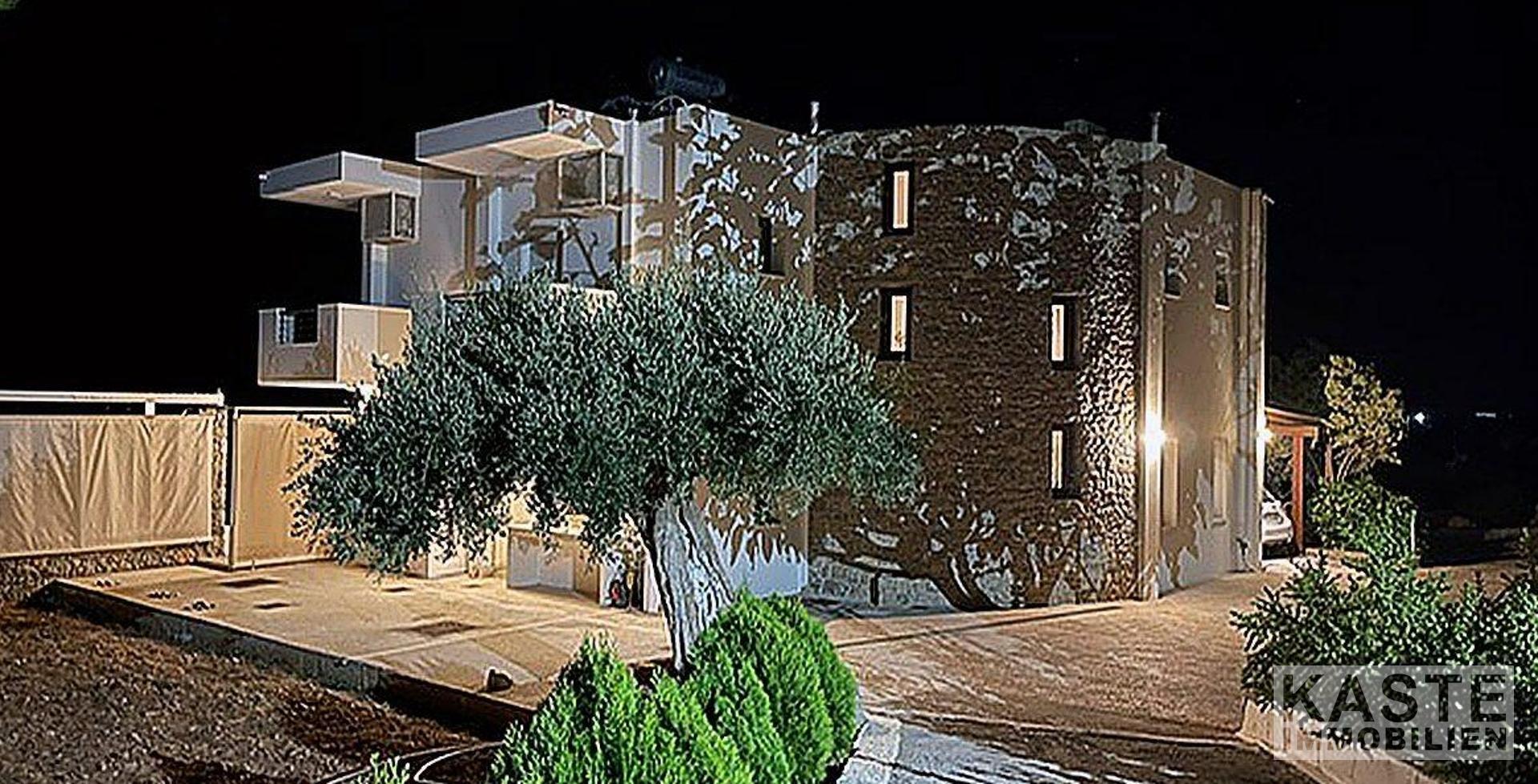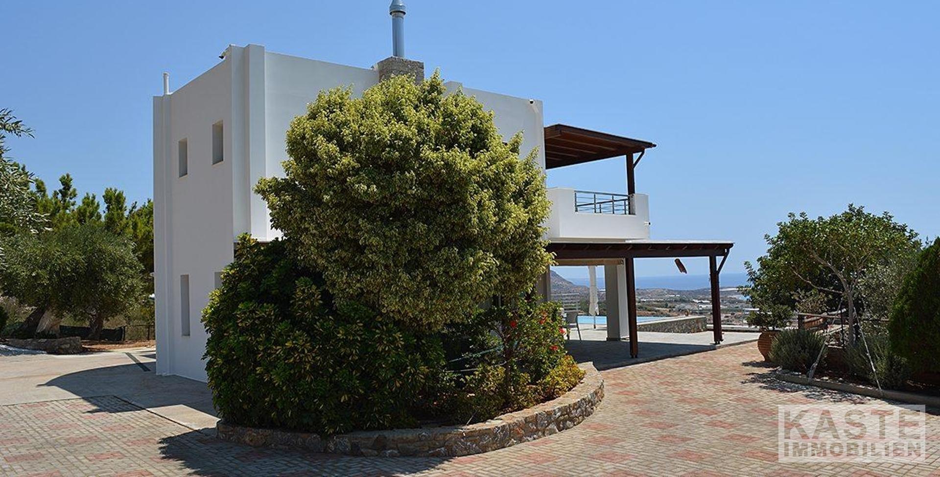 Willkommen in diesem außergewöhnlichen Anwesen in der Region Agios Ioannis, oberhalb von Makrigialos. Die exklusive Luxusvilla mit separatem Gästehaus und Infinity-Pool bietet einen atemberaubenden Panoramablick auf den Ort, das Meer und die umliegenden Berge – ein wahres Paradies für Ruhesuchende.