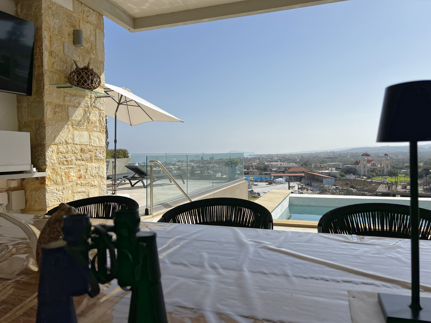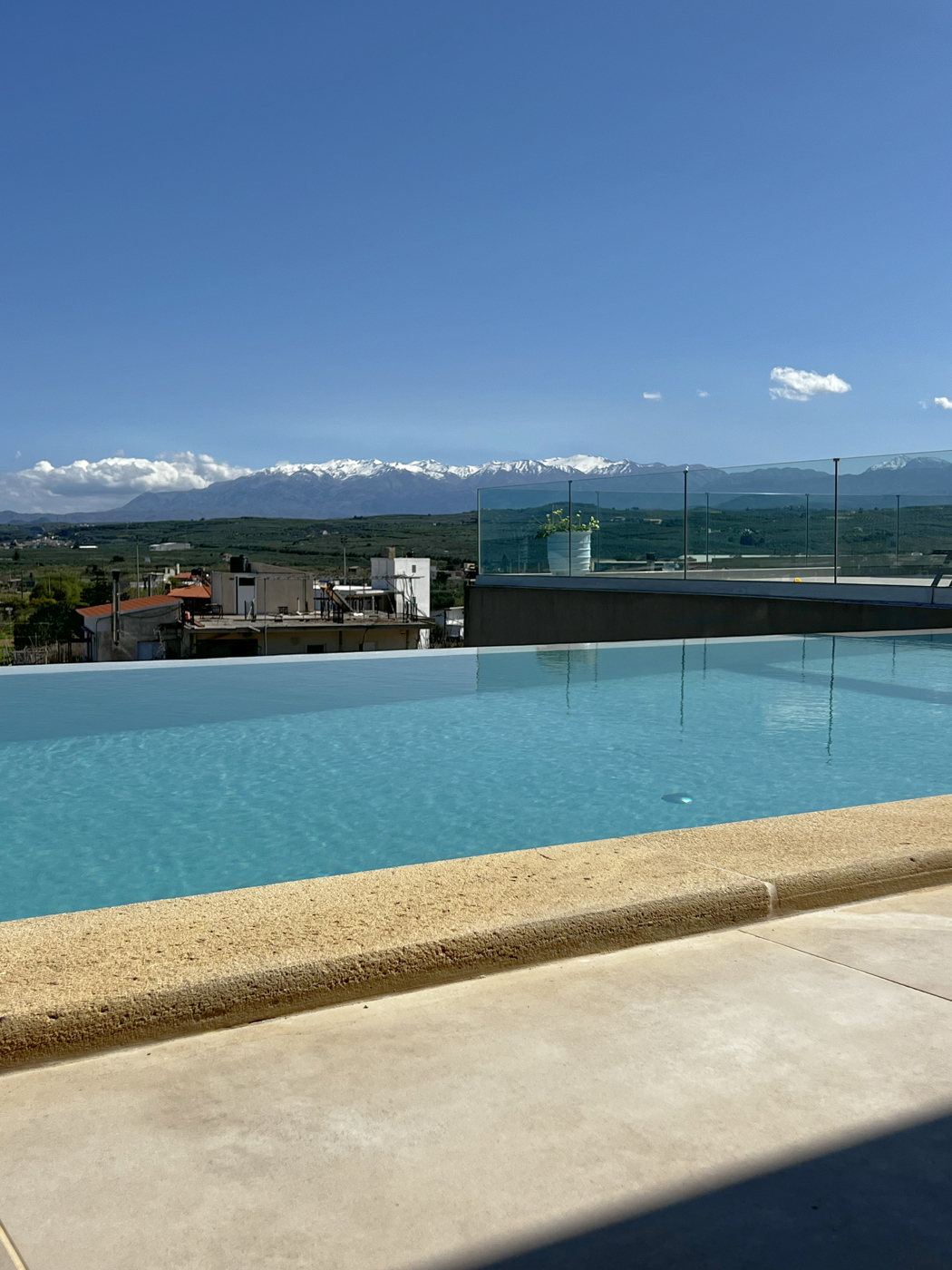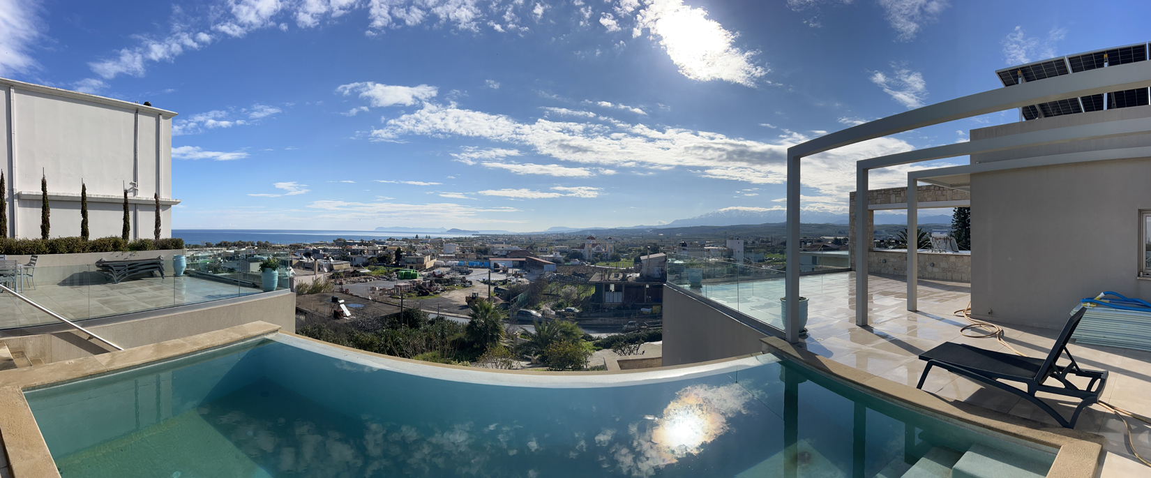 Von den großzügigen Terrassen genießen Sie einen atemberaubenden 180-Grad-Panoramablick – von der Akrotiri-Halbinsel bis zu den Weißen Bergen. Dank der östlichen Ausrichtung aller Schlafzimmer erleben Sie jeden Morgen einen spektakulären Sonnenaufgang.