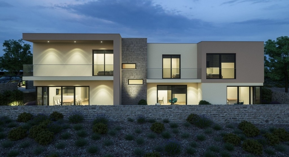 Um eine hohe Privatsphäre zu gewährleisten, wird das Apartment S2 in einer abgelegenen Gegend bei Vodice errichtet. Derzeit befindet sich das Gebäude noch im Bau und wird voraussichtlich Ende Mai 2024 fertiggestellt sein. Das Haus besteht aus drei zweistöckigen Wohneinheiten. Die zum Verkauf stehende Wohnung hat eine Größe von 78,41 m² und bietet zwei Parkplätze mit einer Fläche von jeweils 15,62 m².