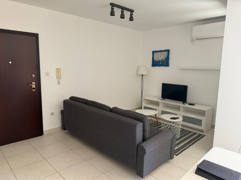 Vom überdachten Balkon besteht Blick bis zum Meer. Die Wohnung ist klimatisiert und wird inklusive Möblierung zum Verkauf angeboten.