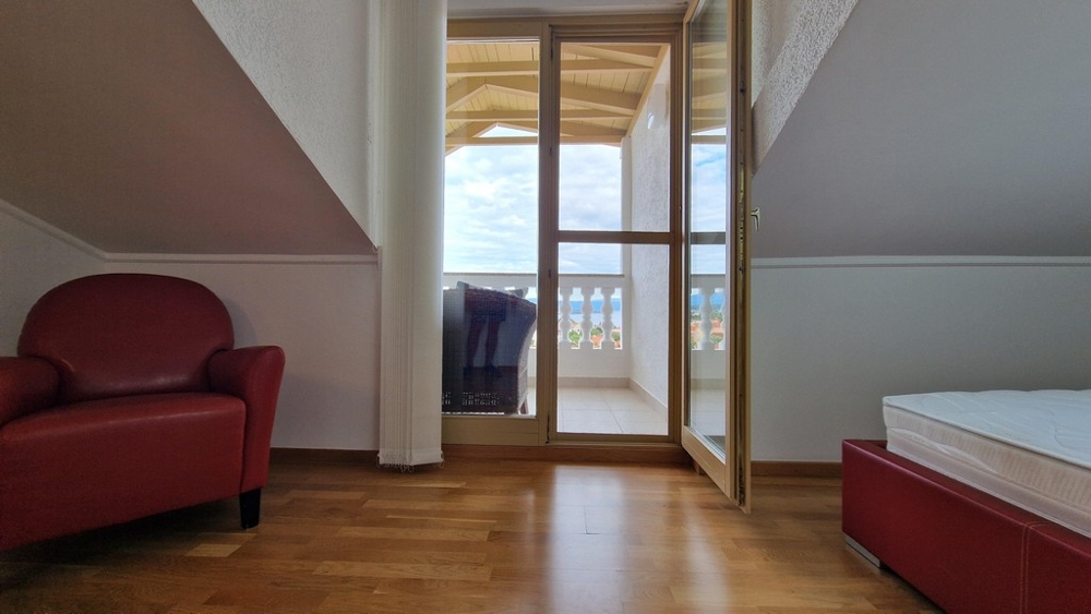 Von der Terrasse im oberen Stockwerk besteht ein wunderschöner Blick auf die Umgebung und das Meer.