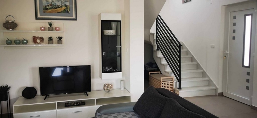 Von der oberen Etage besteht Meerblick. Die Wohnung ist klimatisiert und sie wird inklusive Möblierung zum Verkauf angeboten. Im Wohnzimmer gibt es einen Holzofen und in den Badezimmern Fußbodenheizung.