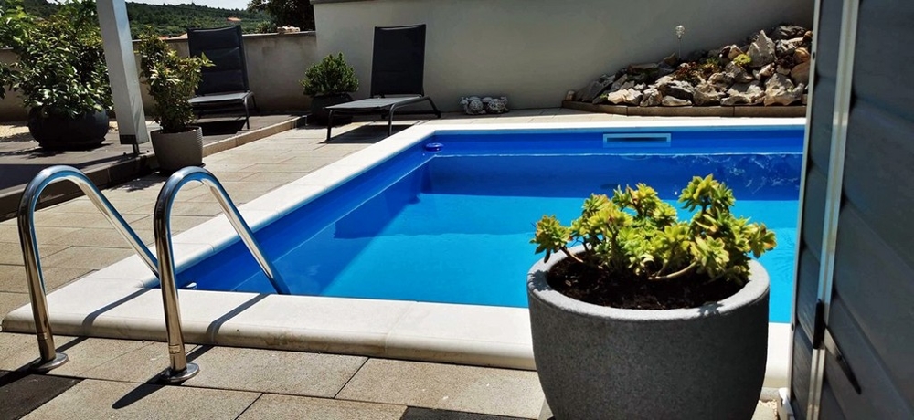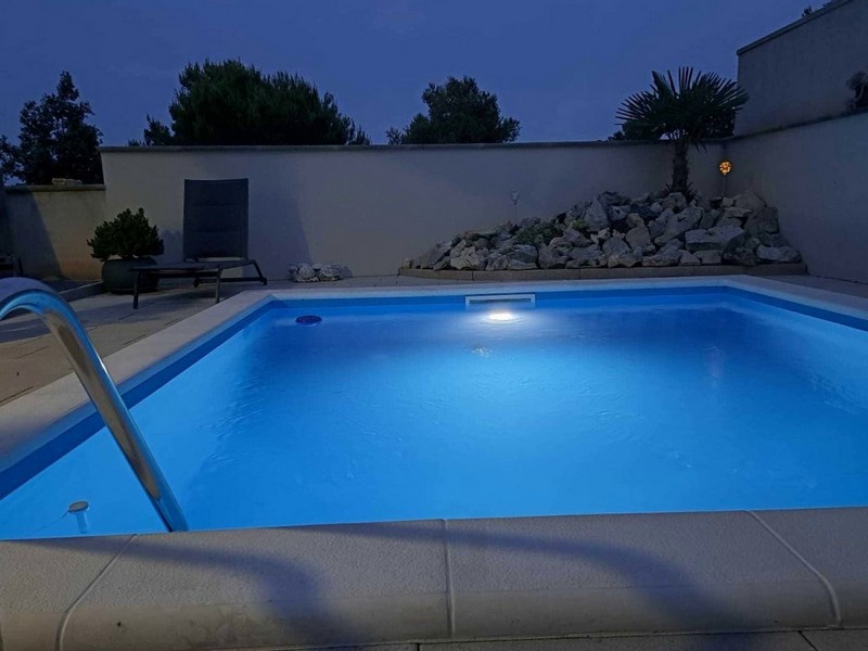 Im mediterran gestalteten Außenbereich gibt es einen Swimmingpool (4*4,5m, Tiefe 1,5m), einen Grill sowie ein Gartenhaus und eine Dusche (Solar). Zudem gibt es zwei Stellplätze. Das Meer erreicht man in ca. 400 Metern.