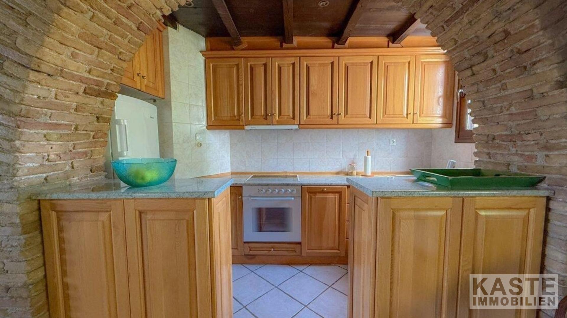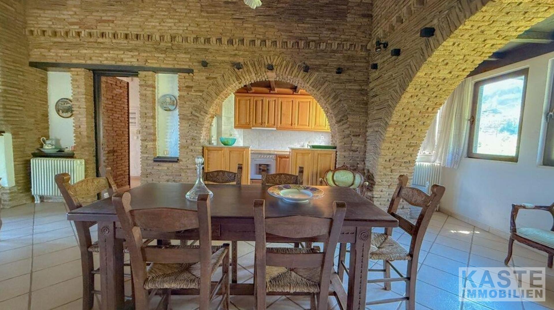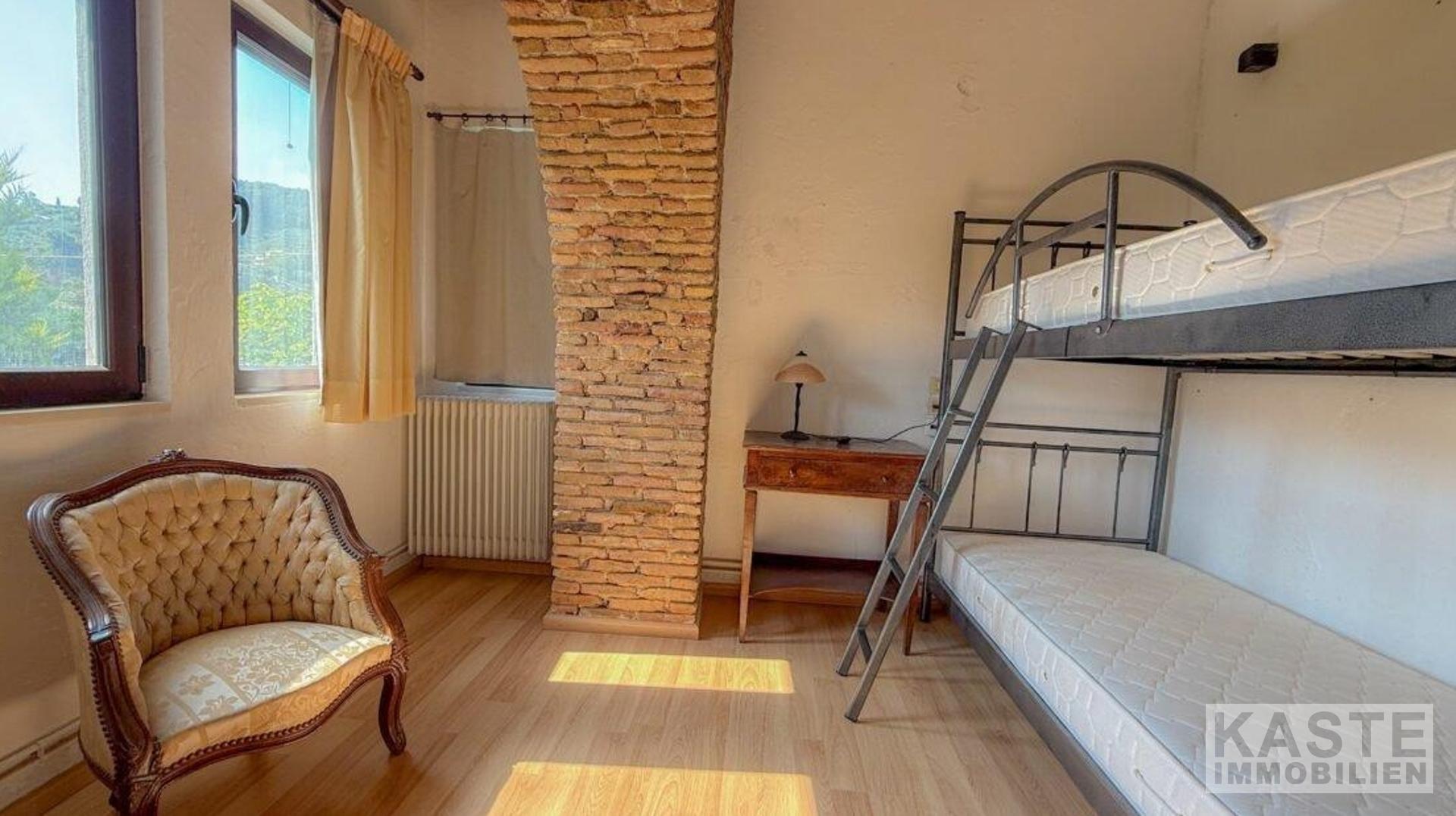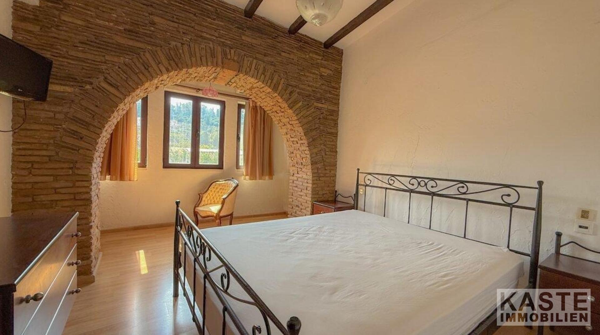 Innenausstattung - Wohnfläche 132 m² im ersten Stock mit traditionellen Elementen - Freiliegende Holzbalken und Ziegelbögen in den Schlafzimmern - Drei großzügige Schlafzimmer - Modernes Familienbadezimmer - Geräumiger offener Wohnbereich mit sorgfältig positionierten Fenstern für Berg- und Landschaftsblick - Balkon mit beeindruckendem Meerblick - Erdgeschoss mit 113 m² als flexible Ausbaufläche oder separates Gästeapartment verfügbar