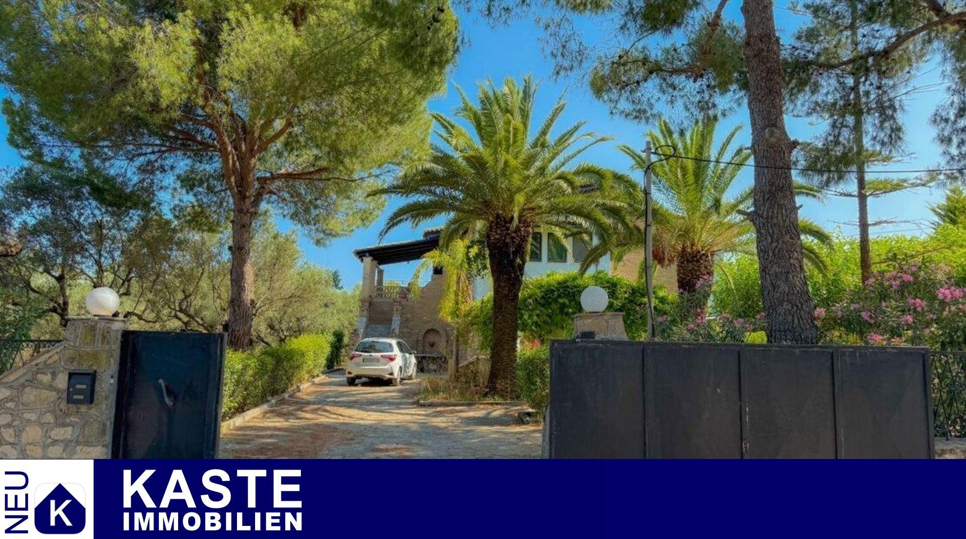 Das Anwesen befindet sich nur wenige Minuten vom Sandstrand entfernt, ebenso bequem erreichbar sind die vielfältigen Einkaufsmöglichkeiten, Restaurants und das städtische Zentrum von Zakynthos. Diese Kombination aus gehobenem Komfort, traditionsreichem Charakter und moderner Entwicklungsoption macht diese Villa zu einem einzigartigen Refugium für anspruchsvolle Käufer in einer der begehrtesten Lagen von Zakynthos.